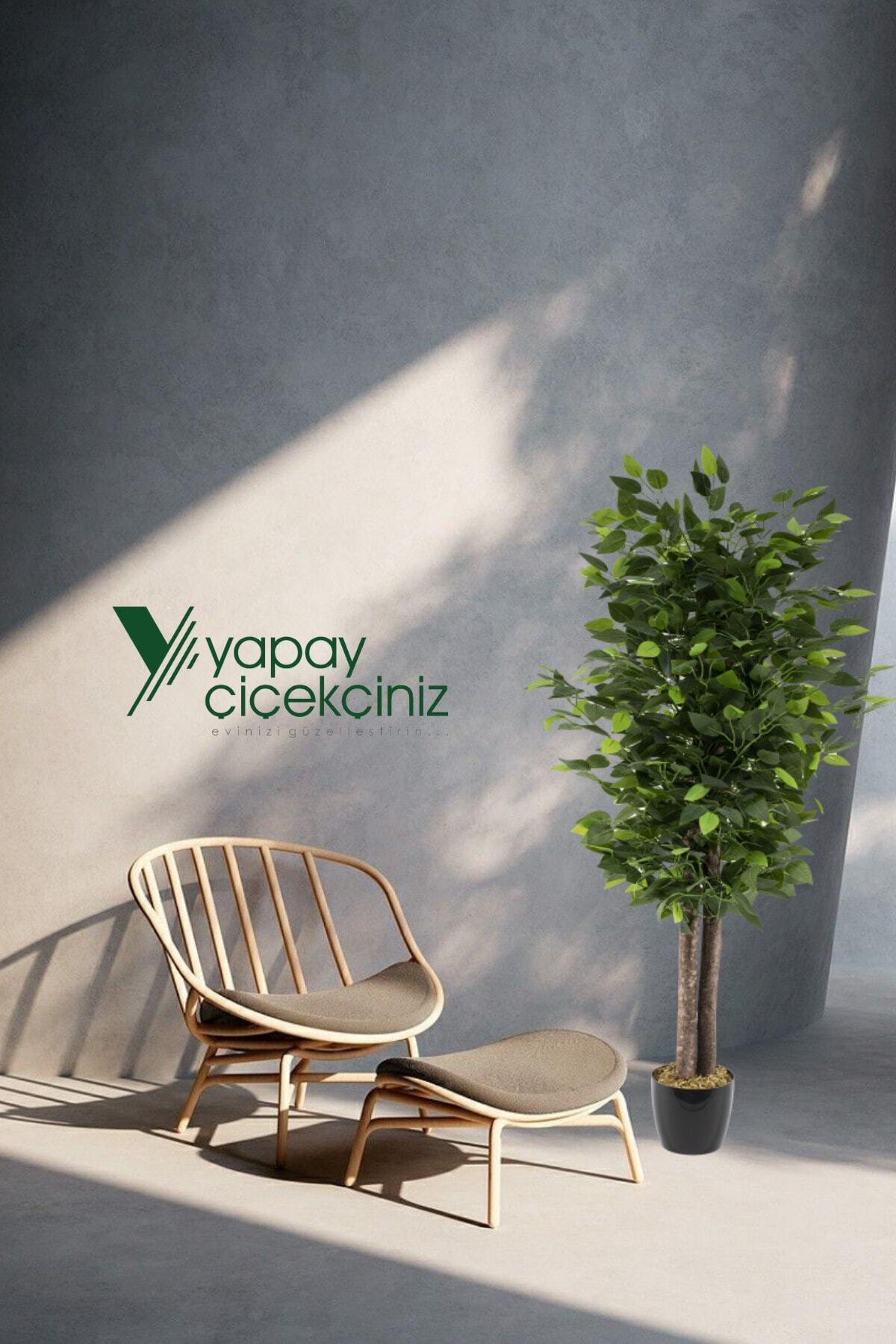 This artificial plant, presented in a black flowerpot, attracts attention as a modern and stylish decoration element