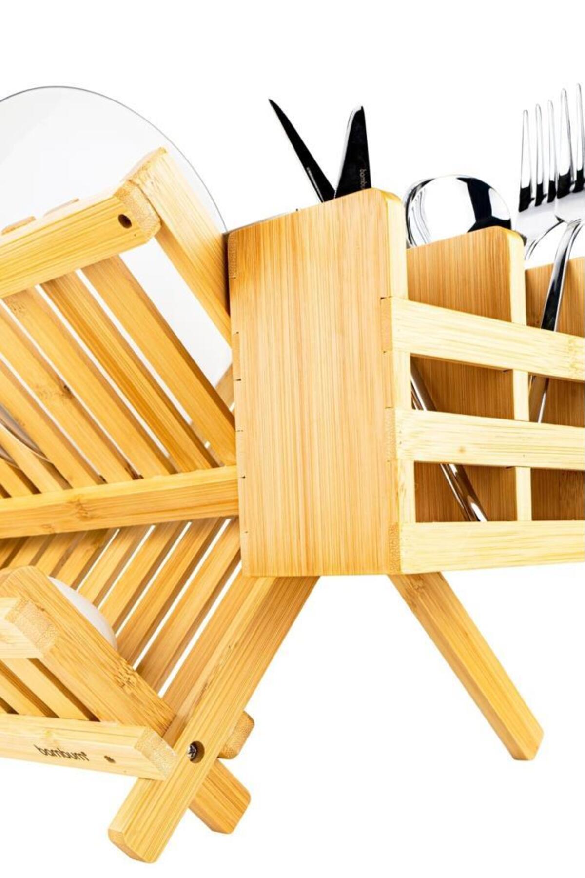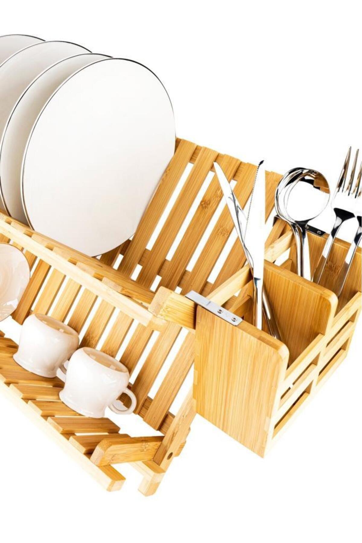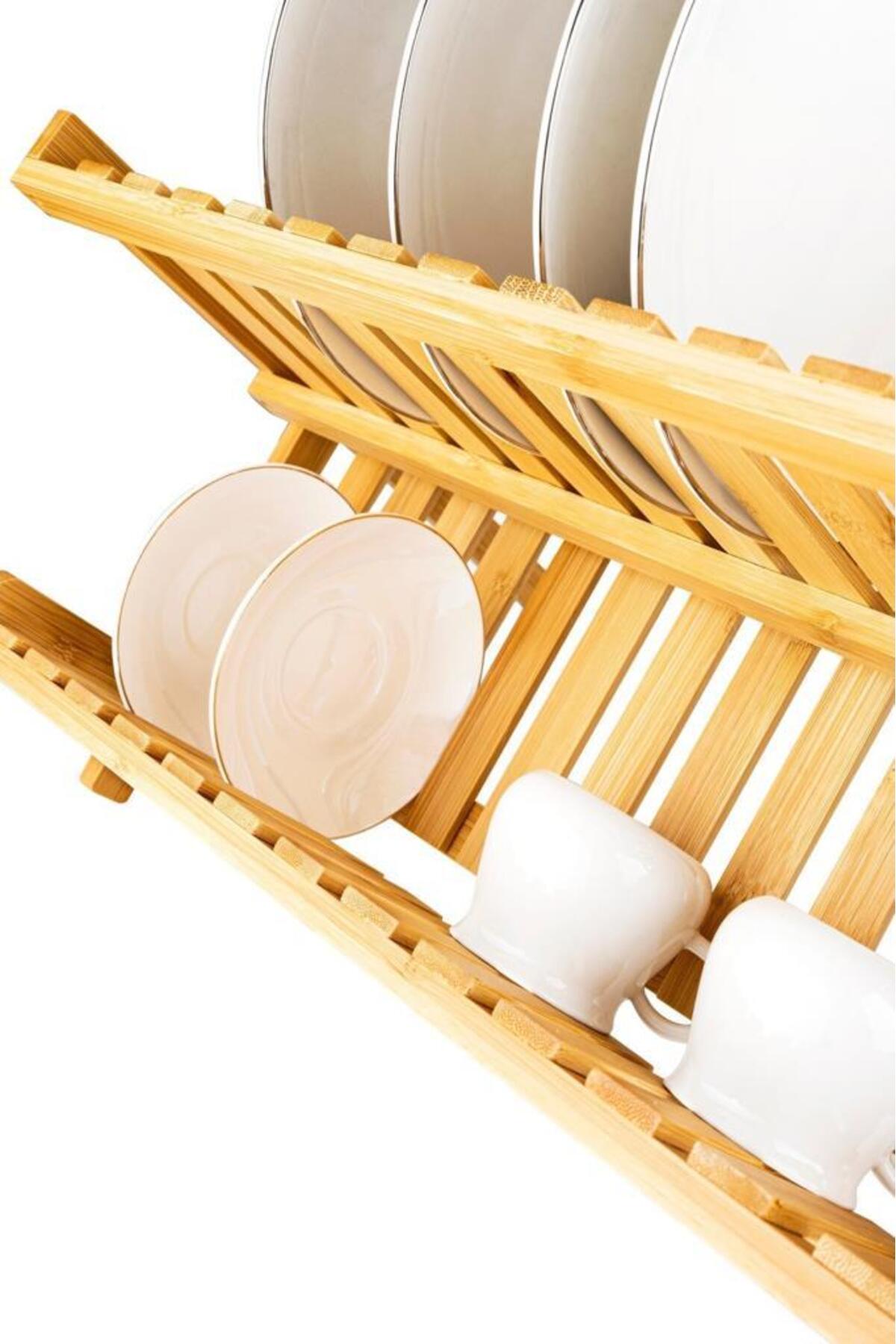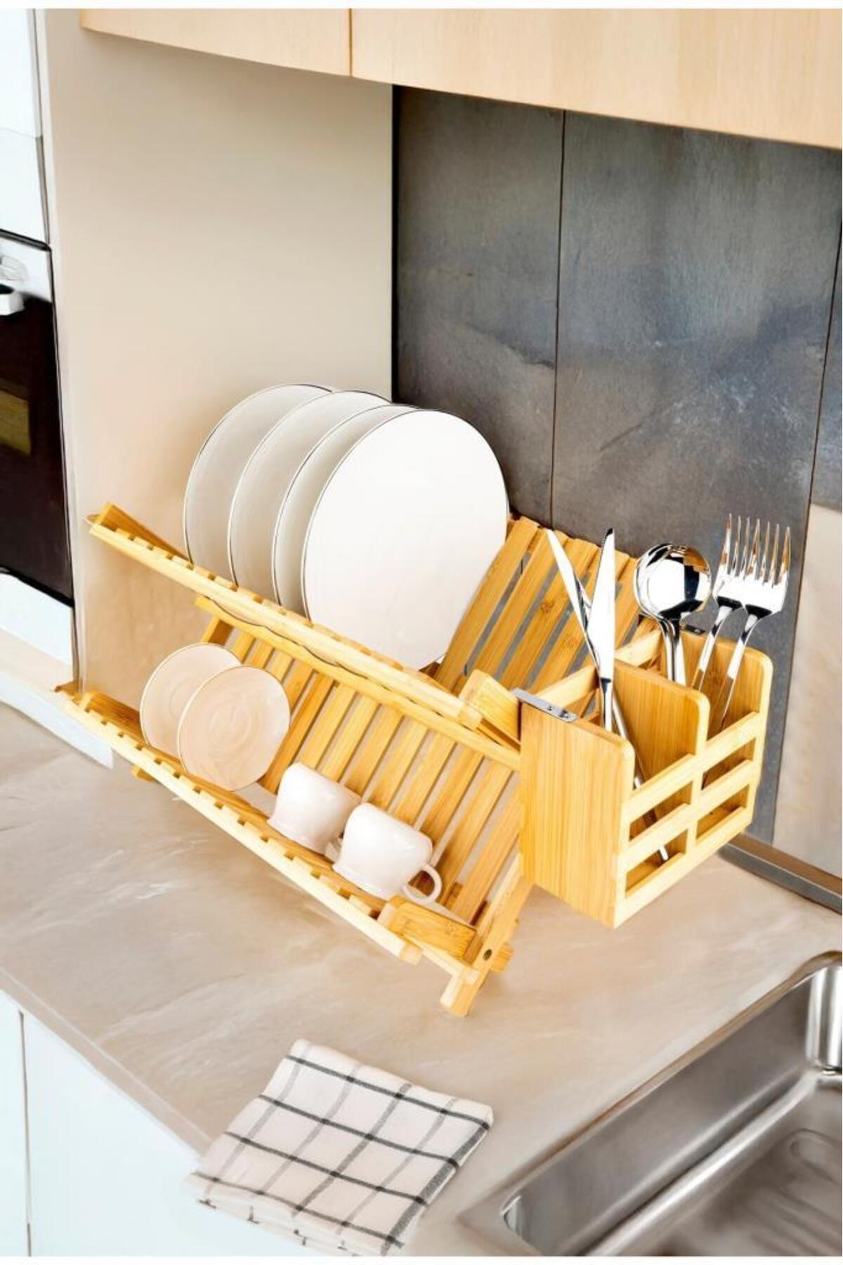 - When the bamboo plant comes into contact with water, it does not swell like other types of wood, so your Enda dish basket will never be deformed by water, and thanks to its foldable mechanism, it will expand your use in your kitchen when you do not need it.