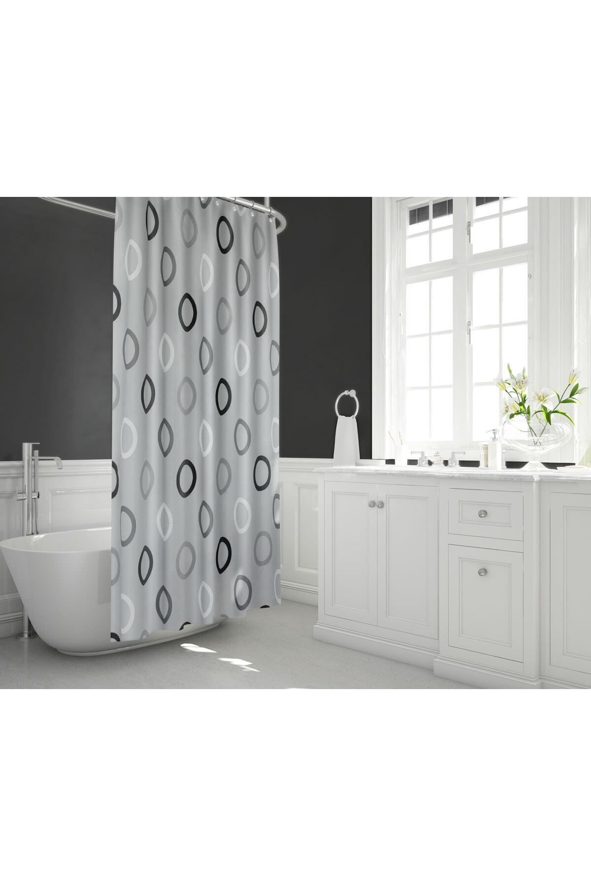 Tropikhome 180x200 Cm Bath Curtain Single Wing Bathroom Shower Curtain-12 Pieces Bathtub Curtain with C Ring Gift | ByTR