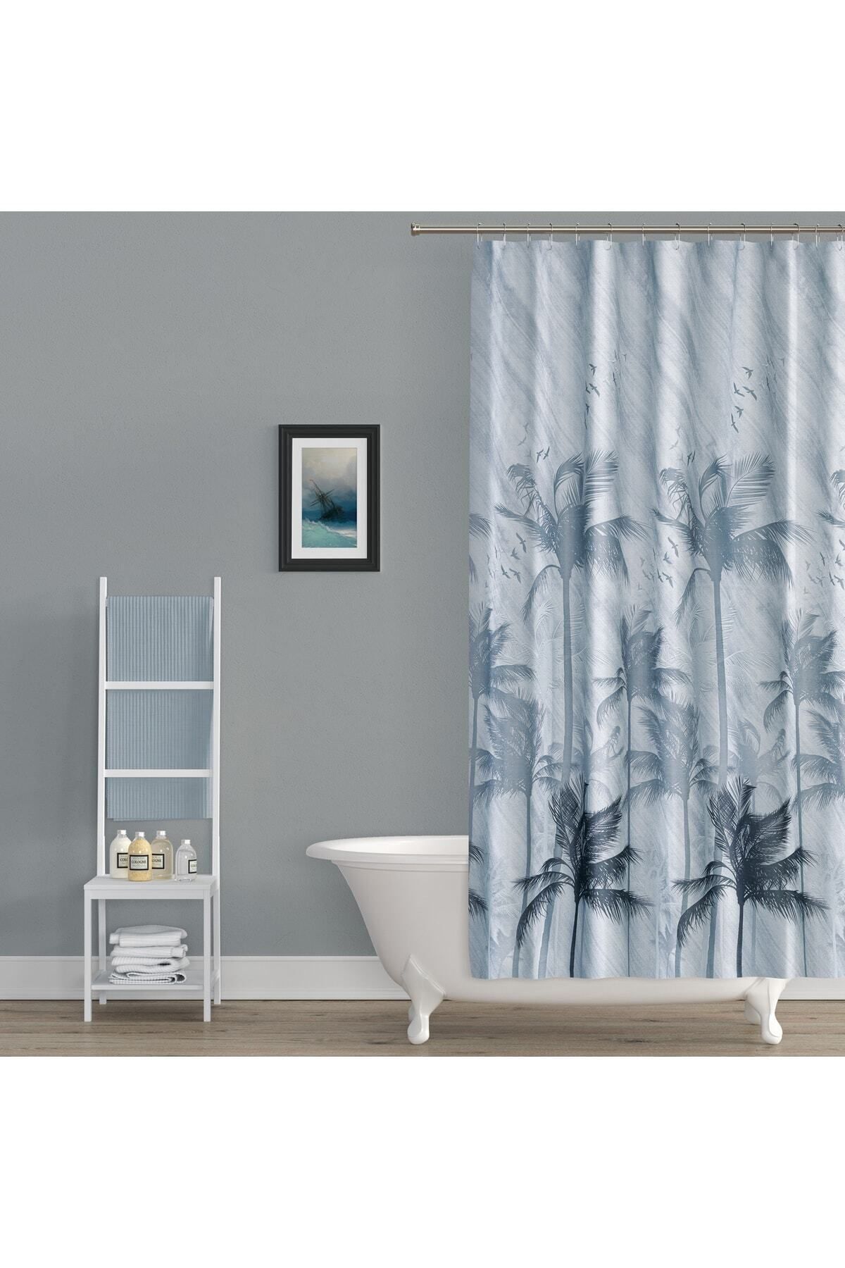 Tropikhome Shower Curtain-palm Pattern Bath Curtain, 180x200cm Single Wing Shower Curtain 12 Pcs C Ring Gift | ByTR