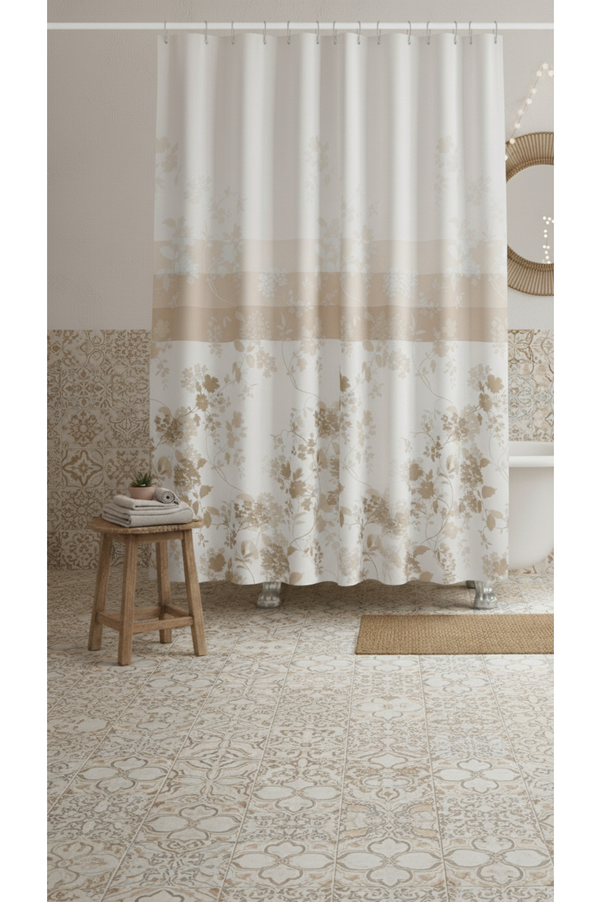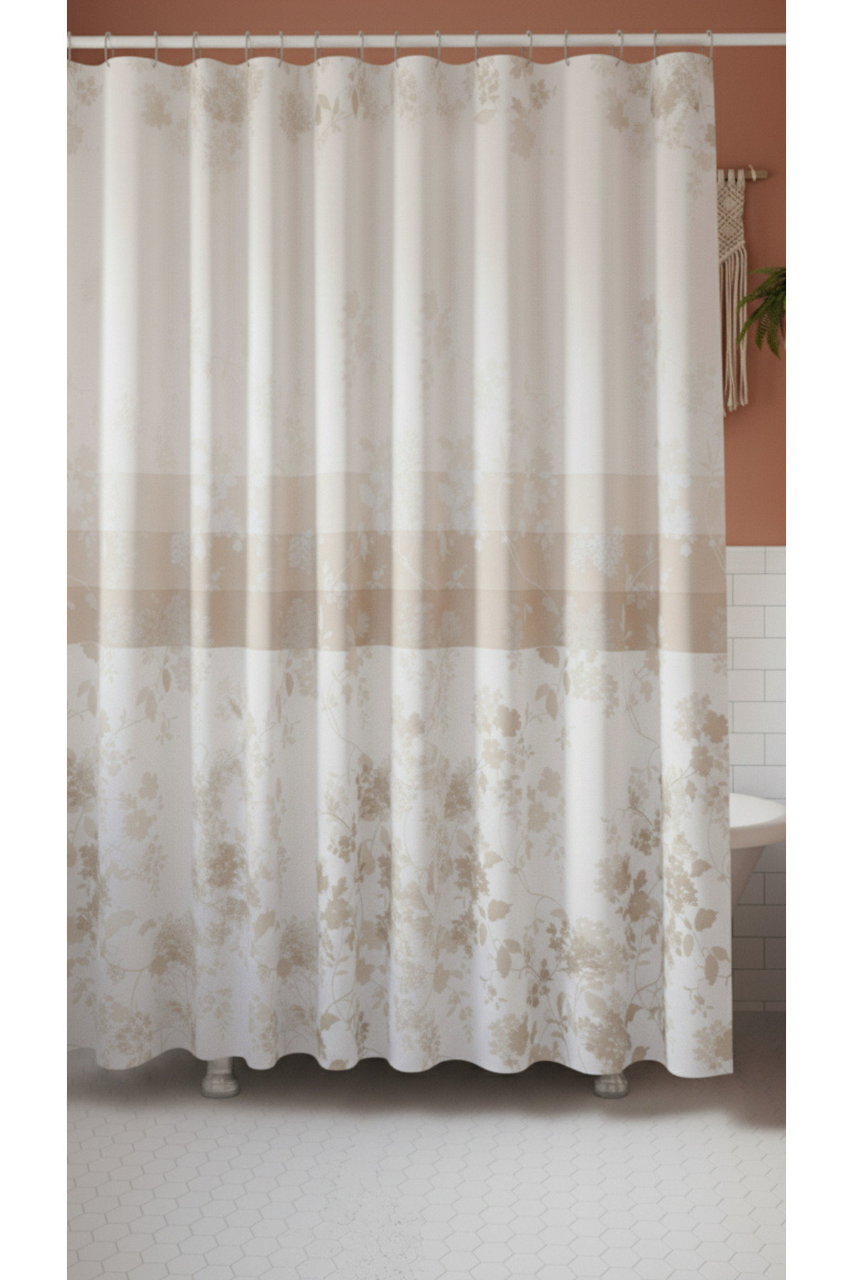 This shower curtain, which comes in one piece, provides easy installation.