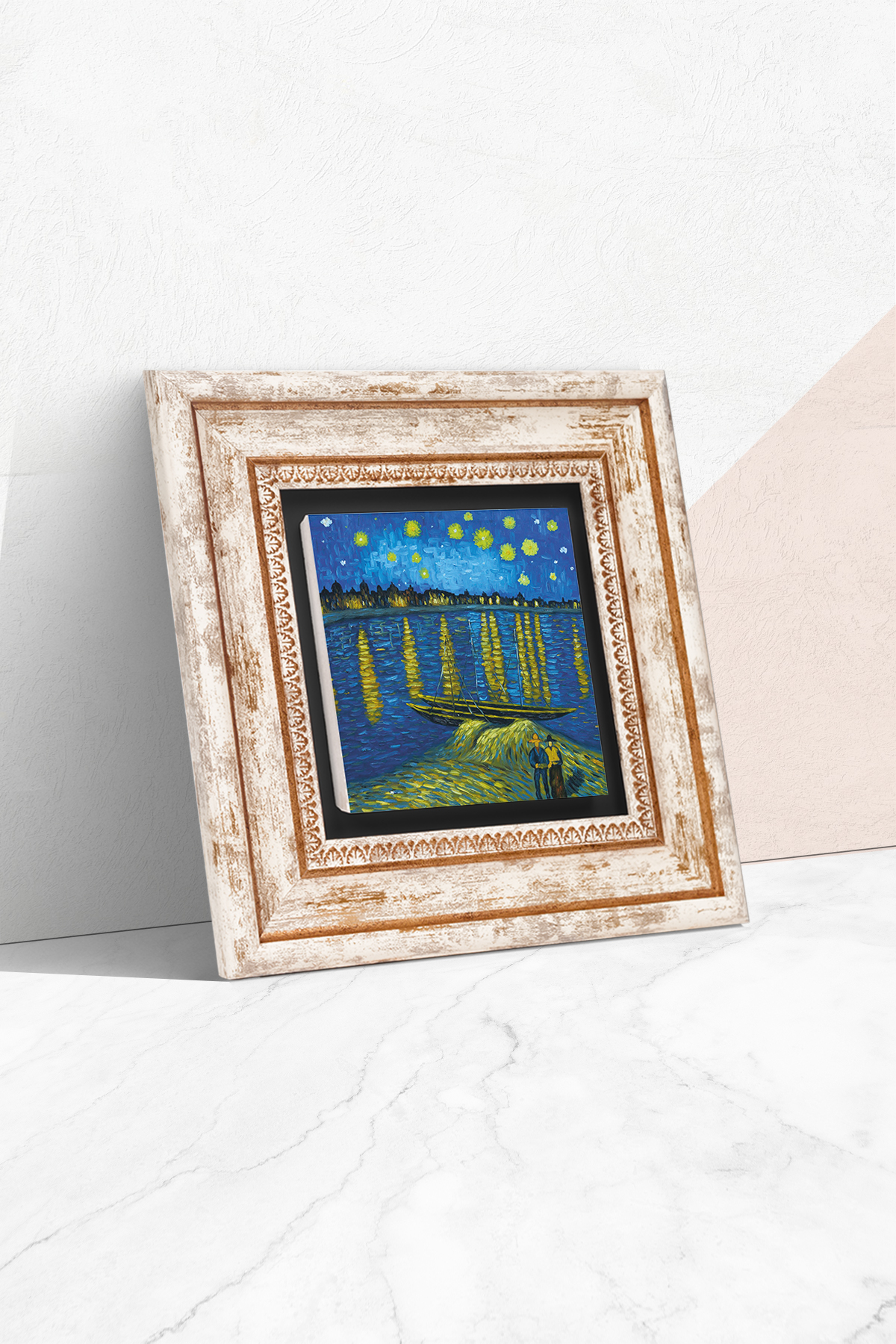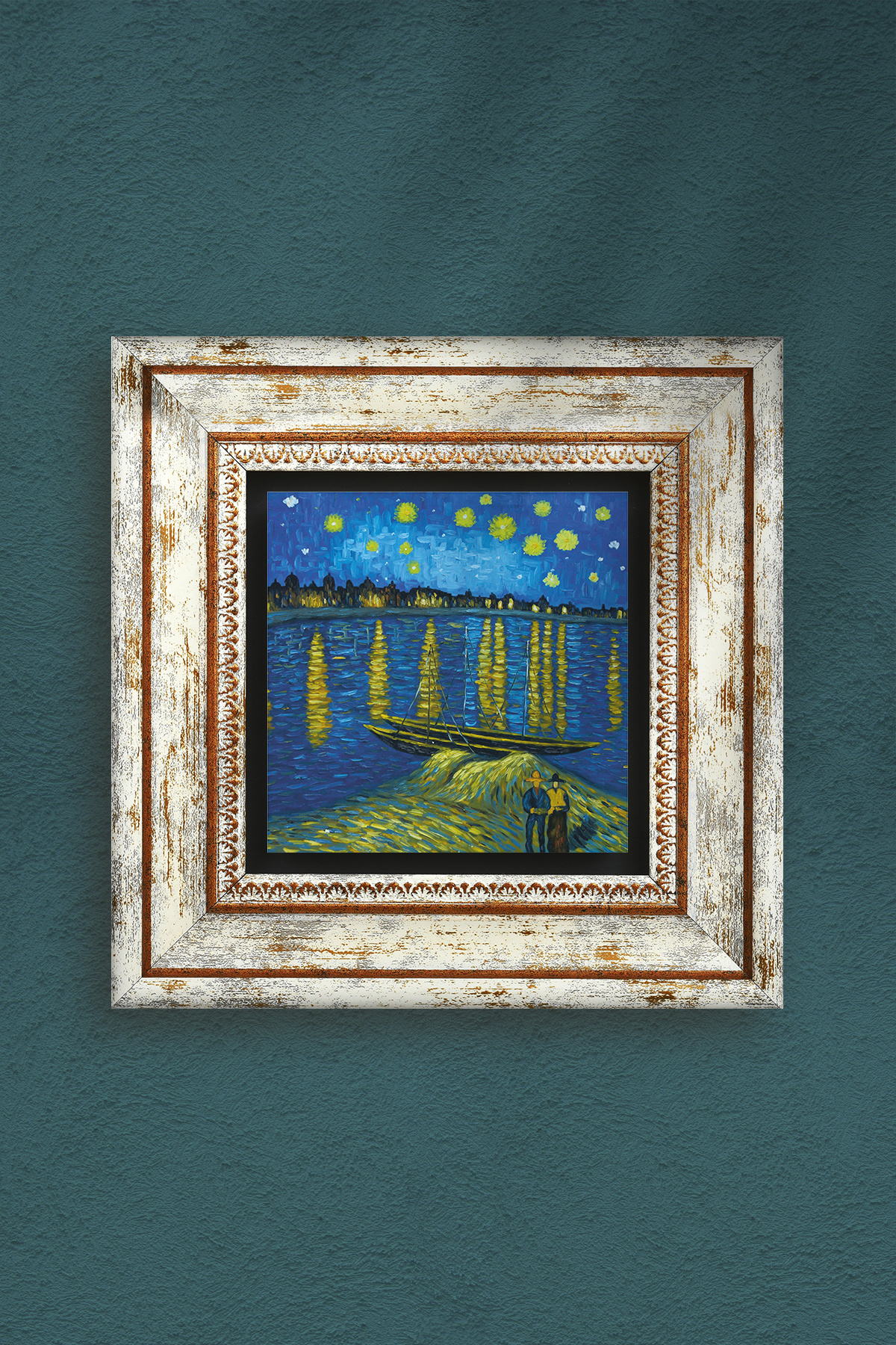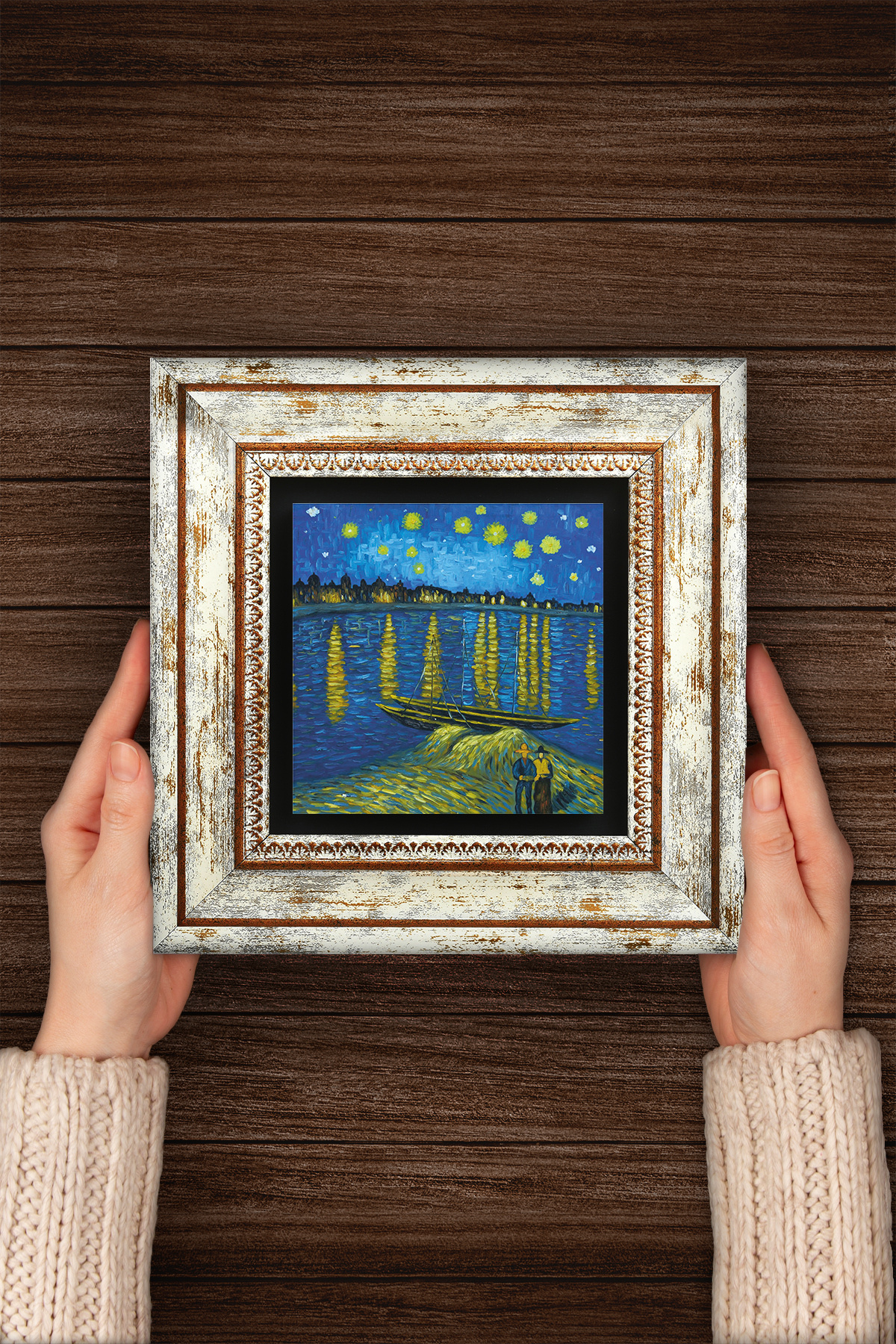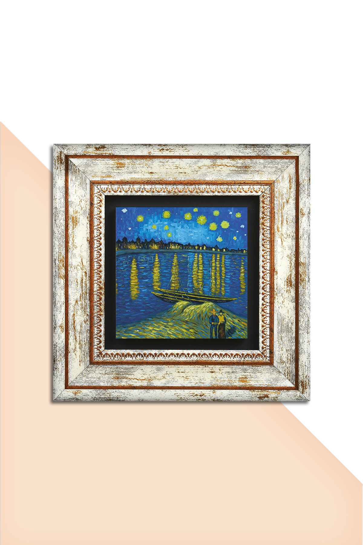 A Starry Night on the Van Gogh Rhine River TK1-293 Natural stone material was used on the middle surface of the Stone Wall Table.