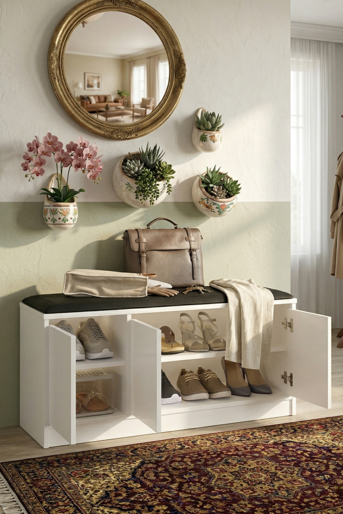 Yurudesign More Puffy Shoe Holder 3 Door Cabinet 90cm White MR2-W Color : White