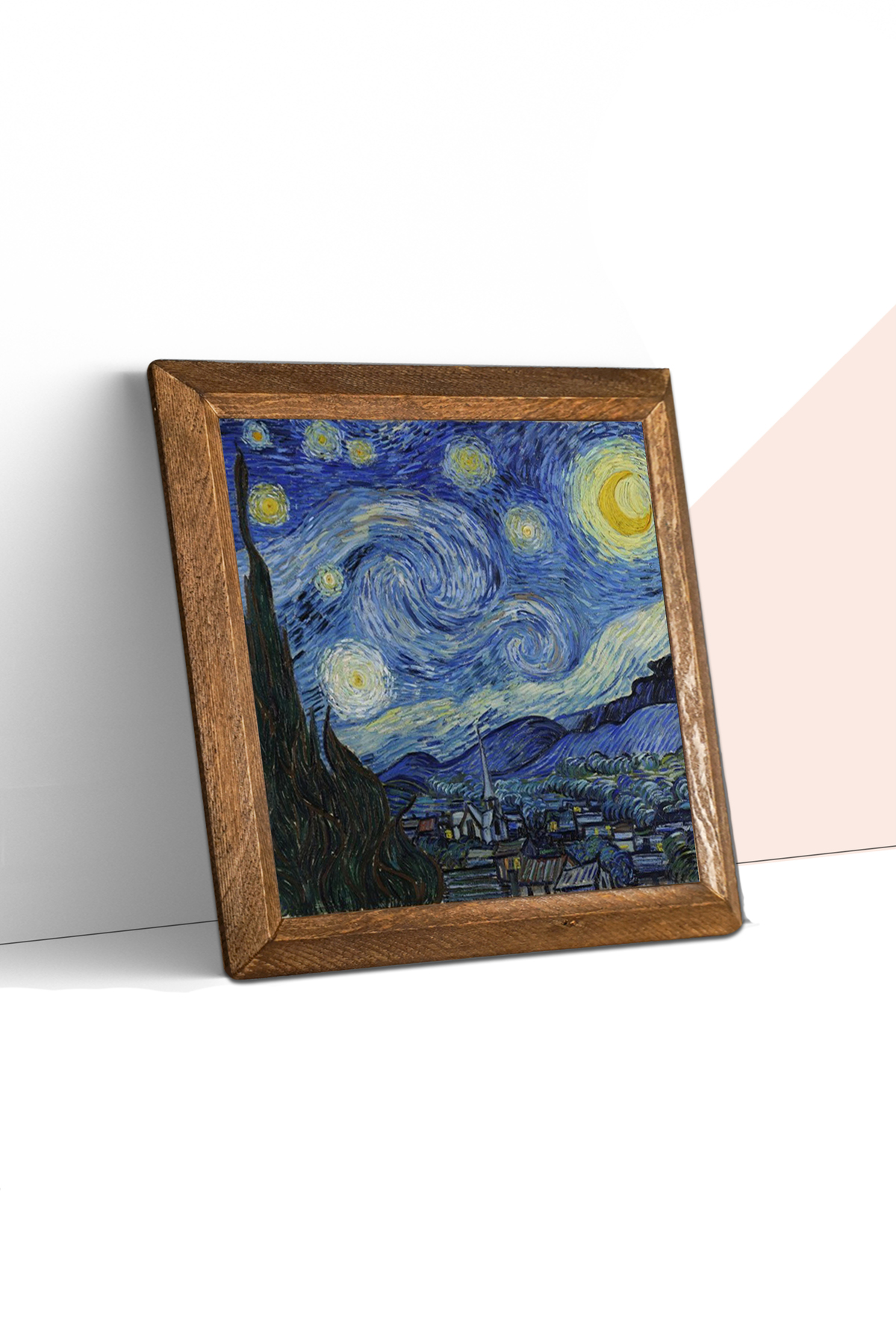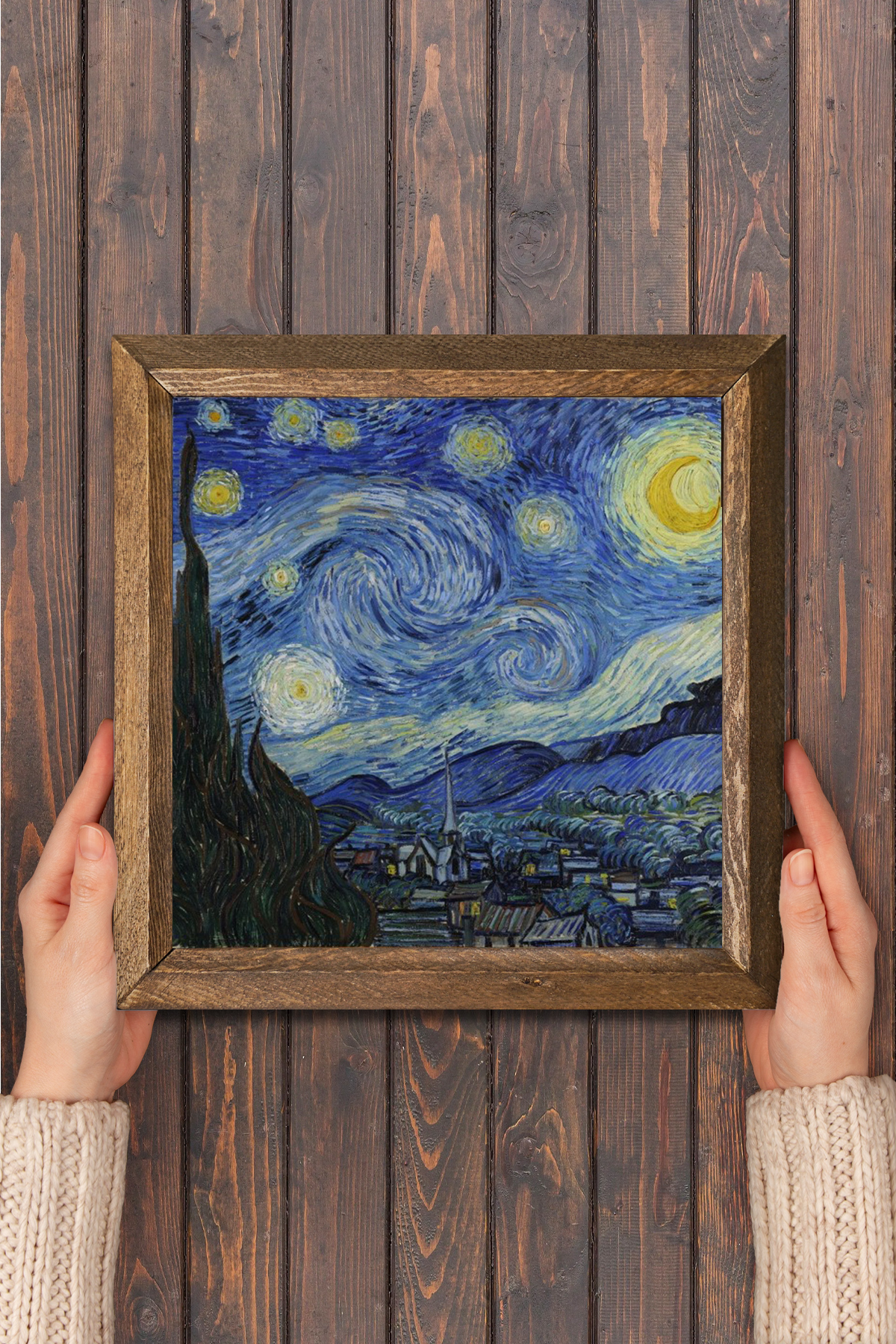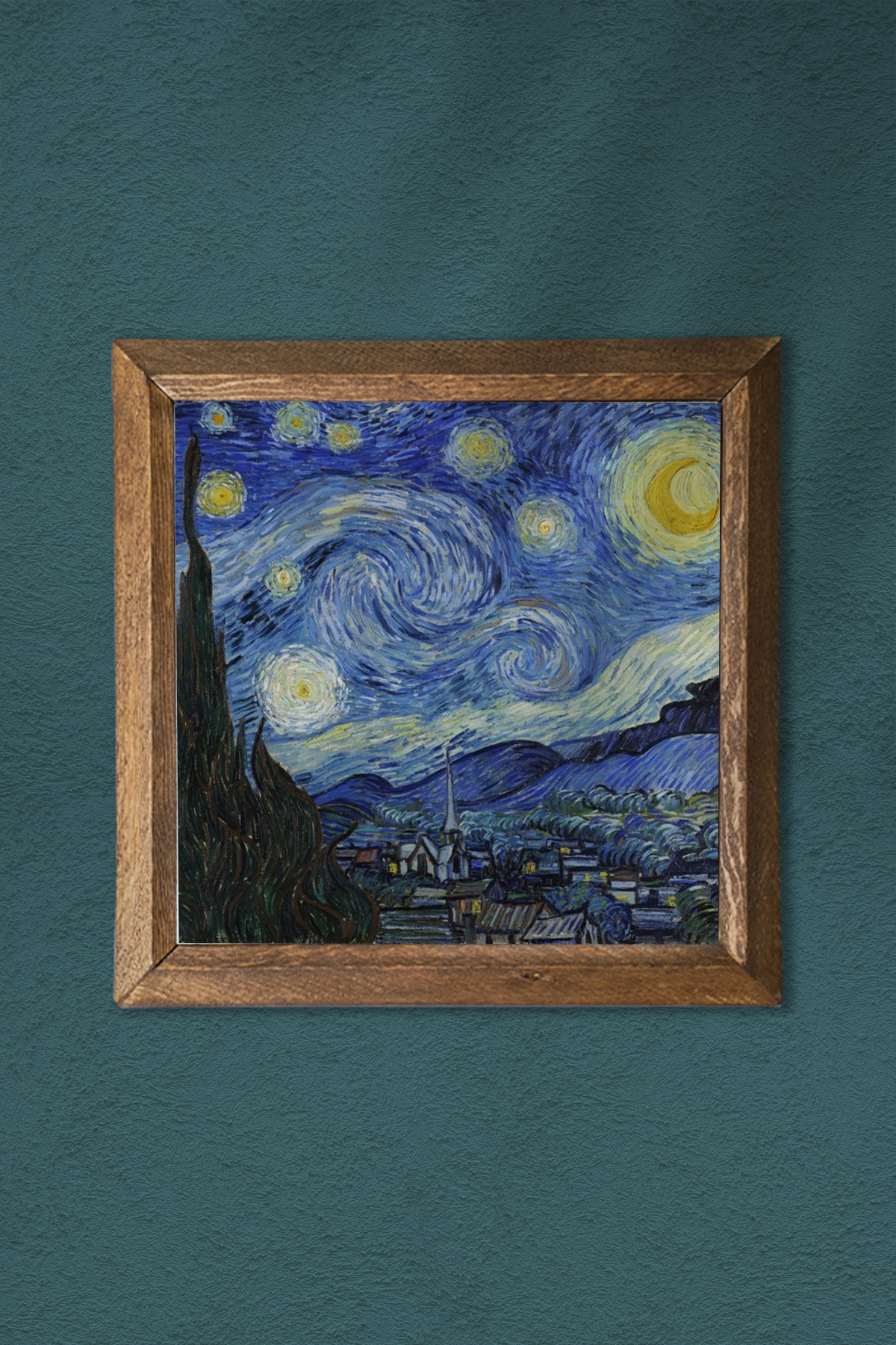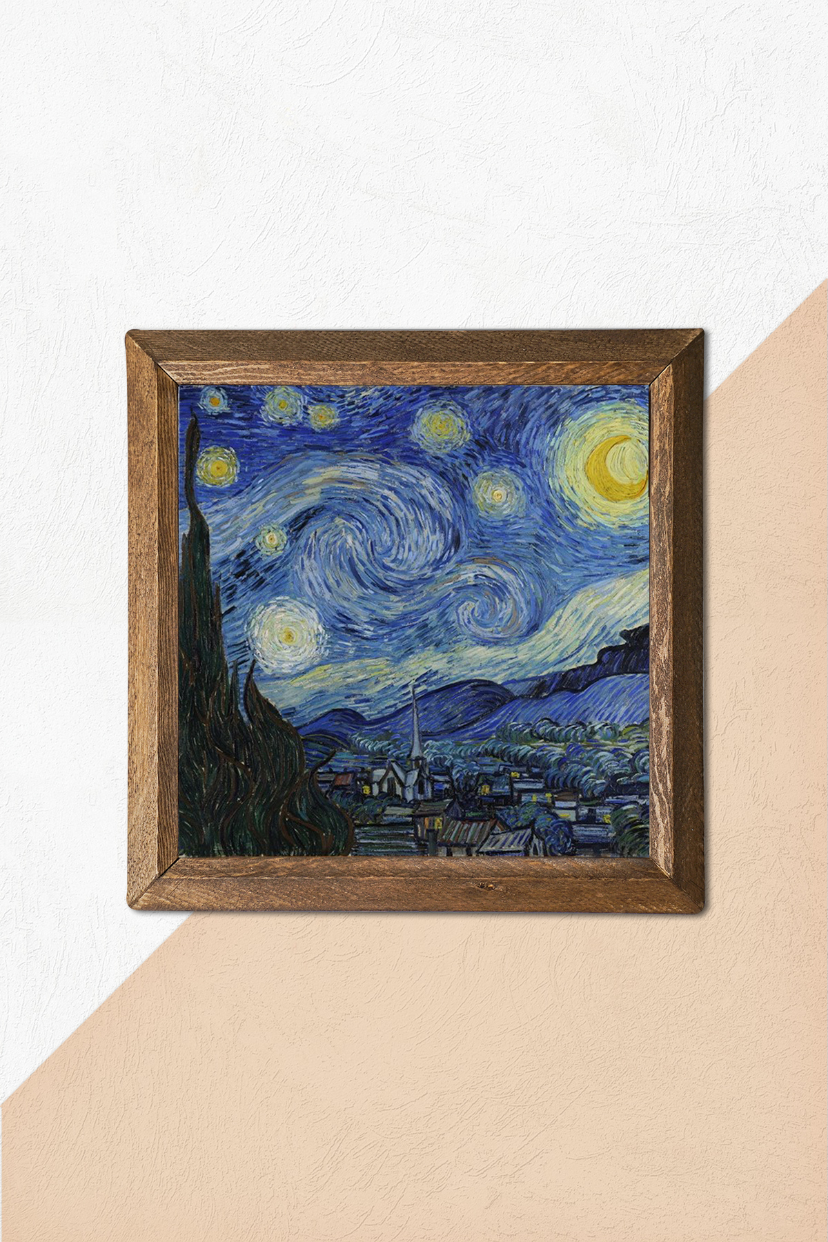 Vincent van Gogh Starry Night - W1-65 - Natural stone material is used on the middle surface of the Wooden Framed Stone Wall Table.