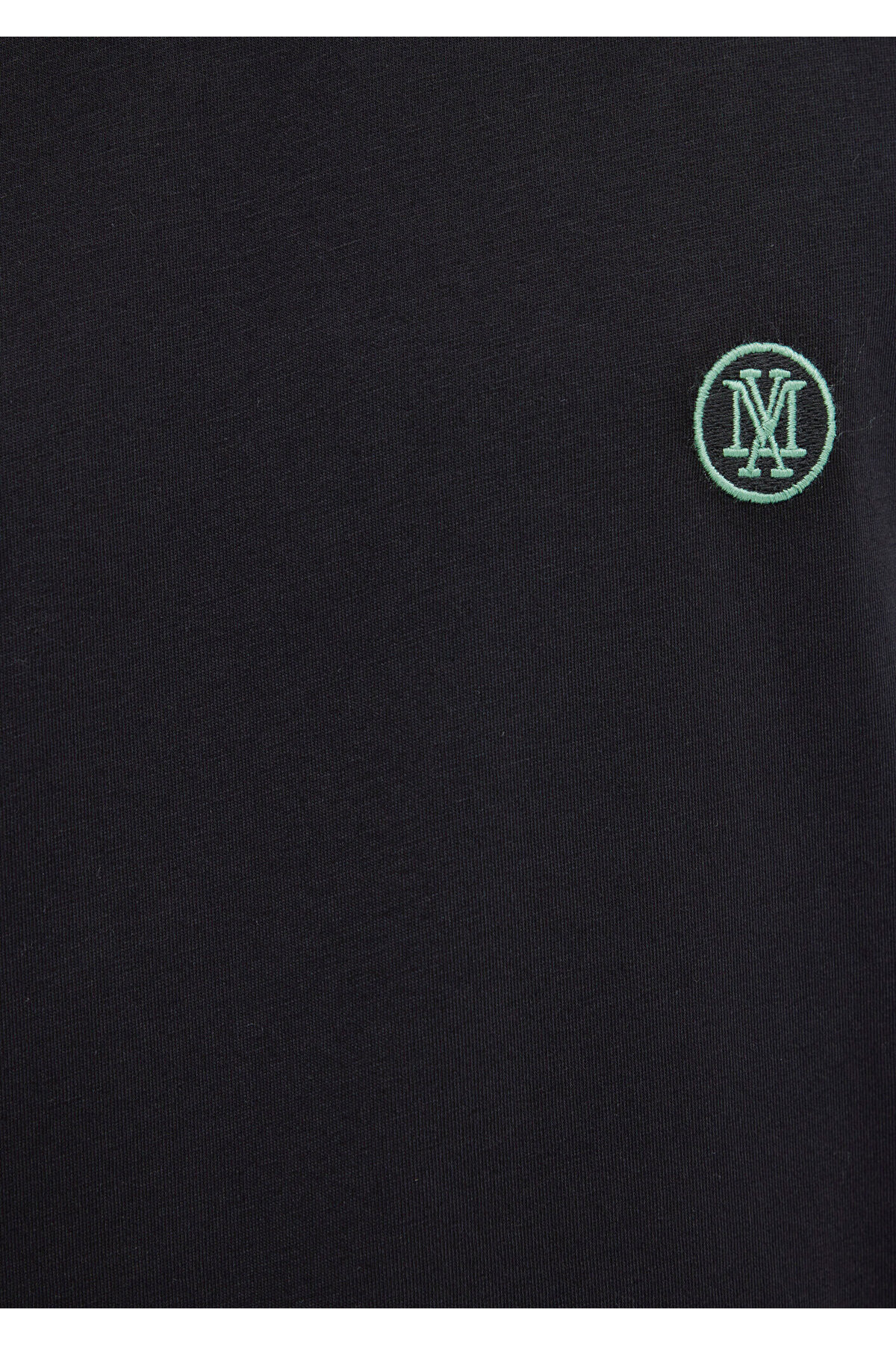 Blue Logo Embroidered Black Basic T-Shirt.