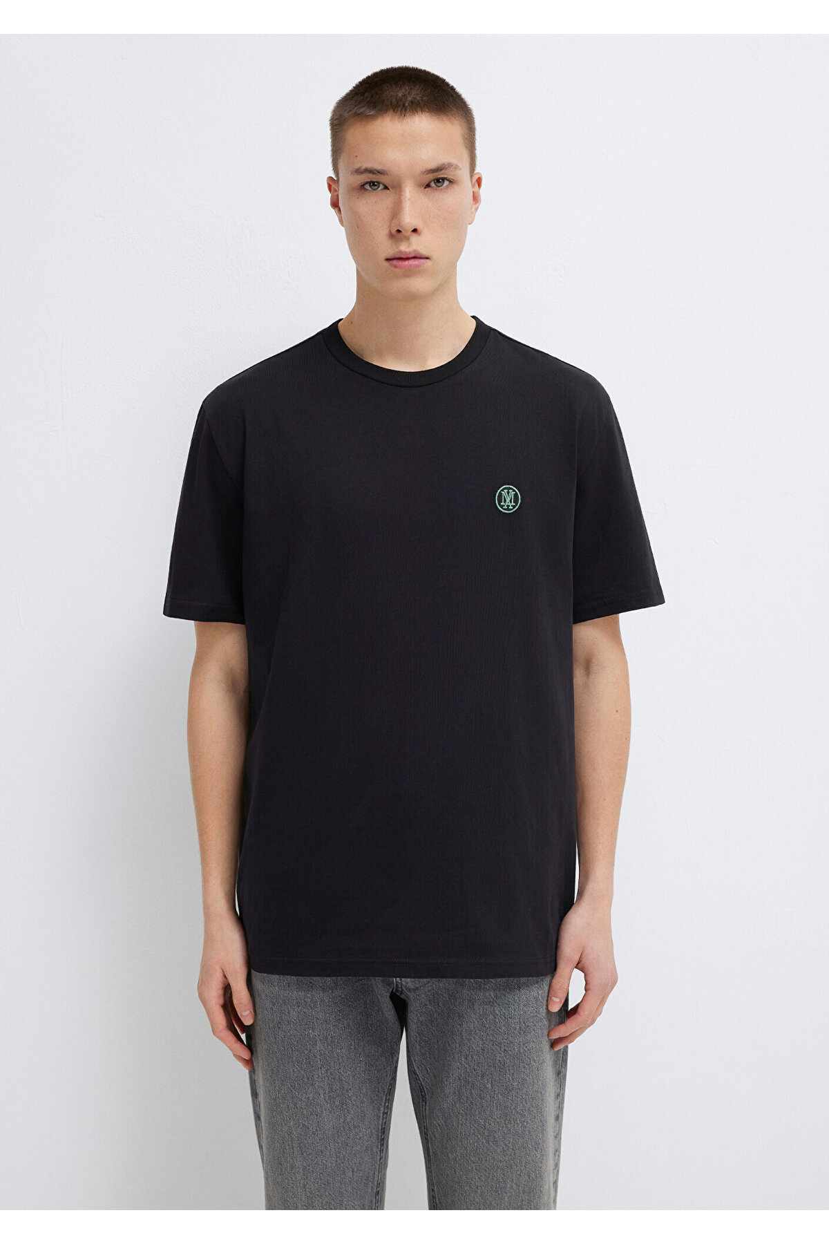 Hundred percent cotton, loose fit, comfortable cut logo embroidered T-shirt.