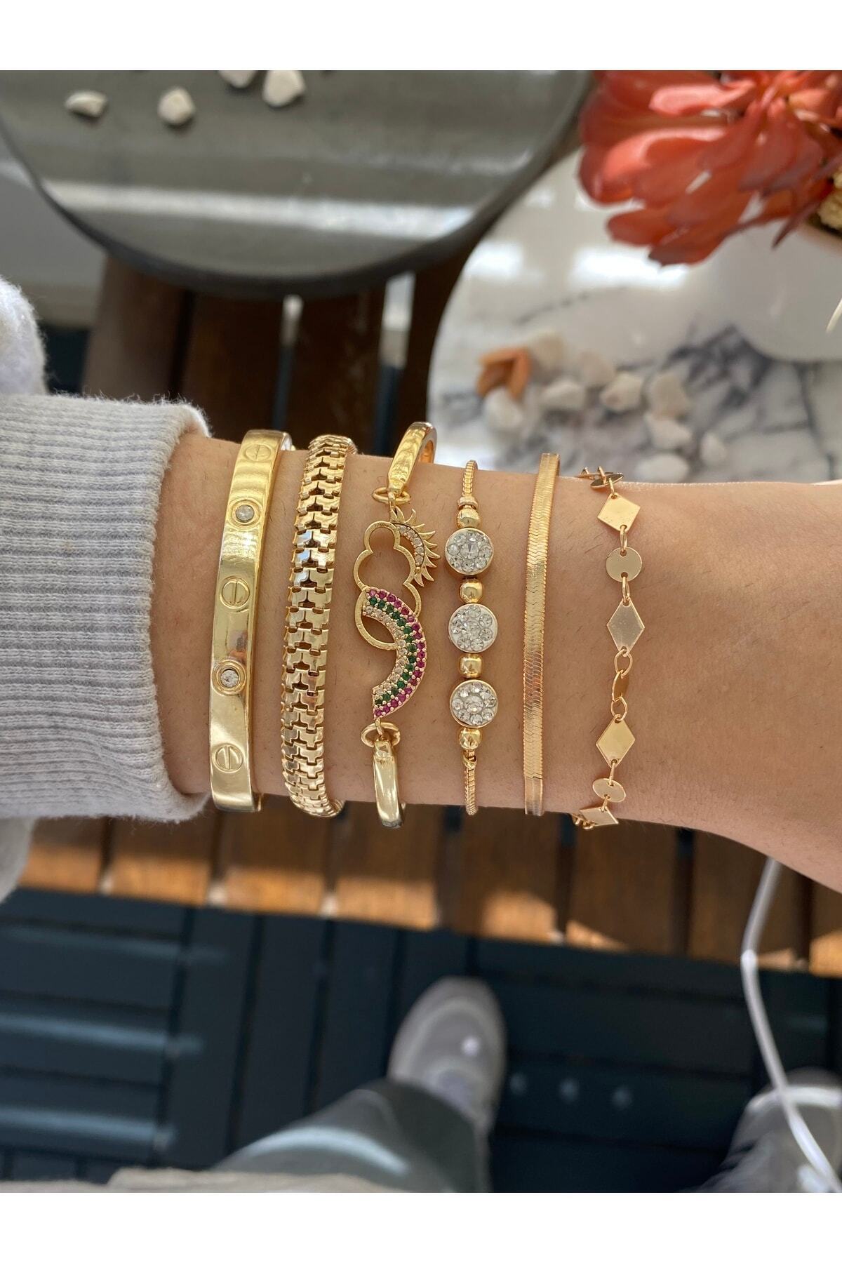 The set of five different bracelets complements your style on daily or special occasions by offering the opportunity to create different combinations