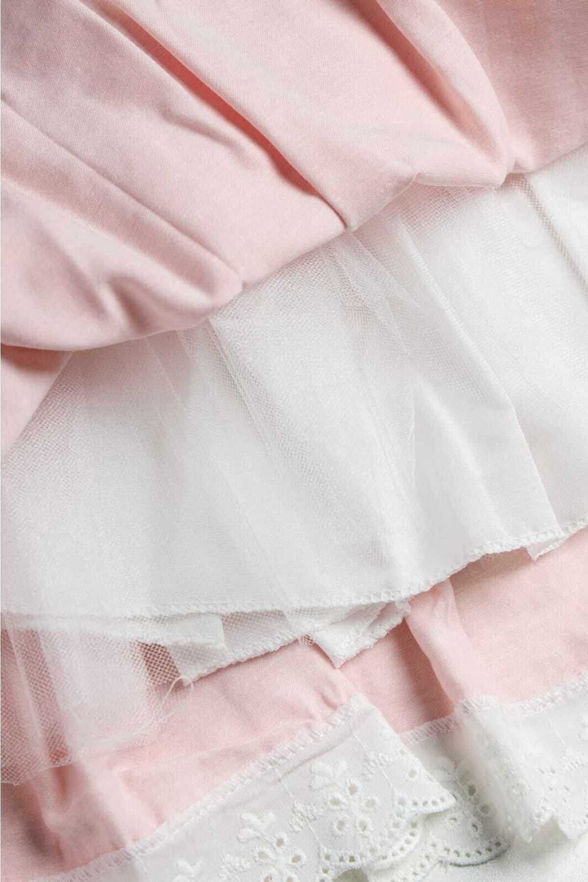 Our Isabella Dress with scallop embroidery collar, ruffle detail tulle and cotton lining with cotton fabric is with you
