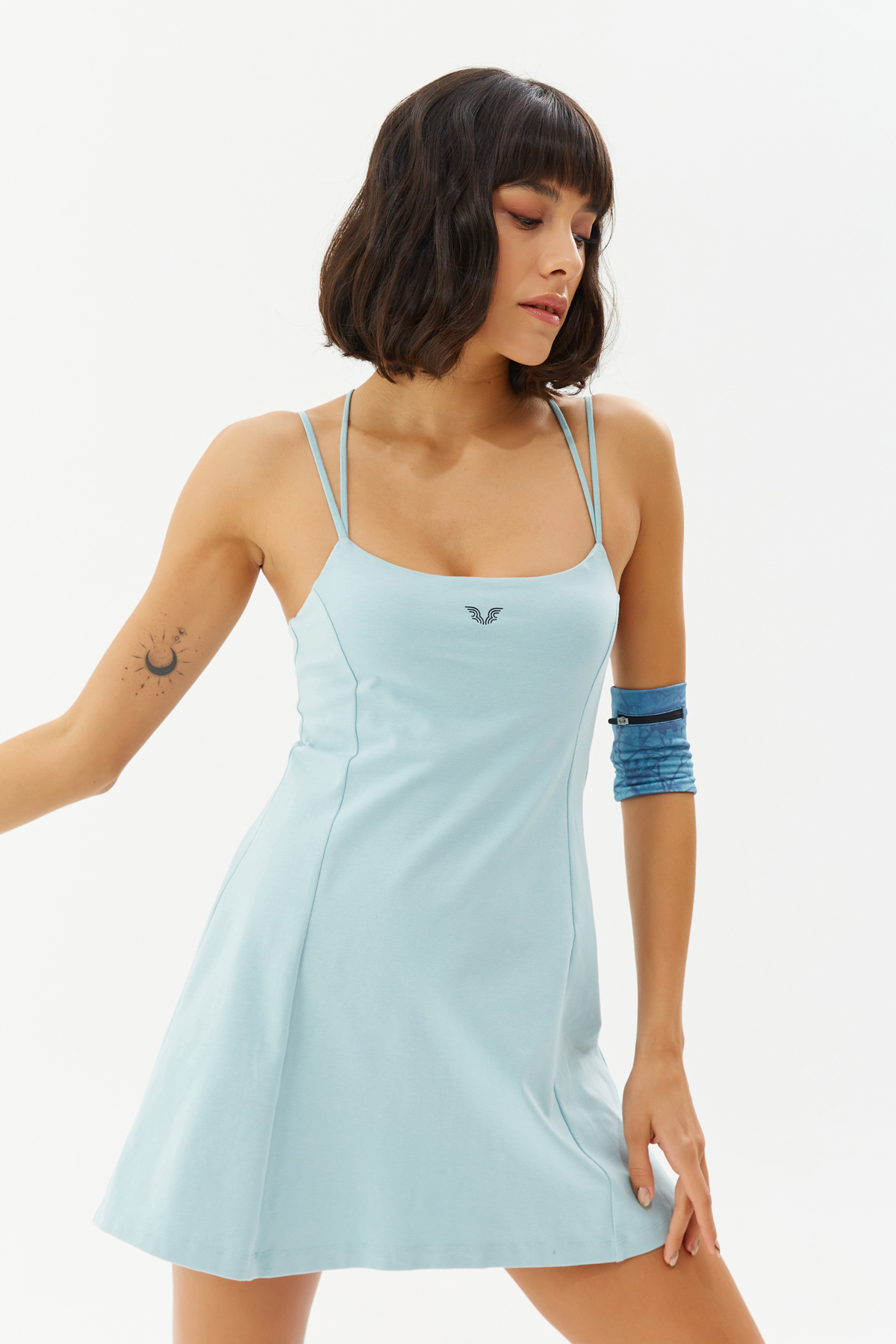 Women's Blue Rope Strap Cotton Wrap Tights Corset Jumpsuit Mini Sport and Tennis Dress Skirt 0119 Fabric: Cotlycra Fabric Specifications: 90% COTTON 10% ELASTANE Dress with thin strap, chest wrapper and wrap around the body.