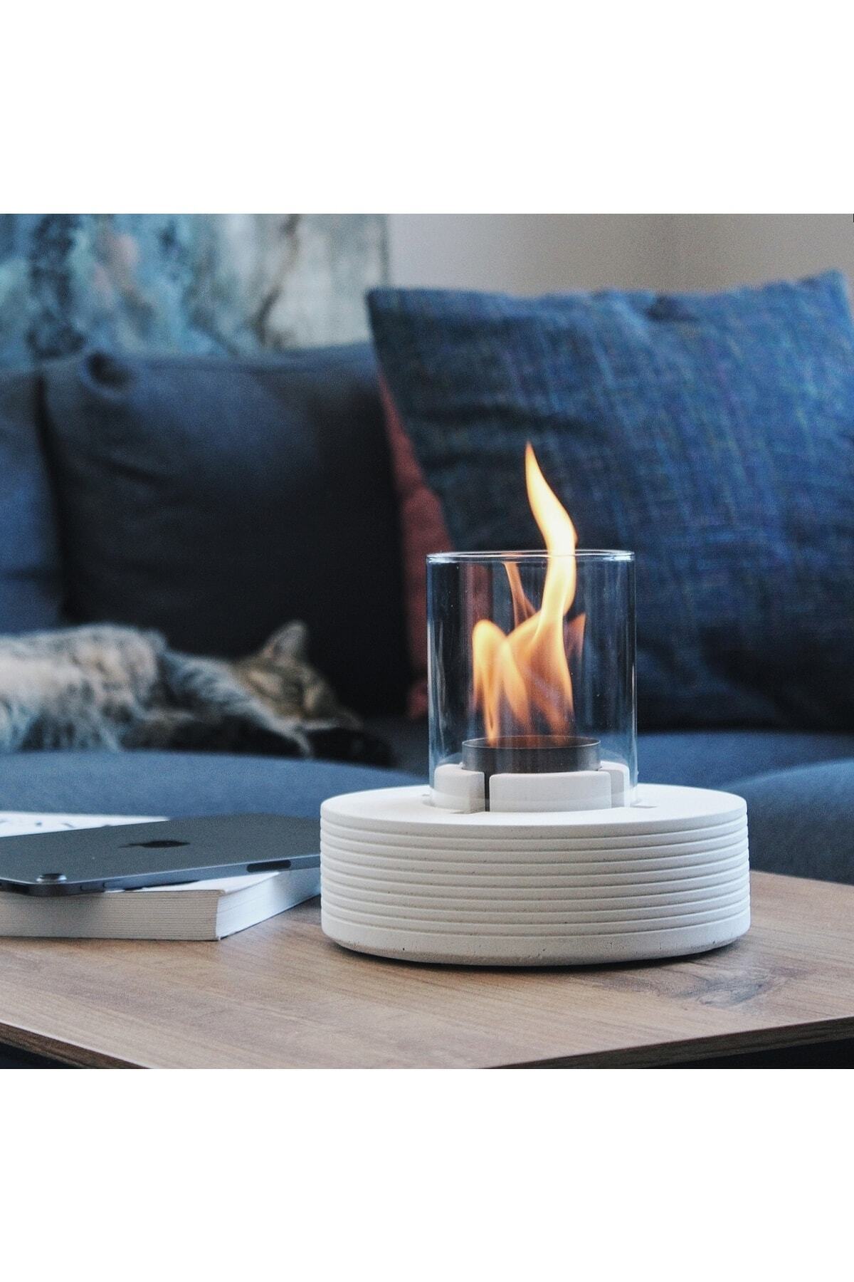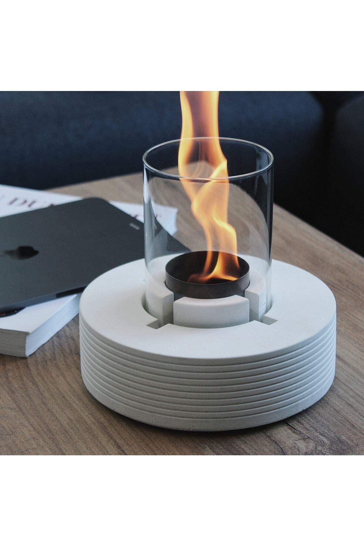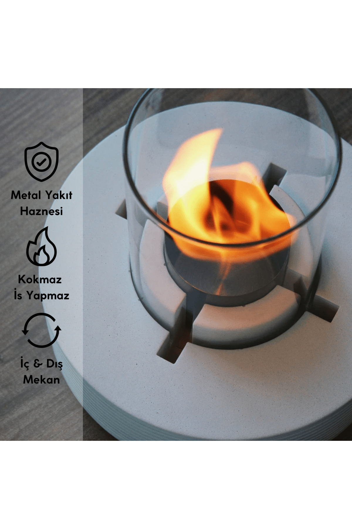 Product Information: Material: Special high temperature concrete Dimensions: 20 cm diameter x 19.5 cm height Weight: 2.5 kg Fuel Capacity: 150 ml Working Time: 50-60 minutes Featured Features: Portable and multi-purpose use Stylish and modern design Aesthetic and durable construction with concrete material Works with odorless fireplace fuels Safe to use indoors and outdoors Uses: Living room Patio Kitchen Bedroom Dining room Camping Box Content: Pure-Fire V.3 Concrete Fireplace Metal Fuel Tank Special Protective Glass 1 Liter Tabart Fireplace Fuel Product Description: Pure-Fire V.3 is a multi-purpose fireplace that can be used in all areas with its portability and modern design.