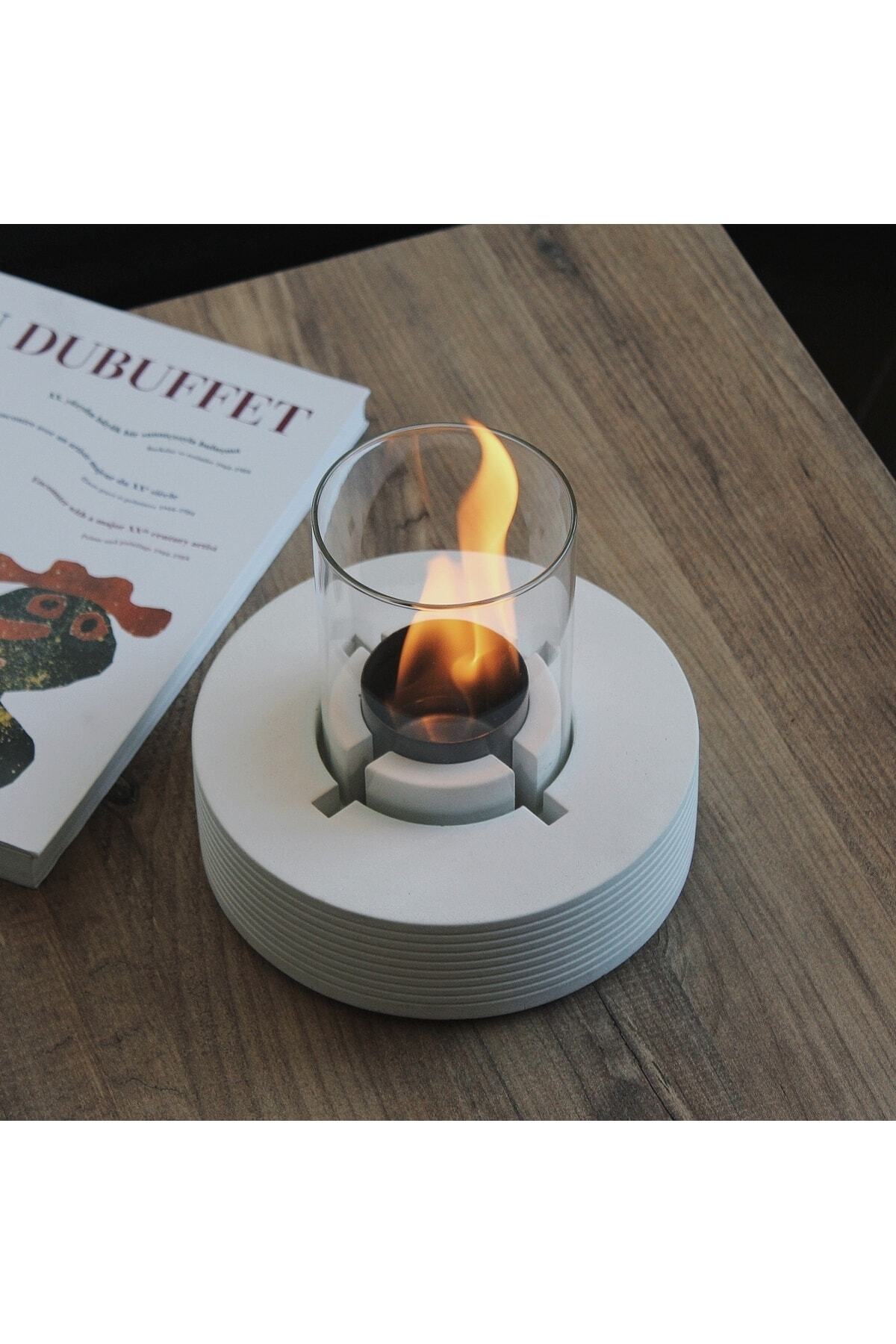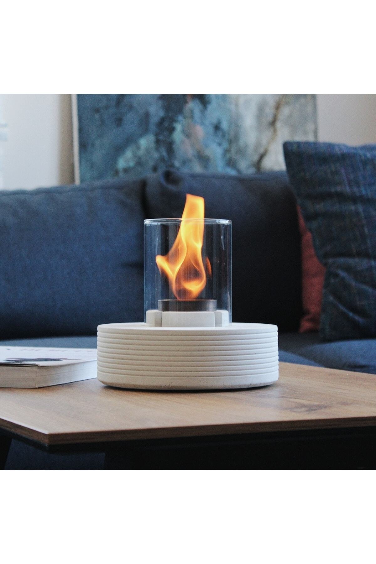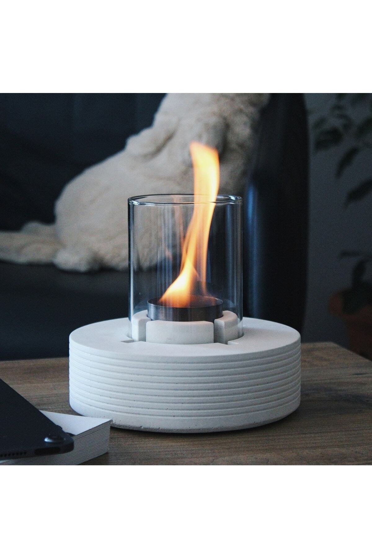 Product Information: Material: Special high temperature concrete Dimensions: 20 cm diameter x 19.5 cm height Weight: 2.5 kg Fuel Capacity: 150 ml Working Time: 50-60 minutes Featured Features: Portable and multi-purpose use Stylish and modern design Aesthetic and durable construction with concrete material Works with odorless fireplace fuels Safe to use indoors and outdoors Uses: Living room Patio Kitchen Bedroom Dining room Camping Box Content: Pure-Fire V.3 Concrete Fireplace Metal Fuel Tank Special Protective Glass 1 Liter Tabart Fireplace Fuel Product Description: Pure-Fire V.3 is a multi-purpose fireplace that can be used in all areas with its portability and modern design.
