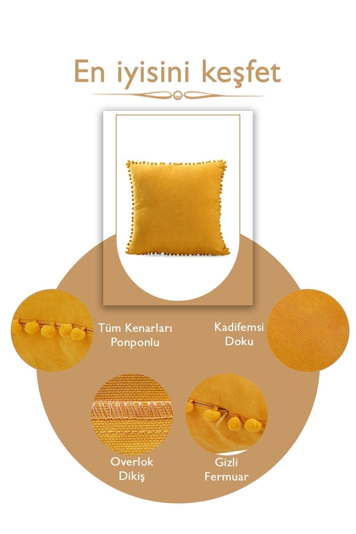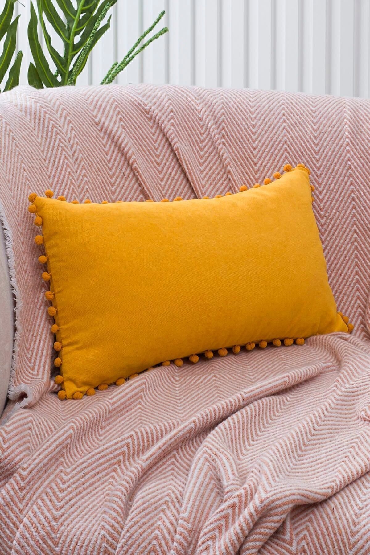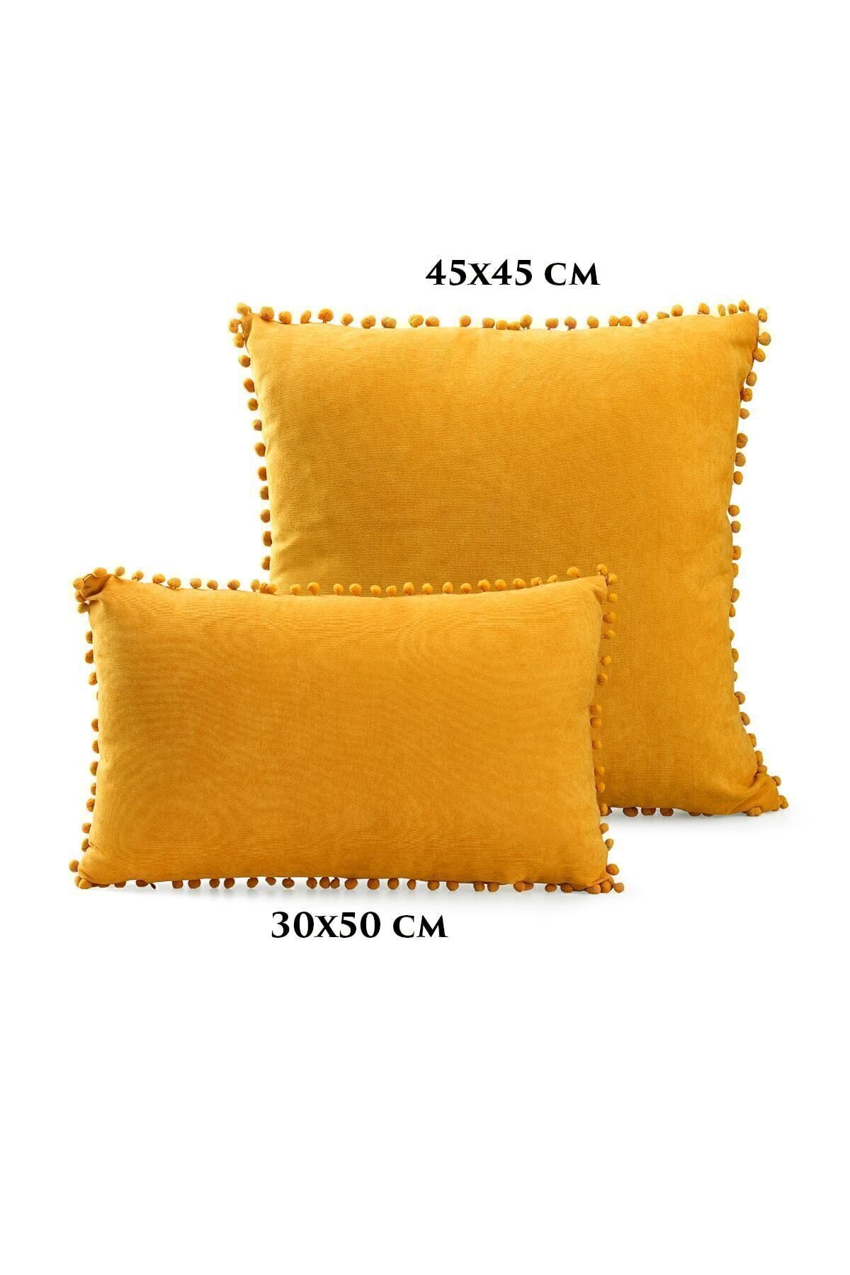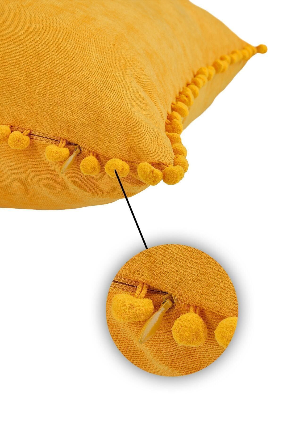 ÖZENEV Yellow Pompom Pillowcase with Color and Size Options Decorative Plain Plain Punch Panorama | ByTR