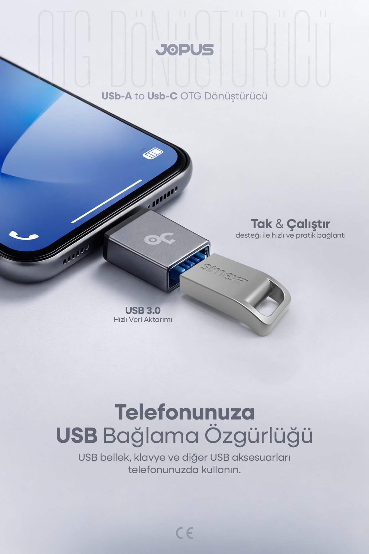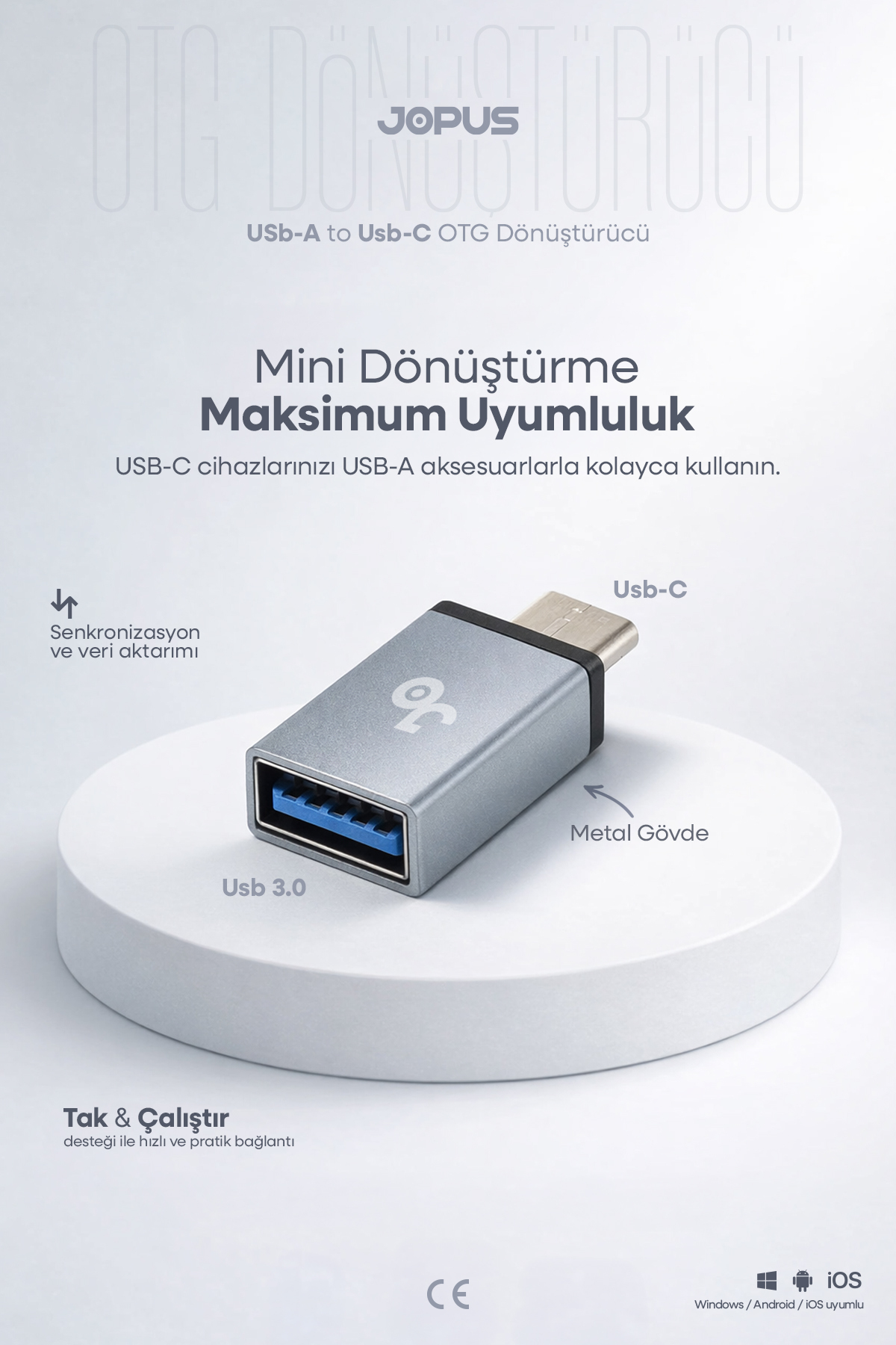 USB to Type-C OTG Converter USB 3.0 İOS, Android and Windows Compatible - This USB to Type-C OTG converter allows you to use your USB-A connected devices on phones, tablets and computers with Type-C input.