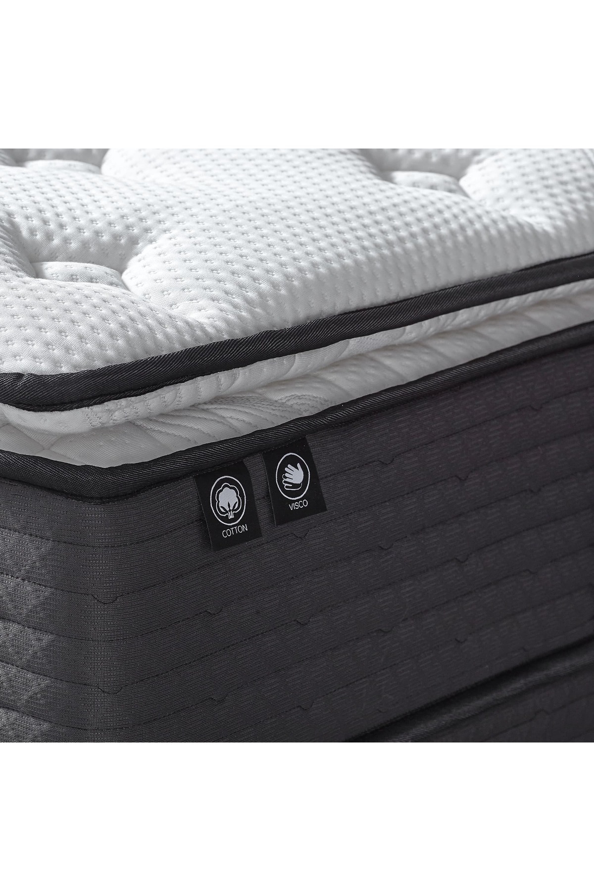 Product Features • Top surface with Pillow Top visco pad • Visco comfort layer • Pocket spring support system • Structure that balances pressure points • Bed type: Visco supported package spring mattress • Hardness degree: Medium Hard • Bed height: 30 cm (±2 cm) • Single-sided use • Roll pack packaging