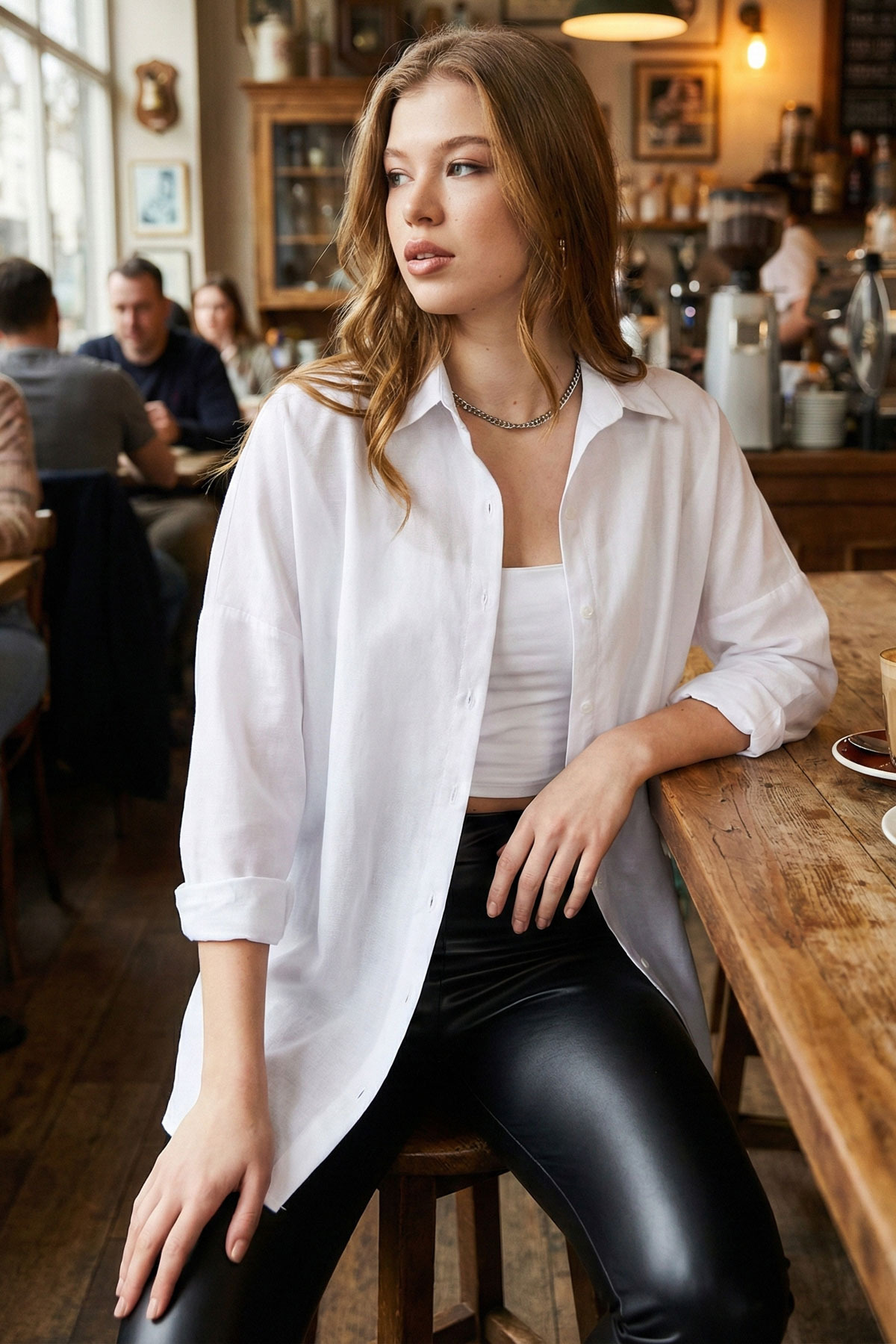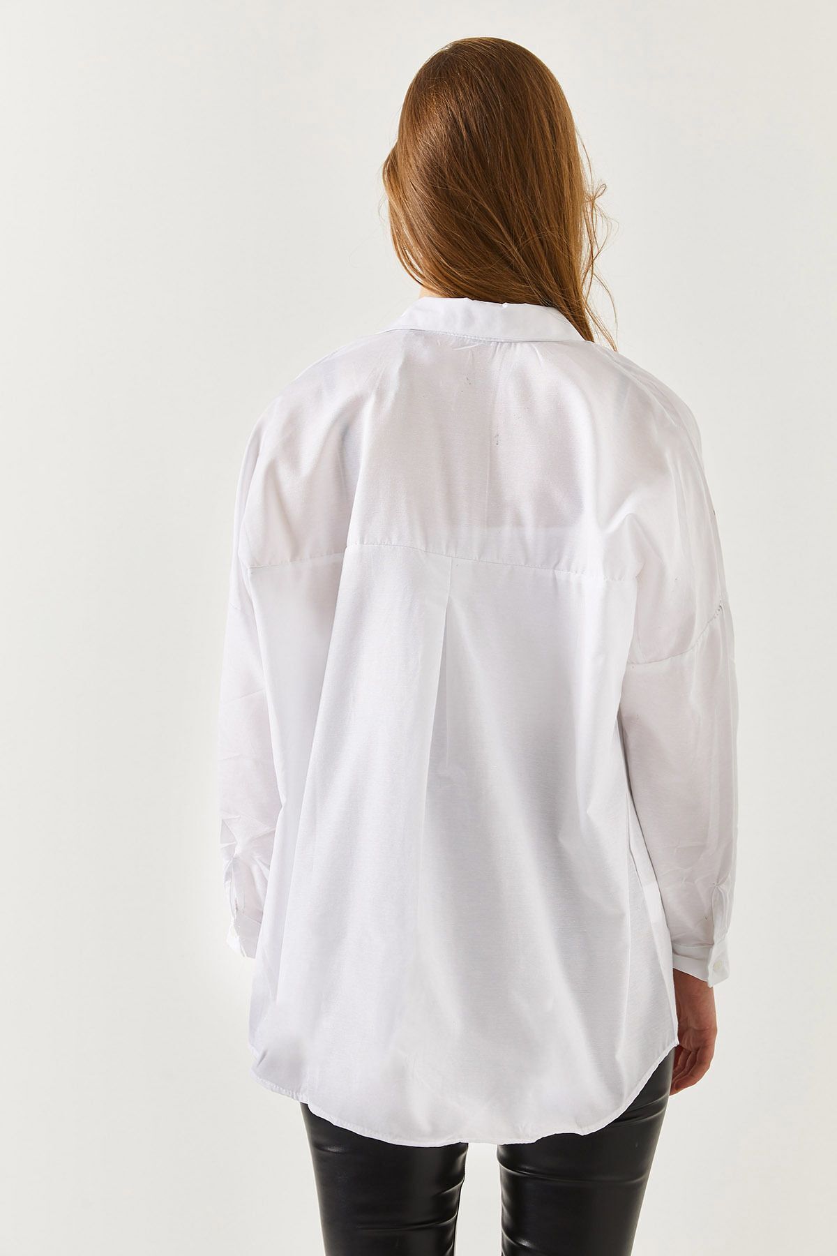 armonika Oversize Long Basic Shirt - White | ByTR