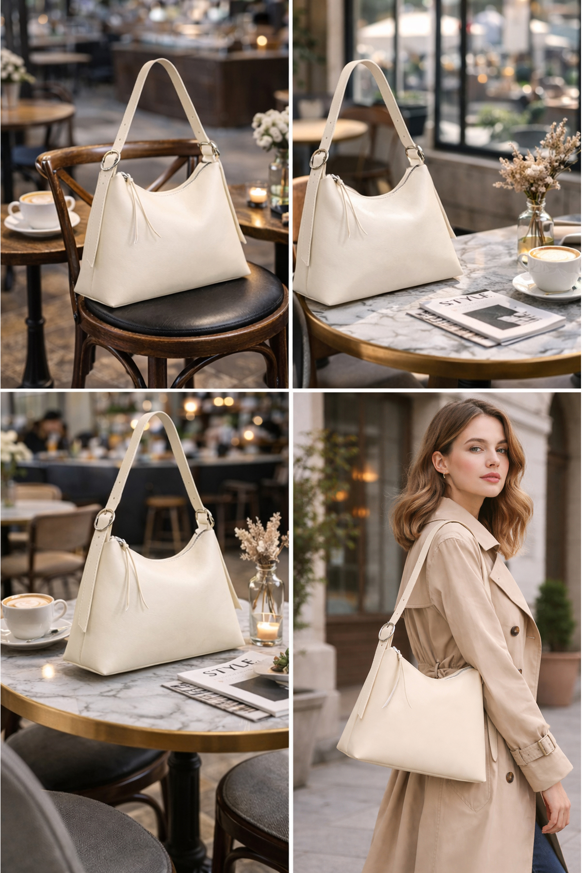 Plain patterned shoulder bag that adapts to every outfit with its simple and stylish design