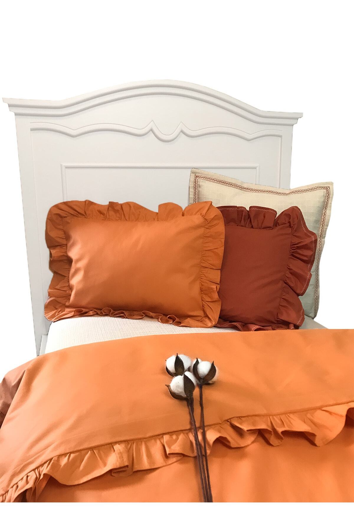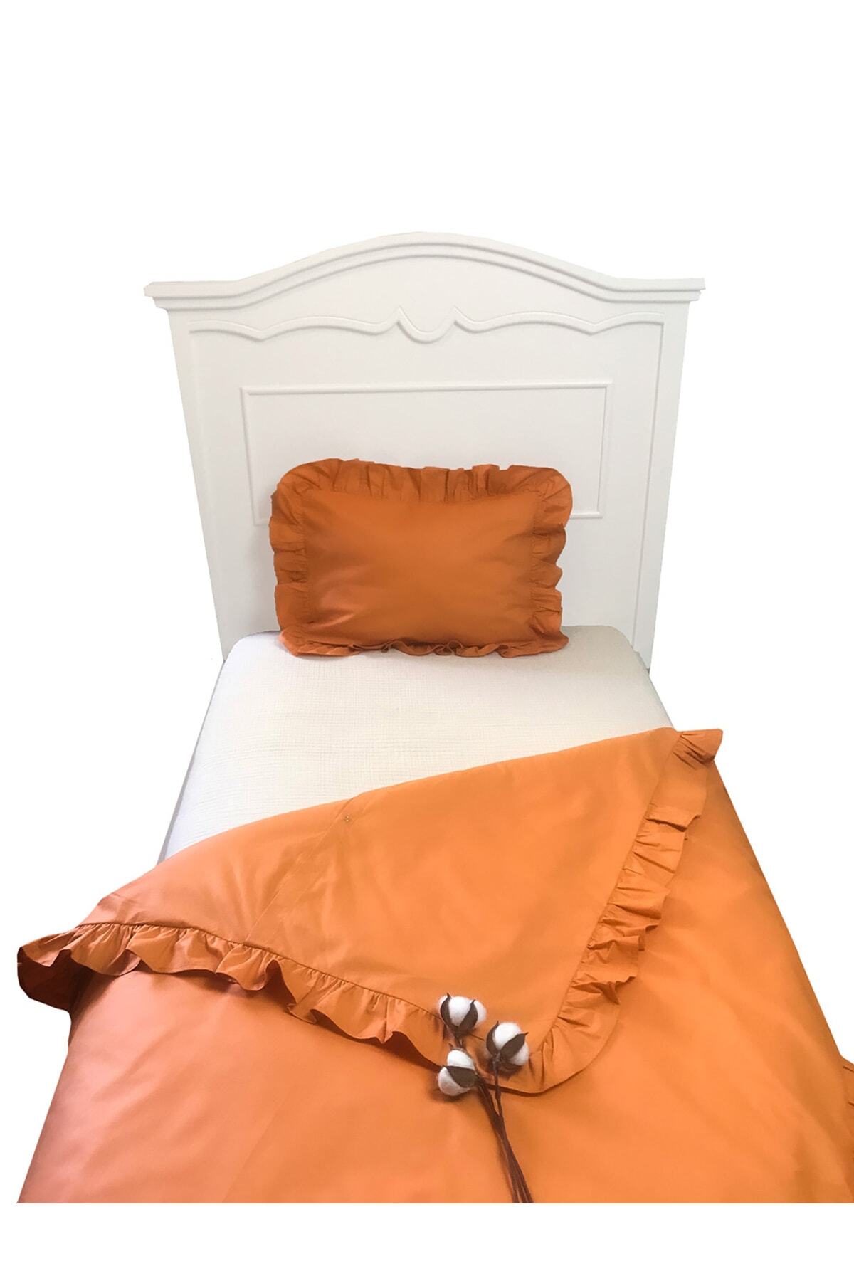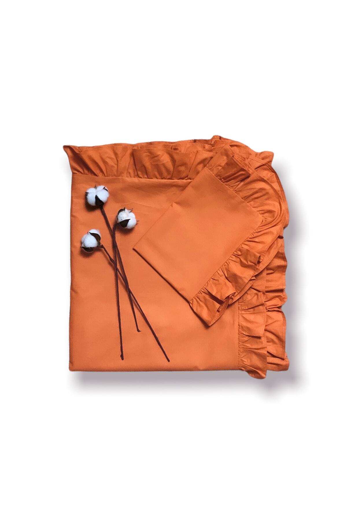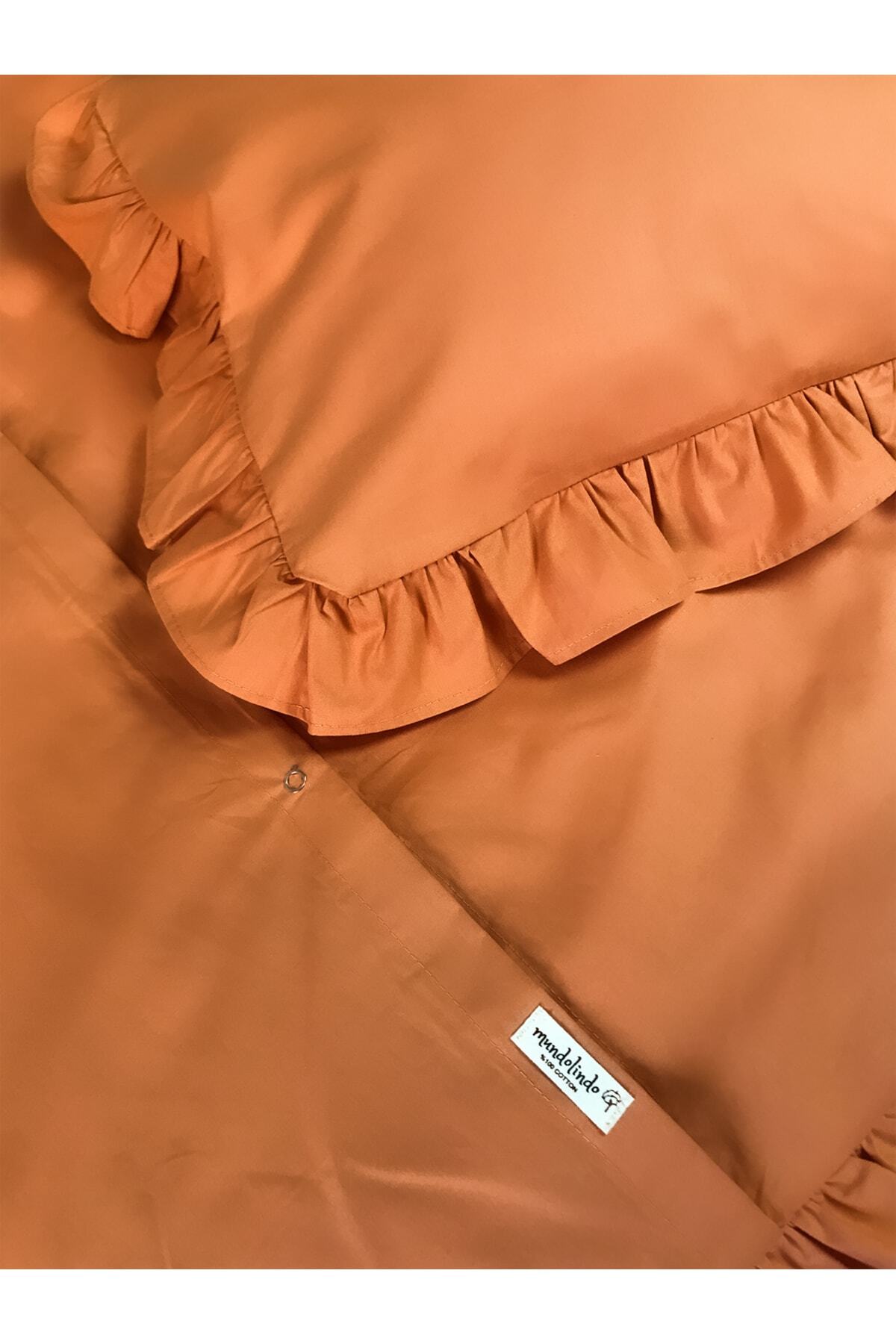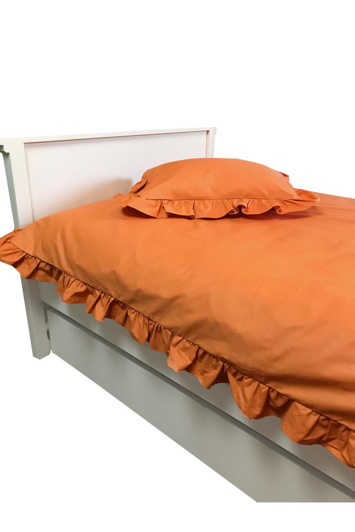 Around the duvet cover and pillowcase, it is produced as a full-round ruffle.
