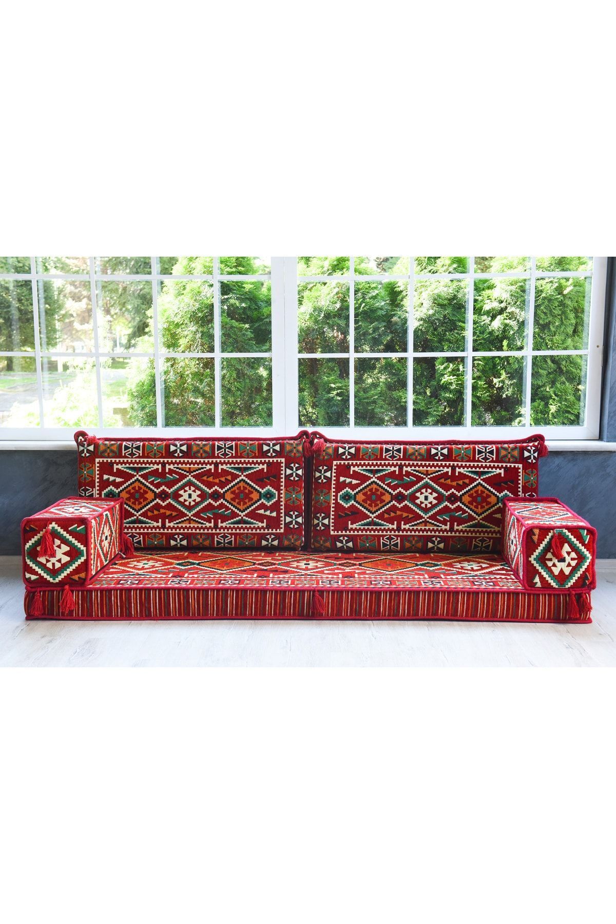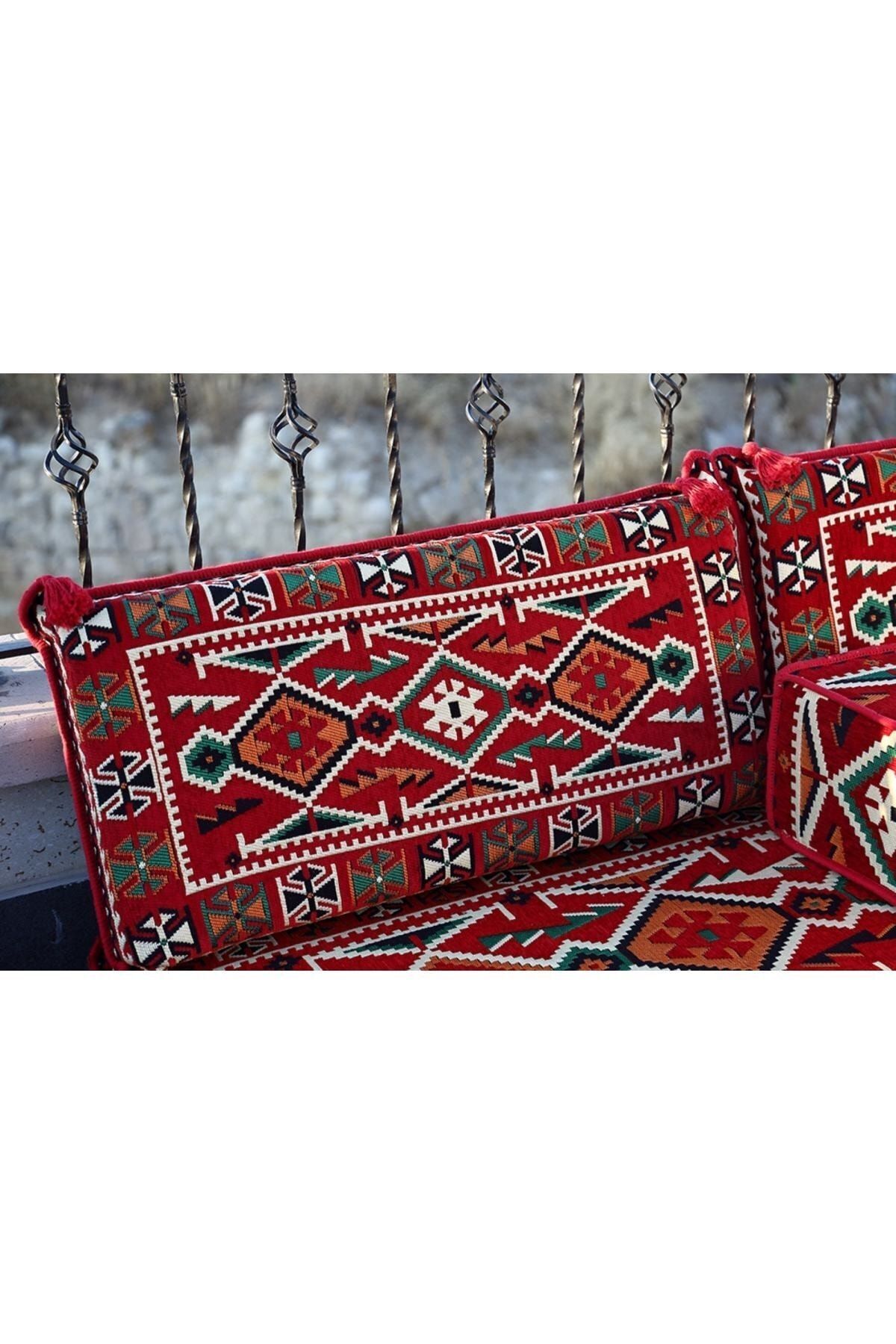 It consists of 5 pieces in total: 1 LONG SITTING CUSHION (70 x 190 x 10 cm), 2 BACK CUSHIONS (42 x 92 x 10 cm) , 2 ARMREST CUSHIONS (22 x 22 x 50 cm). In order to prevent the sponge from collapsing and sticking on the long sitting cushion and armrest cushion, Class 22-23 density sponge was used. 1st Quality 12 cm thick block gray sponge was used for long-term use in the backrest pillow. It is also referred to as Density. Density indicates the quality of the sponge. It refers to the amount of material in one m3 in kg. The PRODUCT IS THE SAME MODEL with back AND front and CAN BE USED AS DOUBLE-SIDED. THANKS TO ITS QUALITY WEAVING, IT DOES NOT DYE THE YARNS. The PRODUCT IS ZIPPERED AND can BE washed IN the WASHING MACHINE AT MAX. 30 DEGREES OR BY HAND. Our clips ARE HYGIENIC, DO NOT CONTAIN BACTERIA and DO not pile. Adds color to your room, hotels, cottage, vineyards, balconies, garden