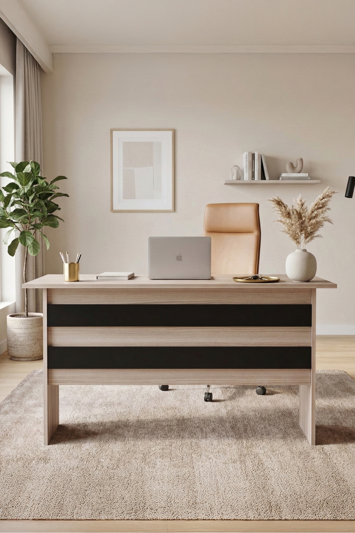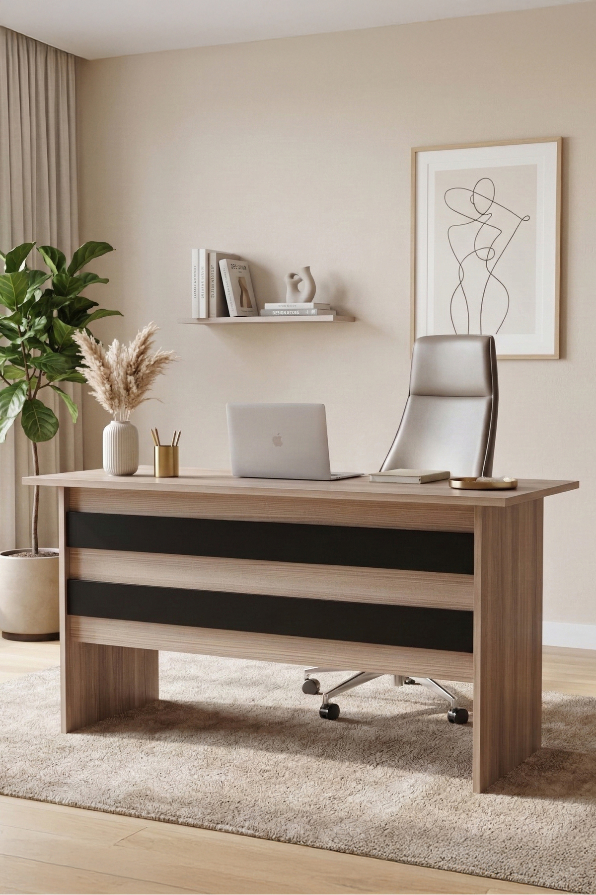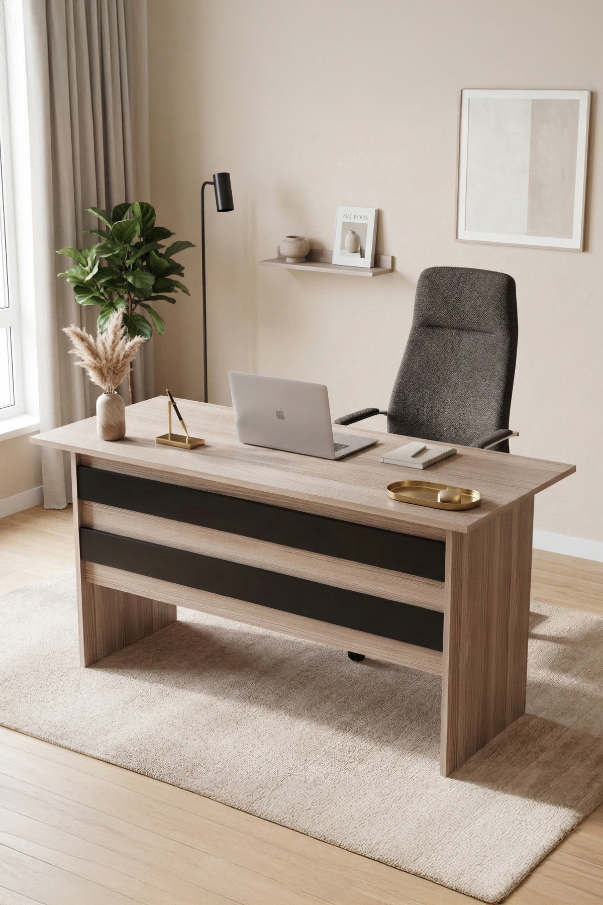 Yurudesign Vario A Office Desk Oak-Black Color : Oak-Black