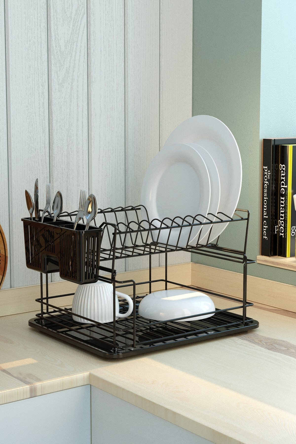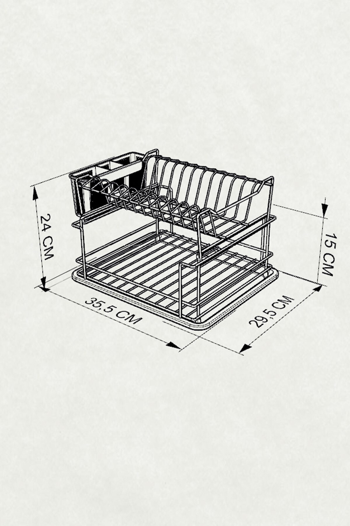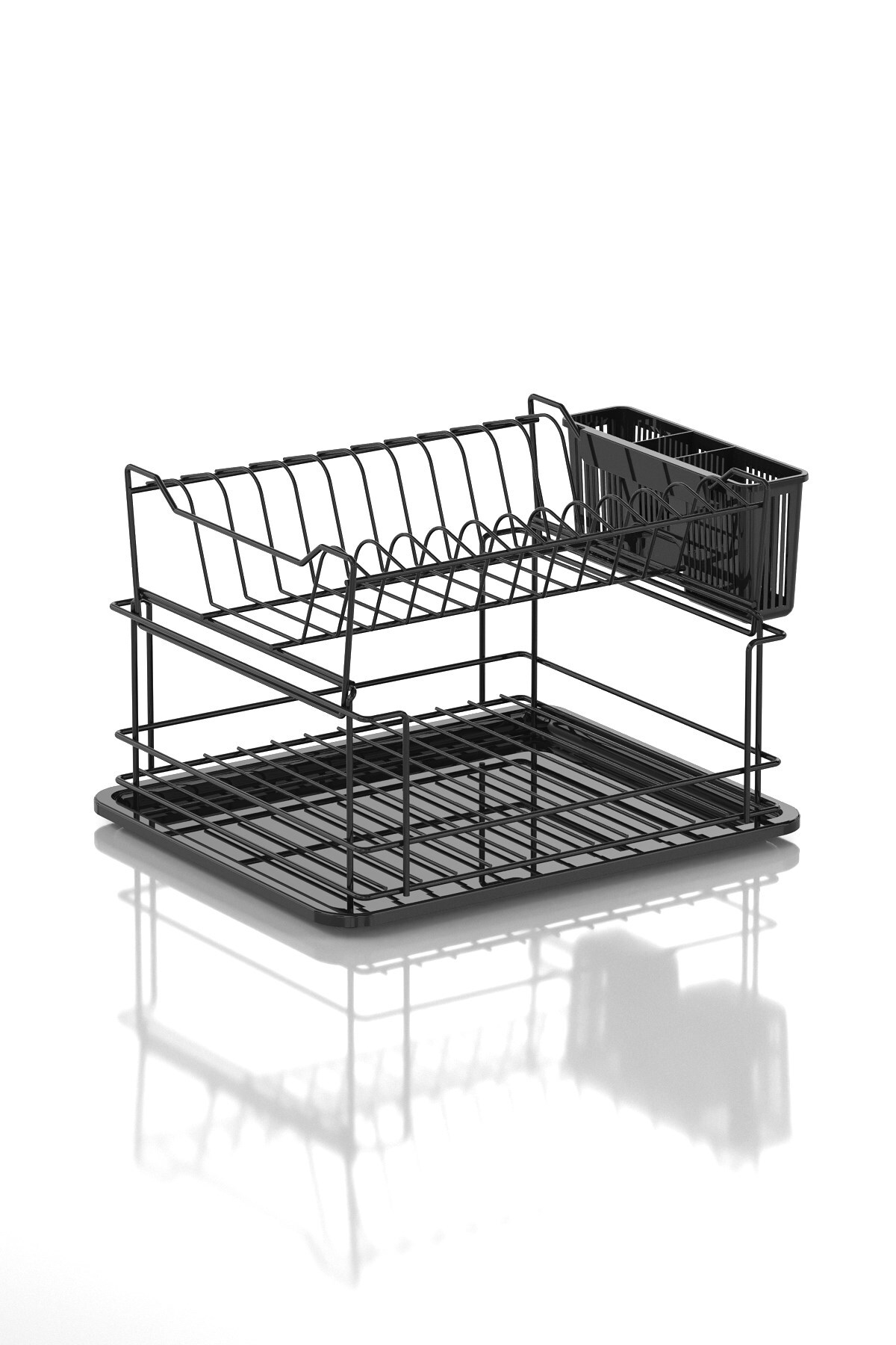 Two Layer Modular Countertop Plate Holder Matte Black KB010 Product Dimensions: 35.5 x 29.5 cm Height: 24 cm Package Content: 1 x 2 Layer Modular Plate Holder 1 x Plastic Tray 1 x Plastic Spoon Holder FREE SHIPPING EXTRA STRONG SPECIAL COATING OPPORTUNITY
