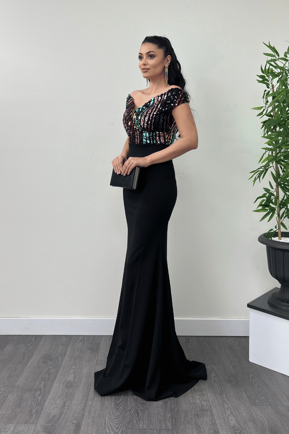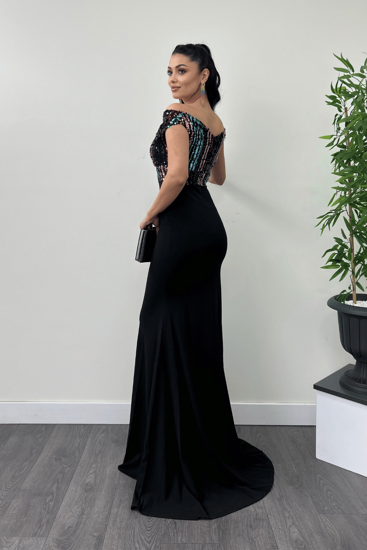 Sequin details add a shimmering touch to the dress while providing an eye-catching shine
