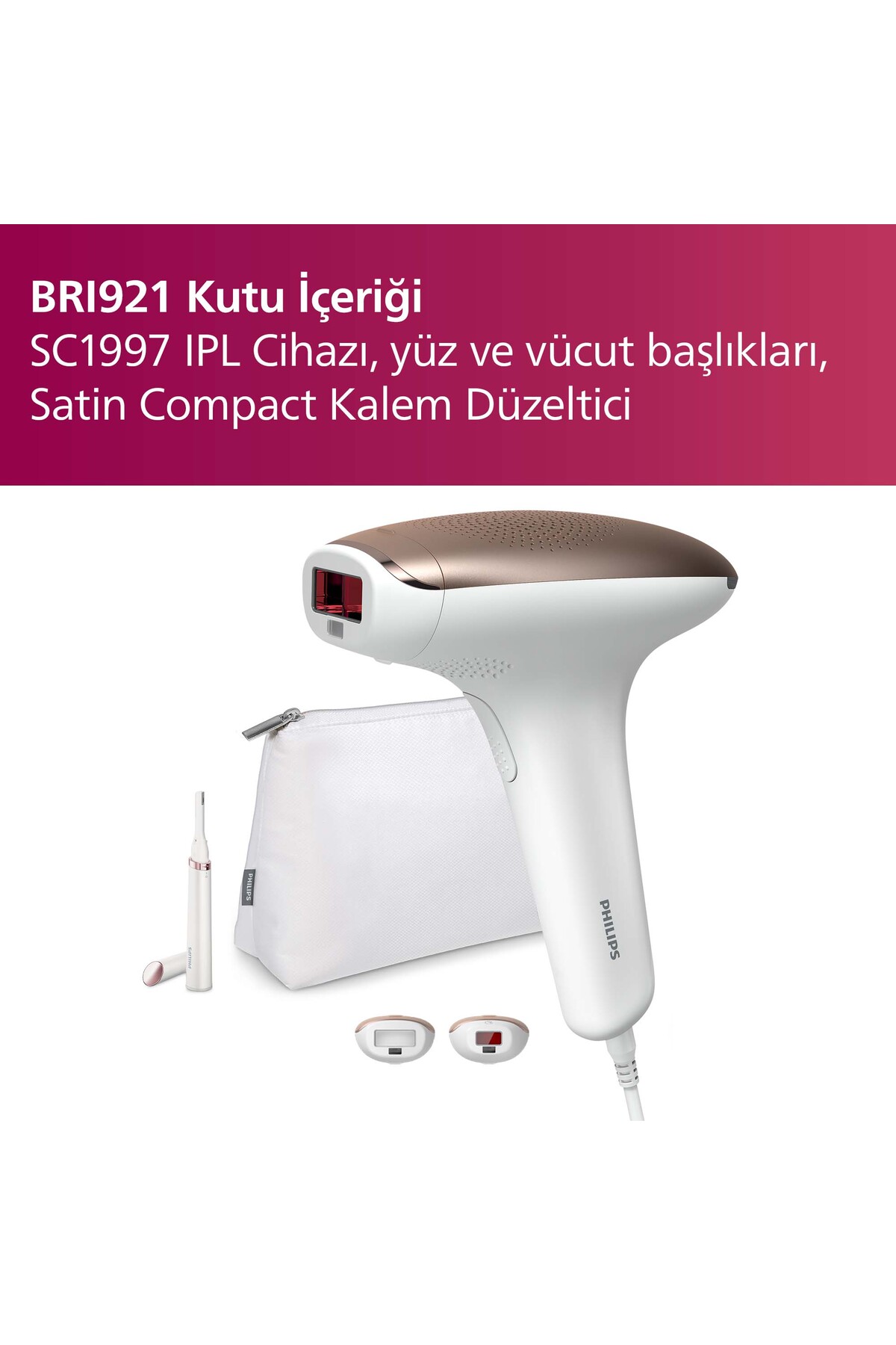 BRI921/00 product consists of SC1997/00 IPL device and Satin Pen Corrector.