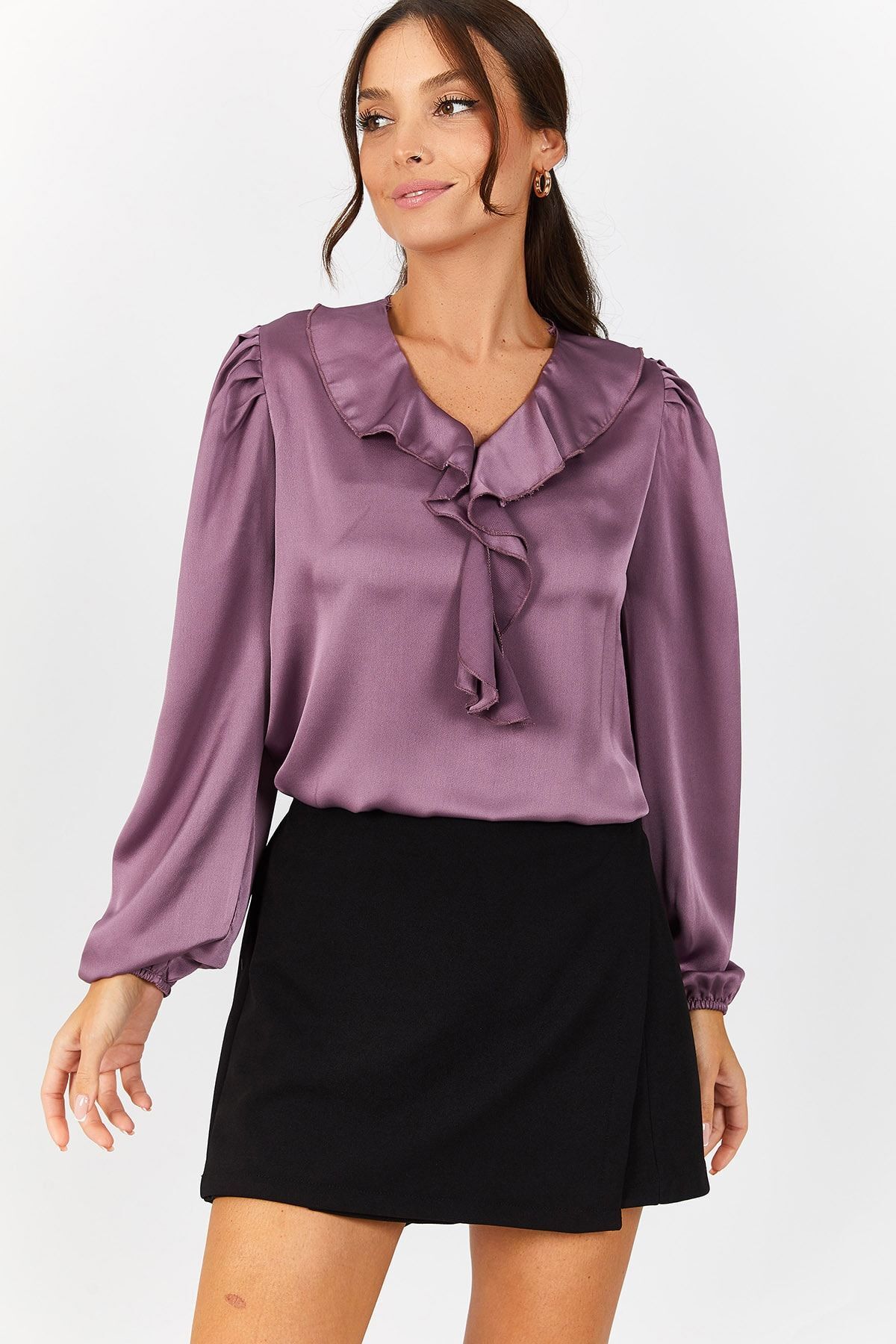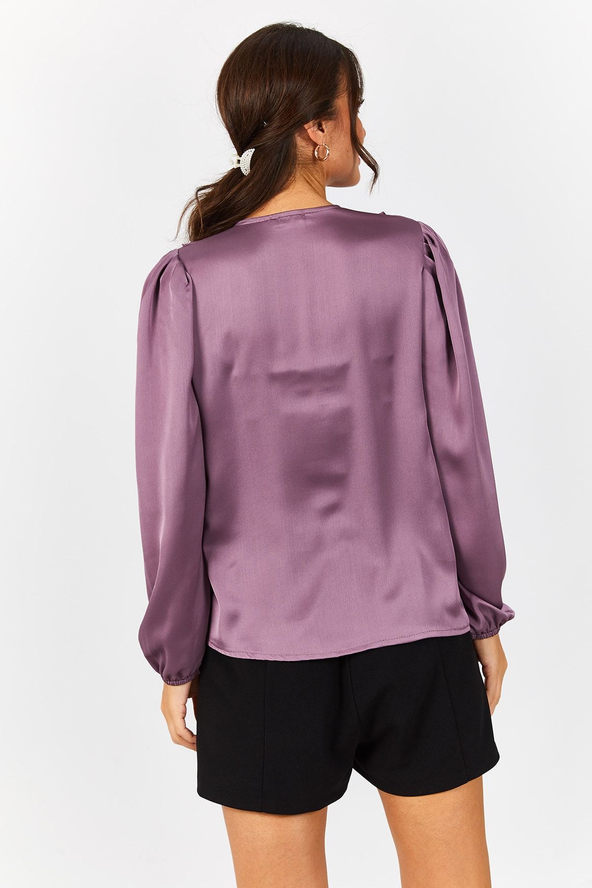 Thanks to its satin texture, it gives both a sophisticated and stylish look, while its long-sleeved structure makes it an ideal choice in seasonal transitions