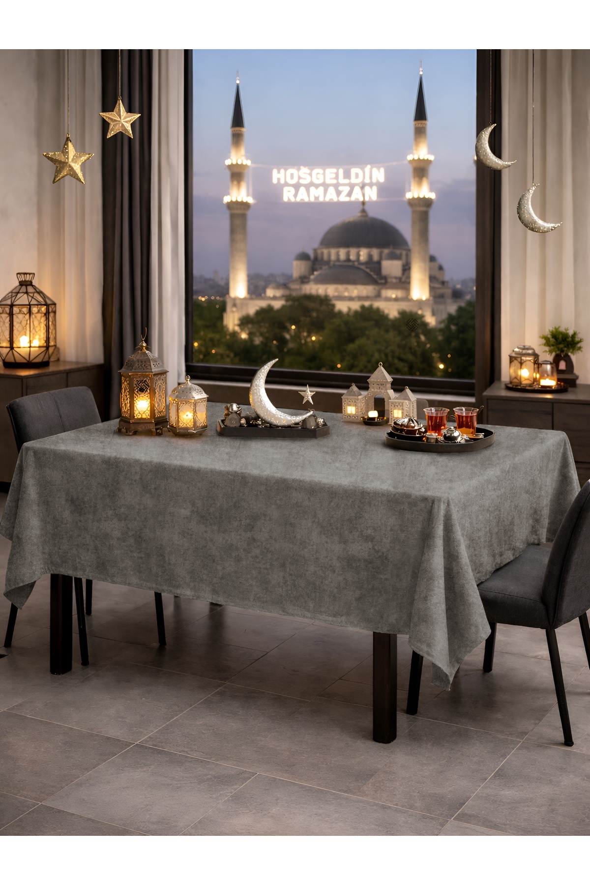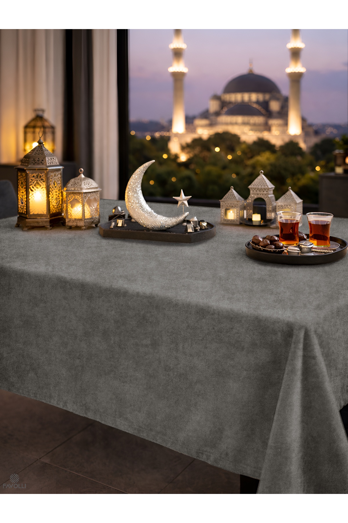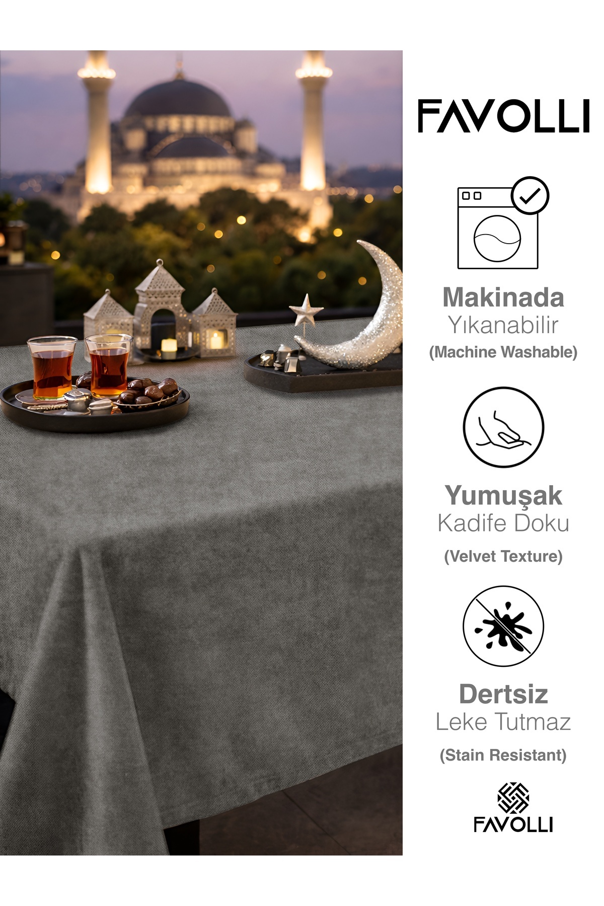 FAVOLLİ Velvet Textured Silver Grey Tablecloth | ByTR