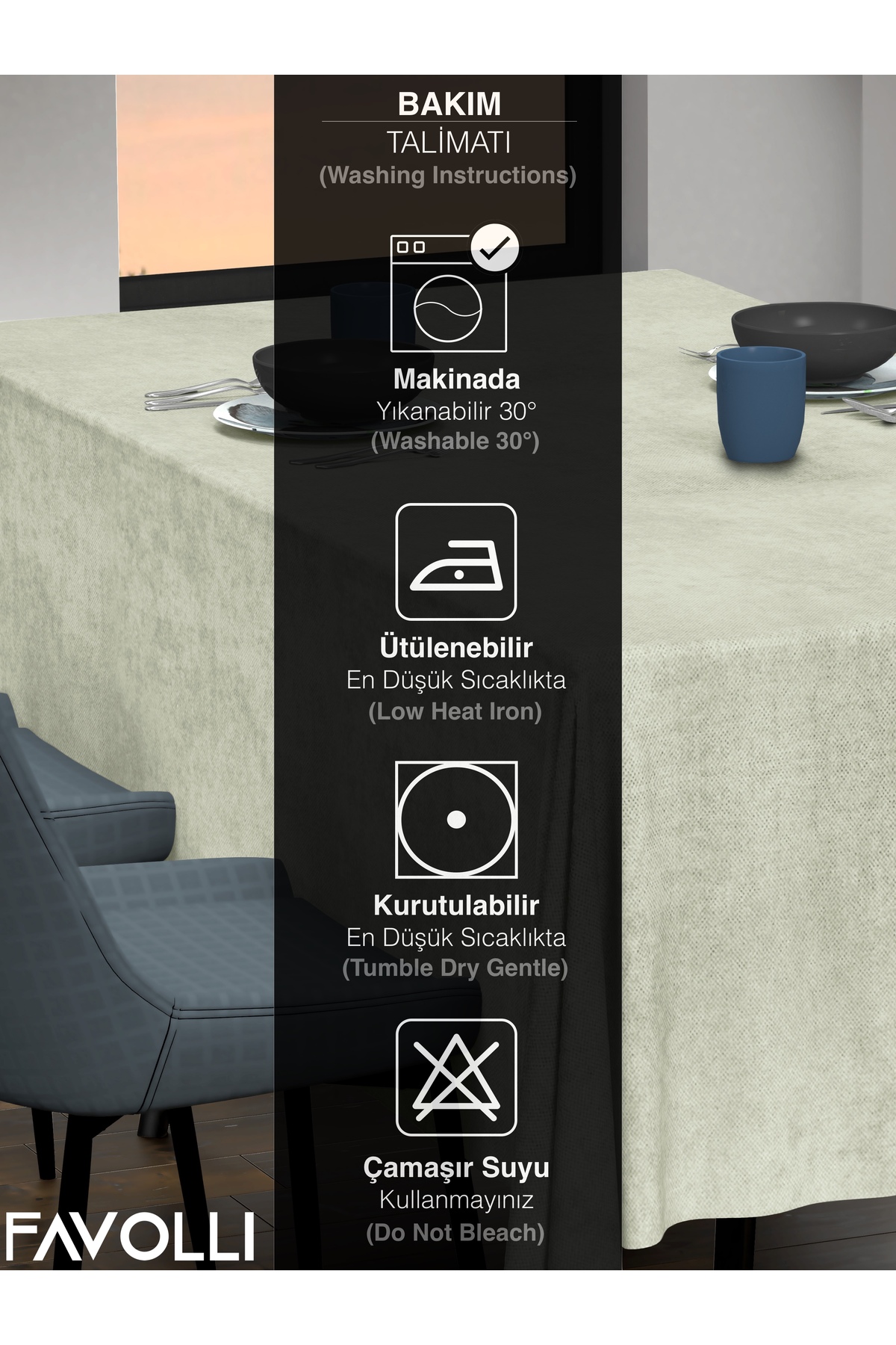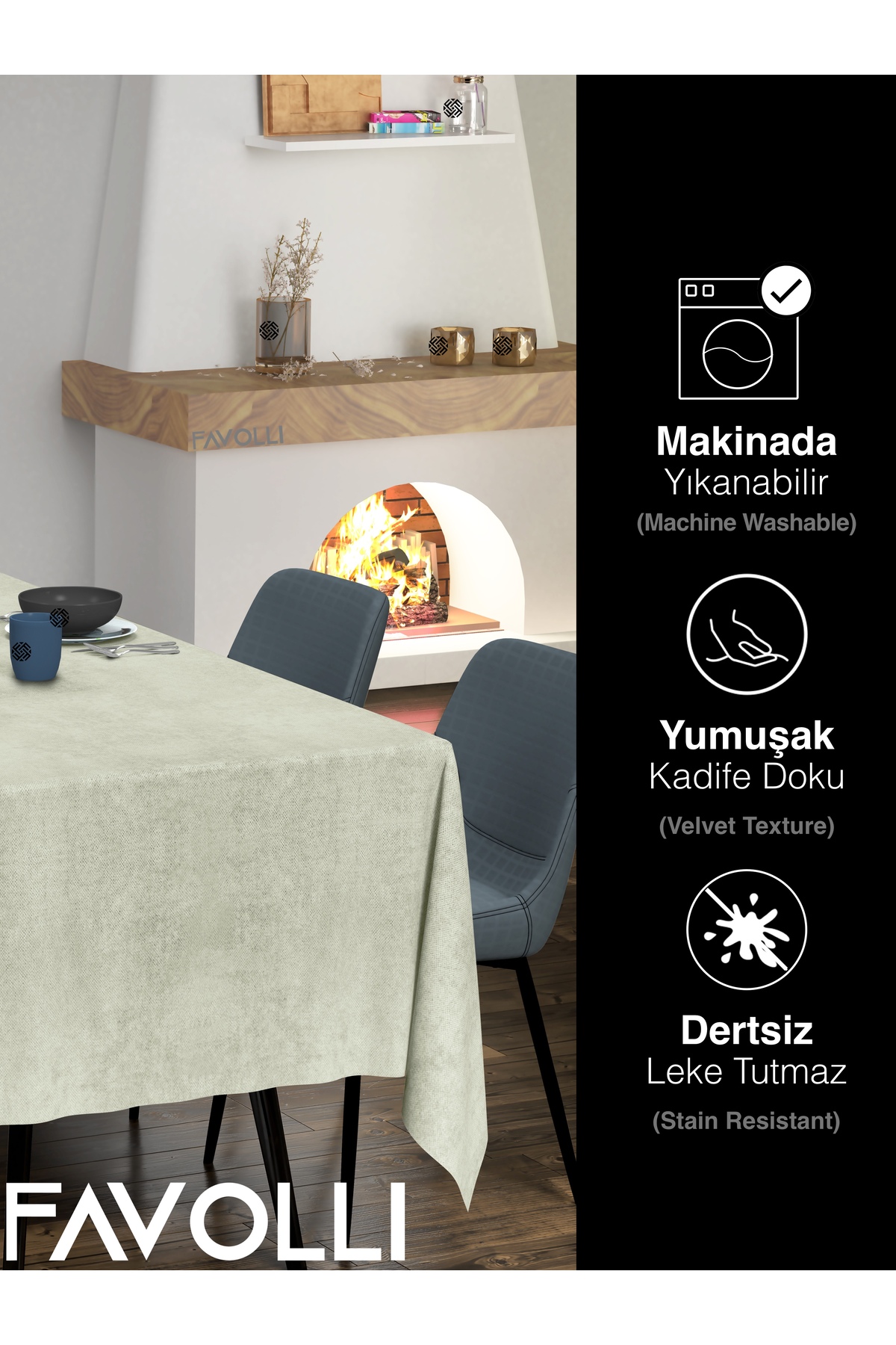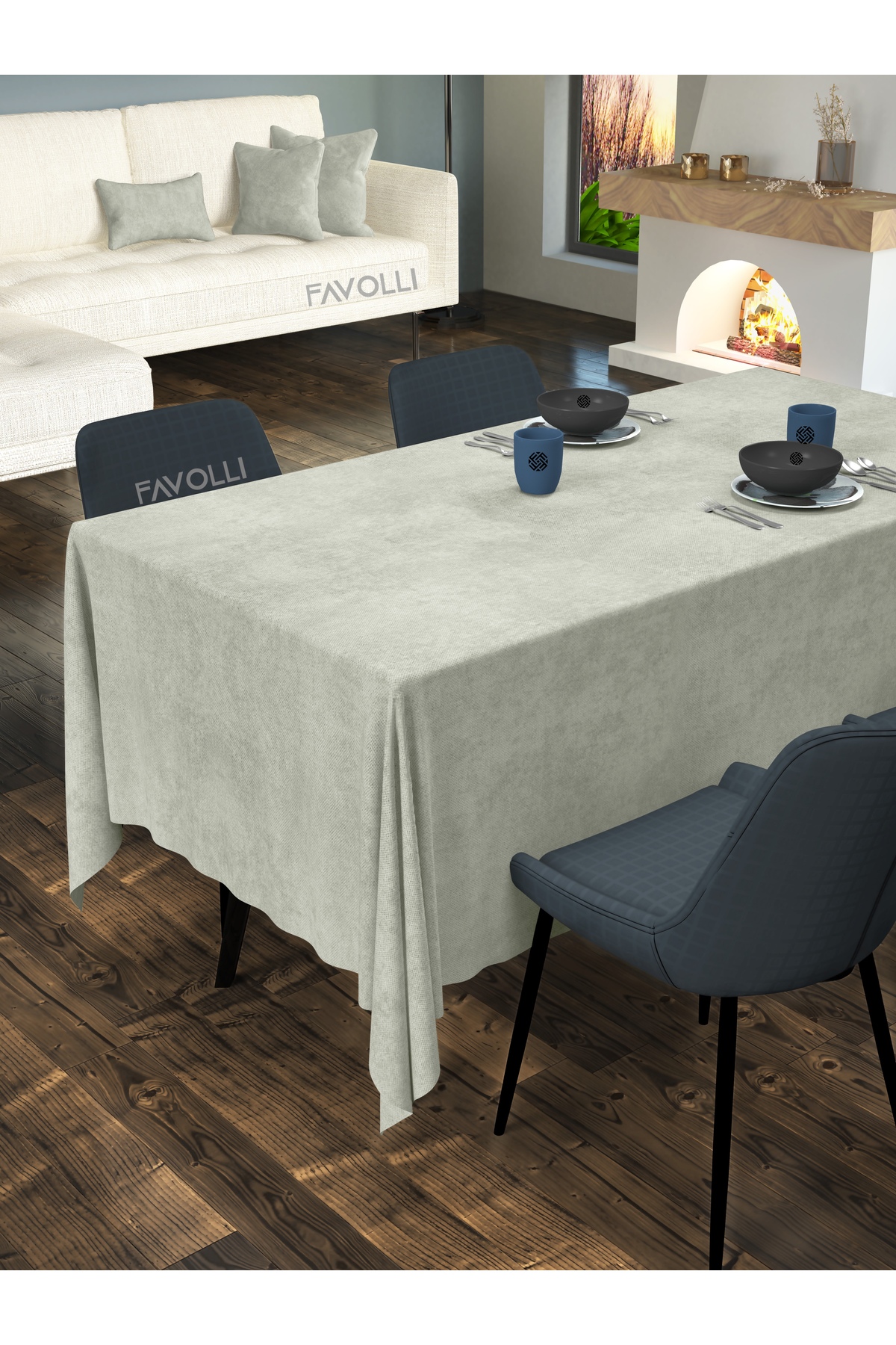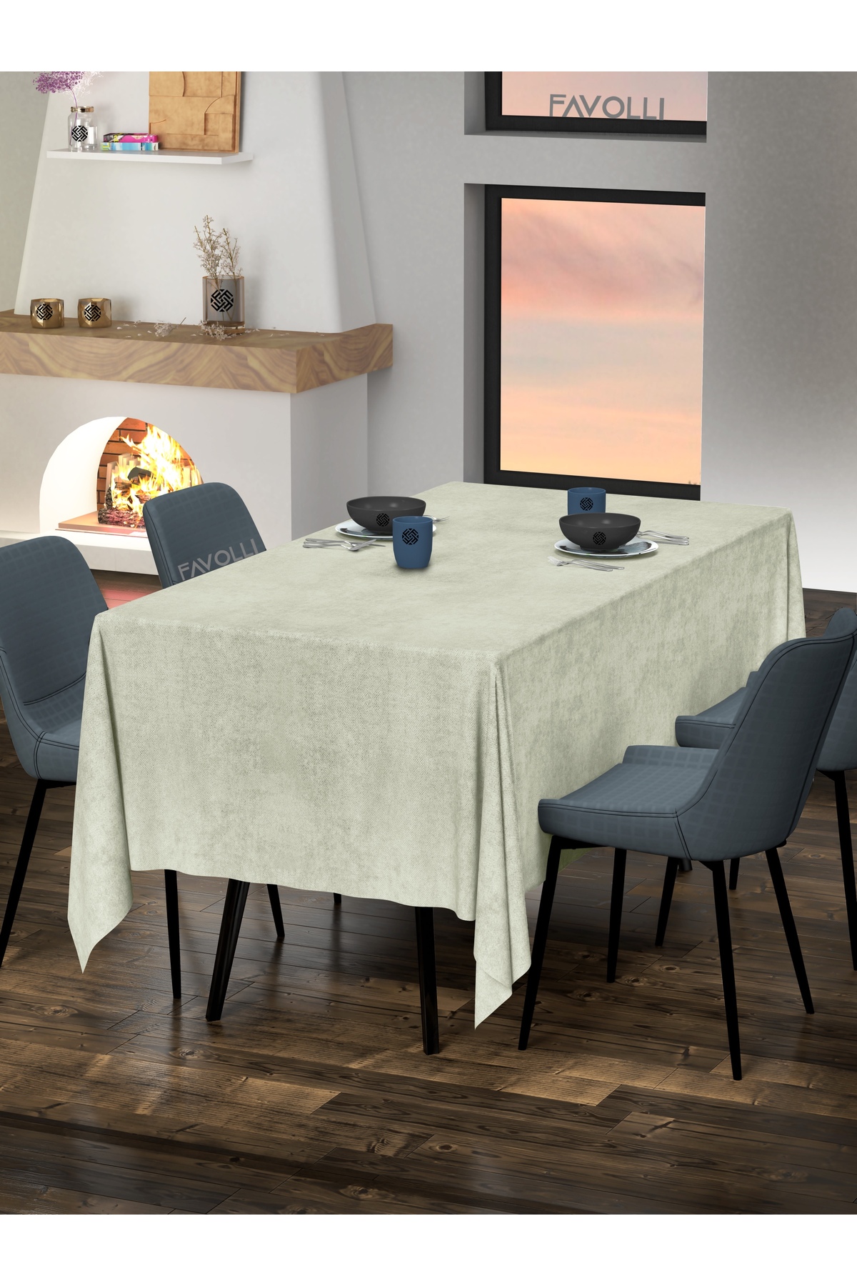FAVOLLİ Velvet Textured Stone Color Tablecloth | ByTR