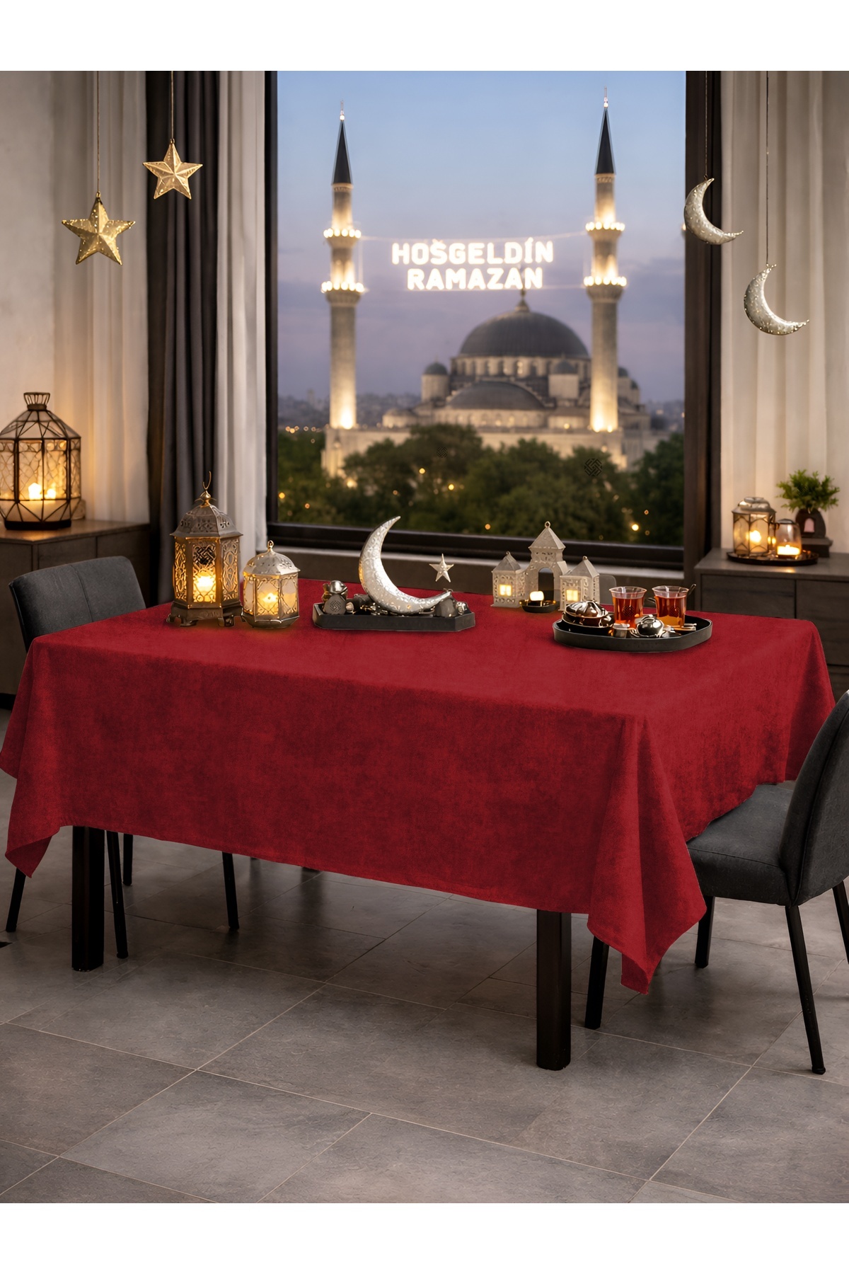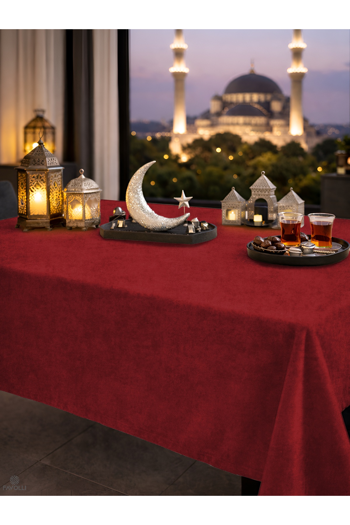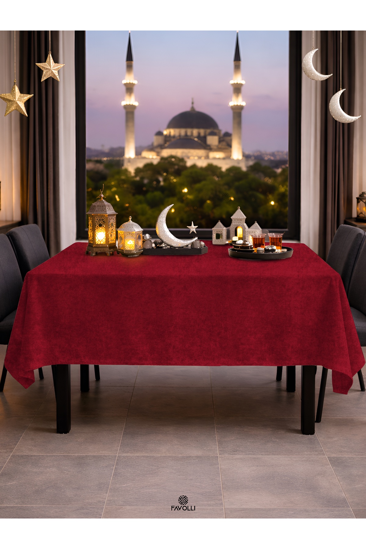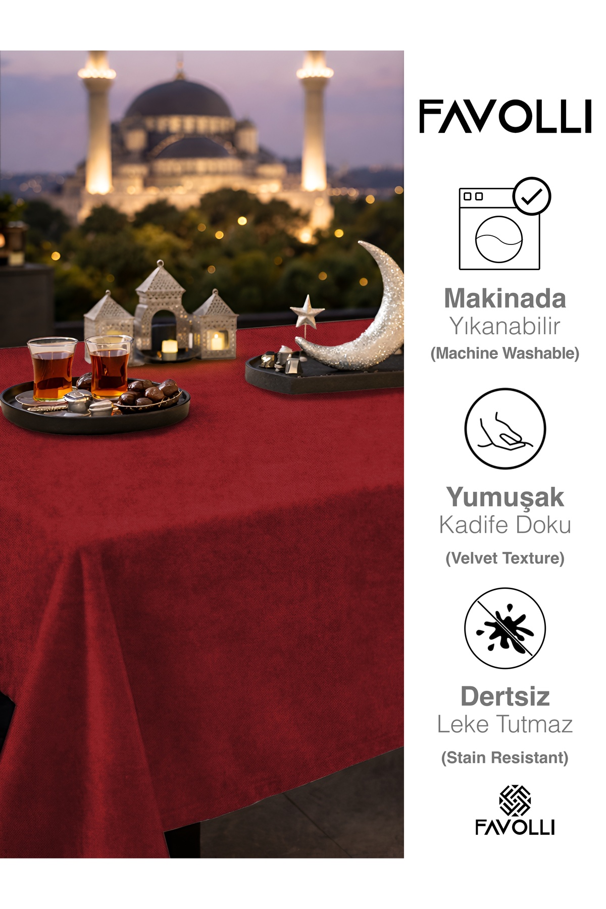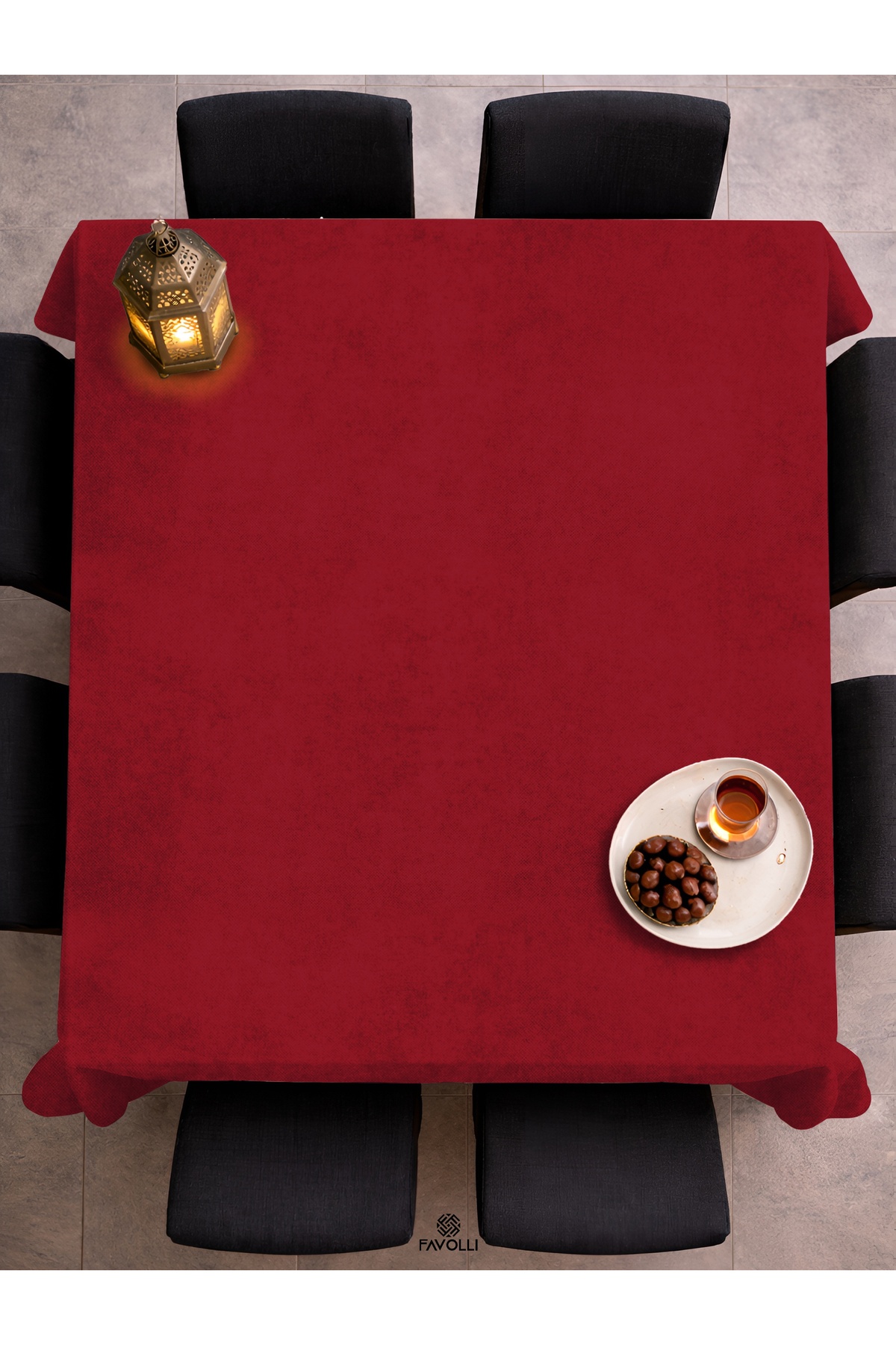 FAVOLLİ Velvet Textured Red Color Tablecloth | ByTR