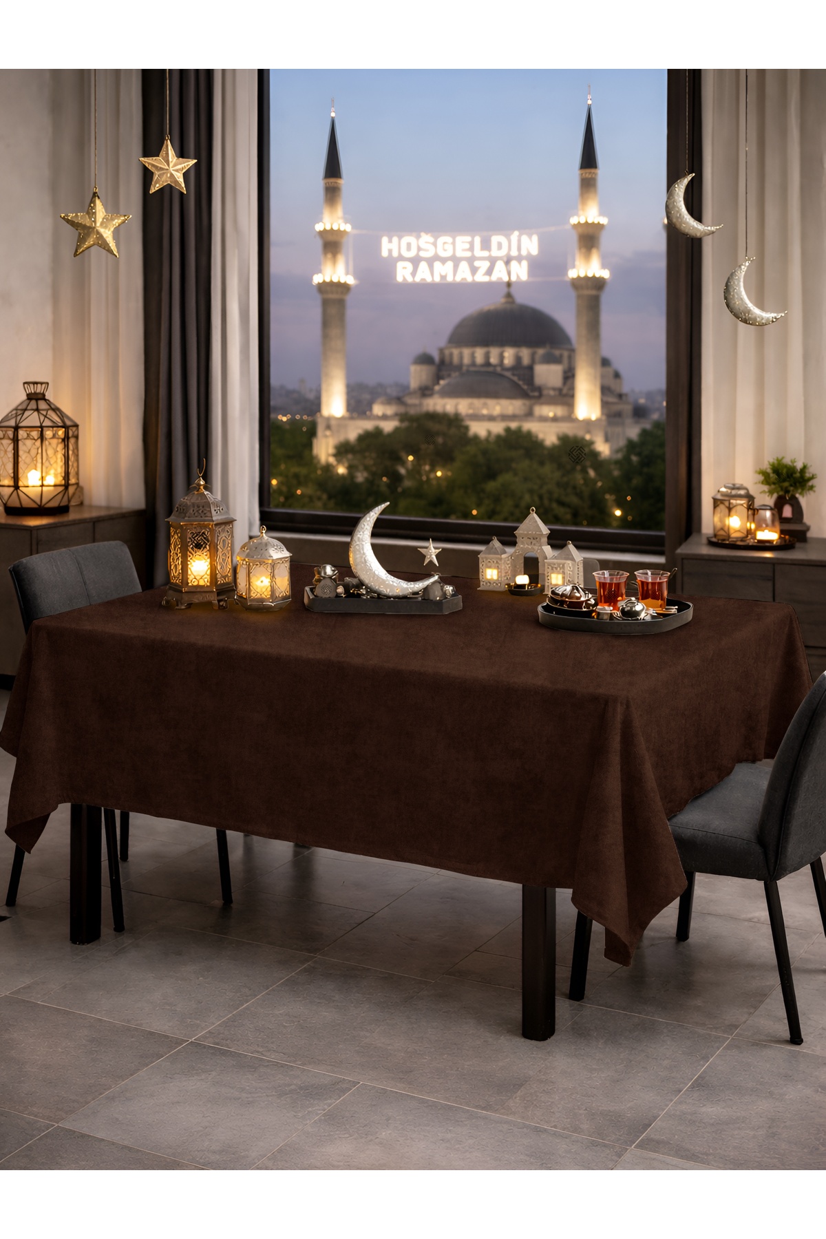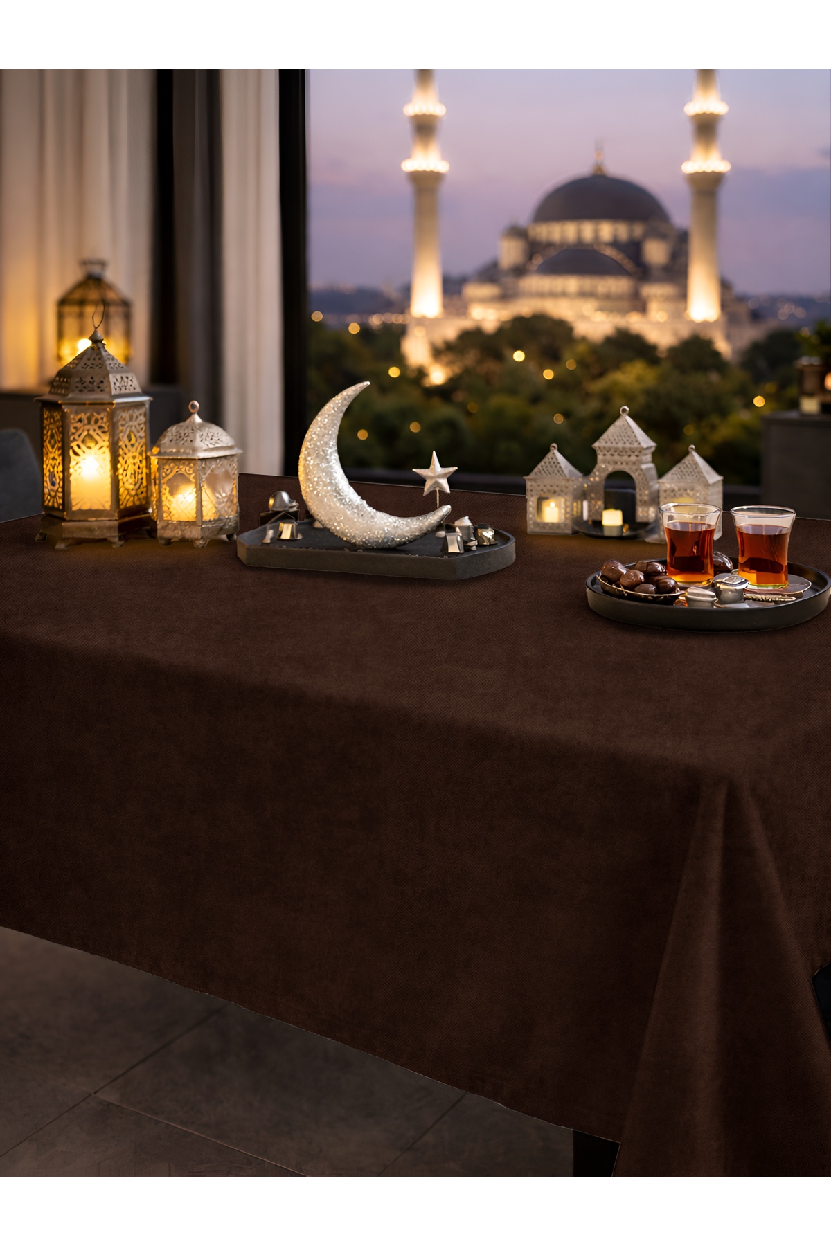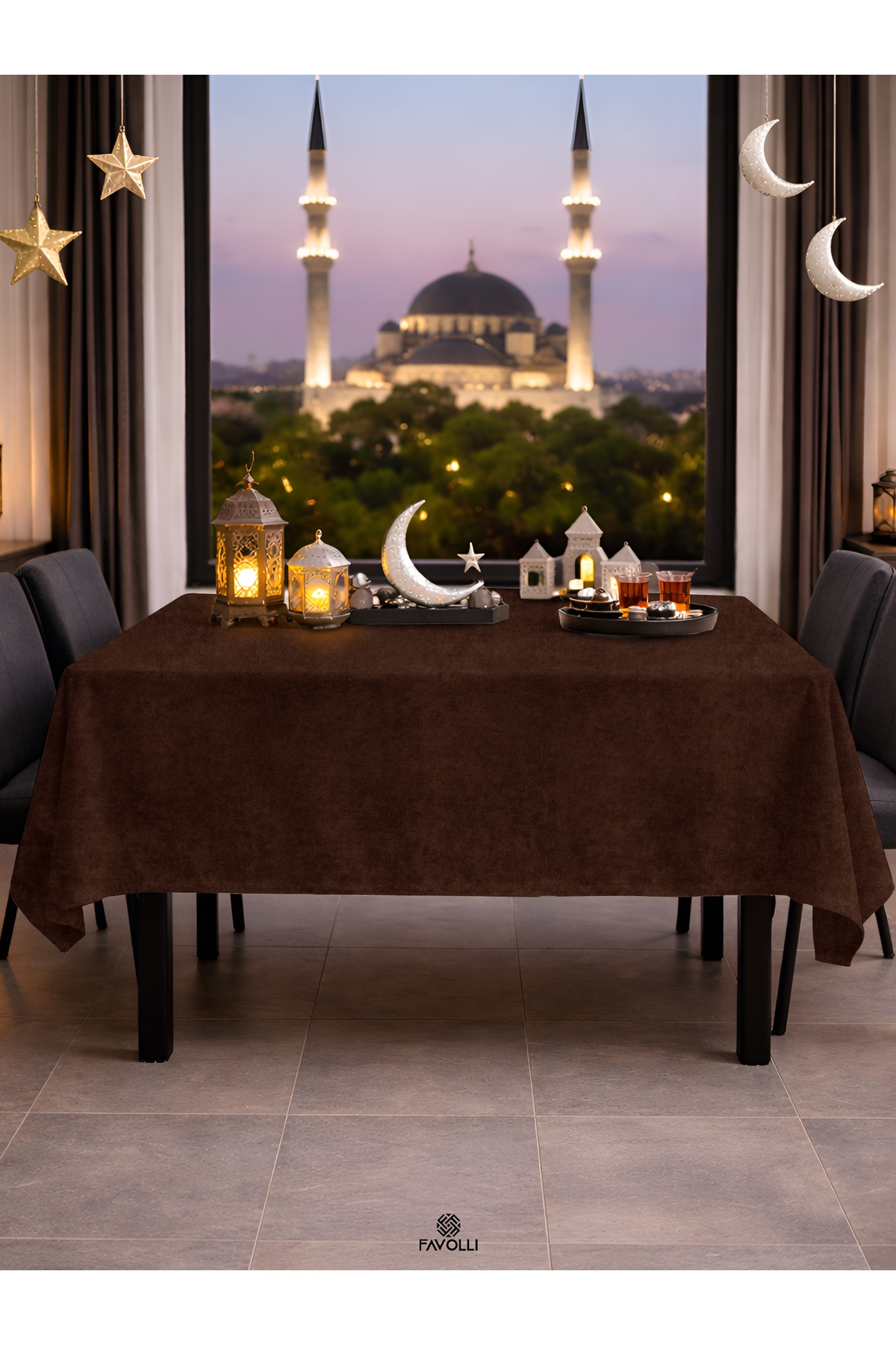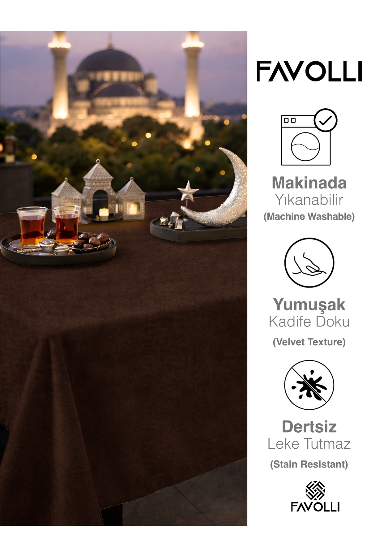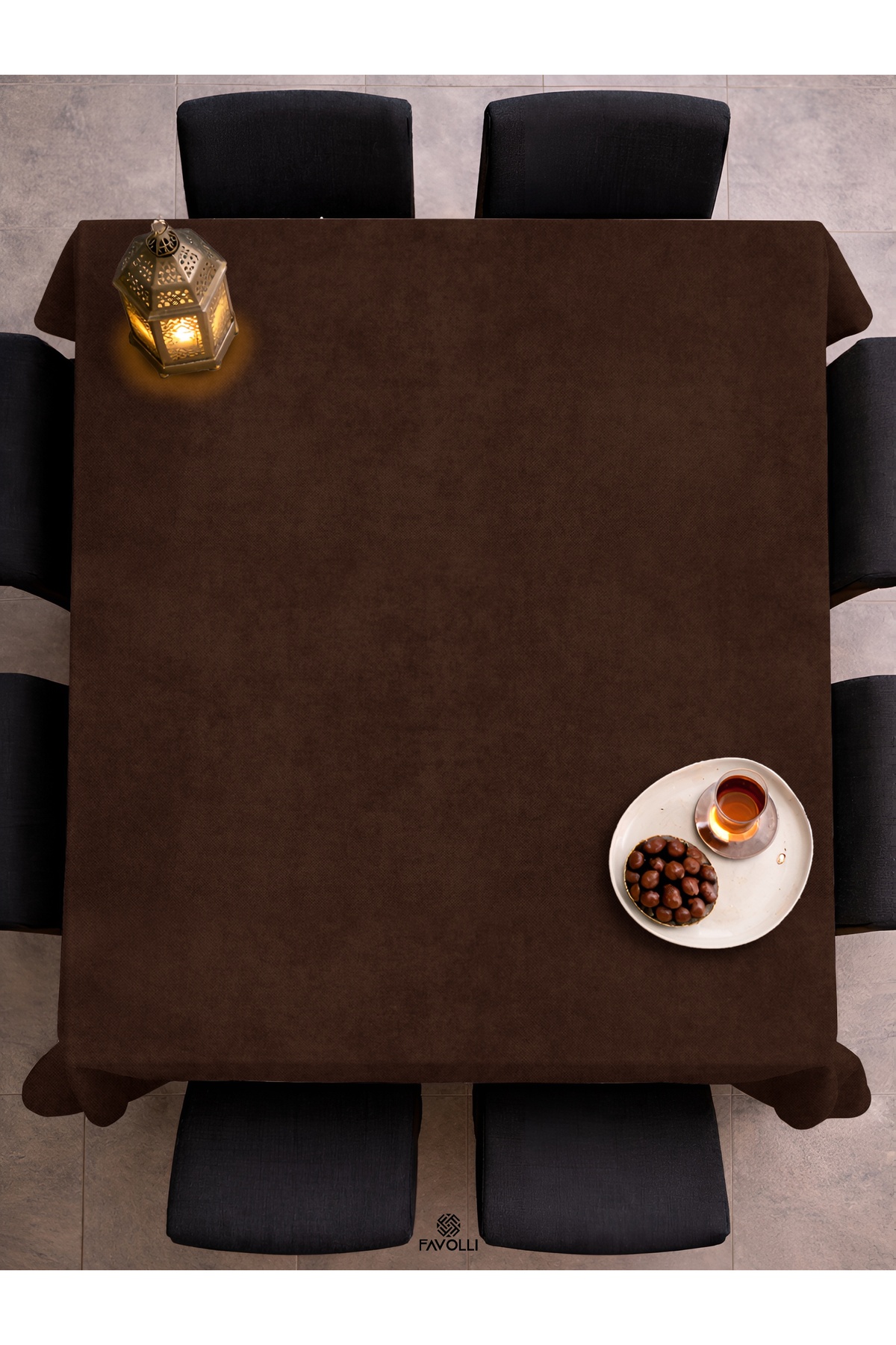 FAVOLLİ Velvet Textured Brown Tablecloth | ByTR