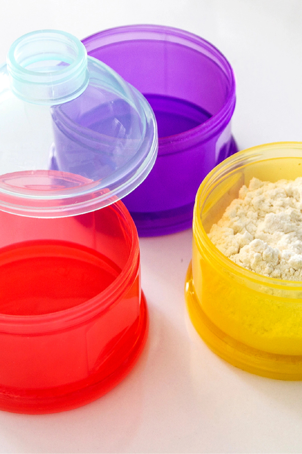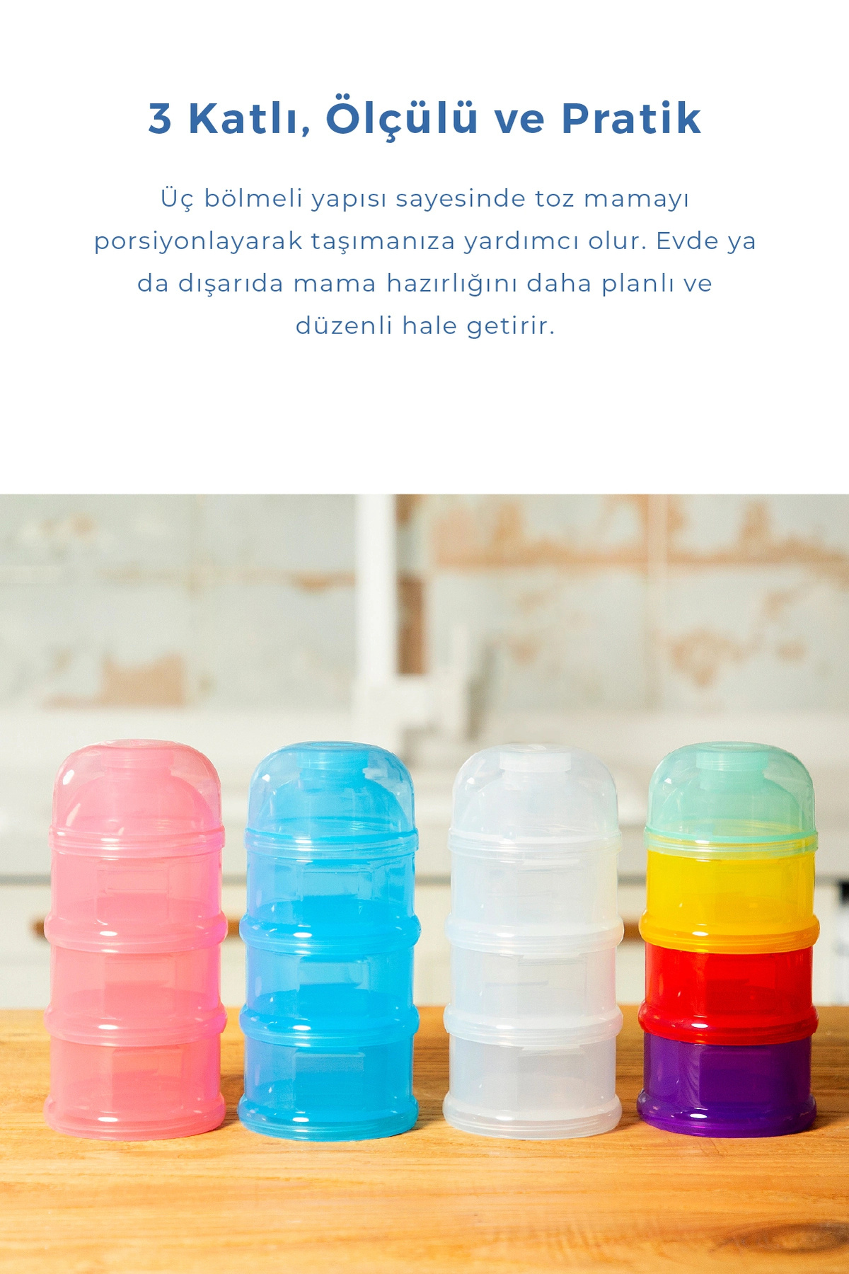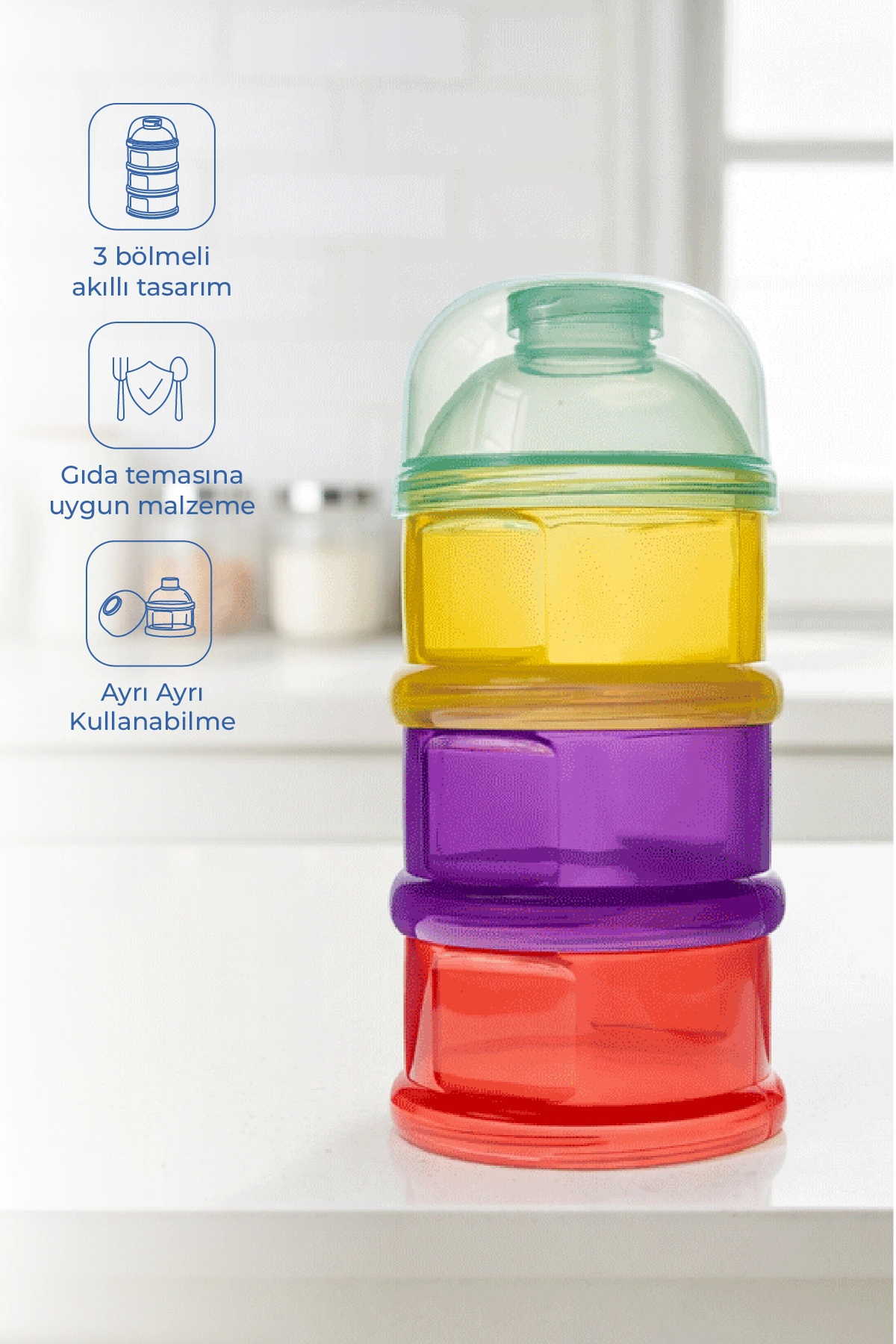 Babyjem Layered Powder Food Container It consists of 3 colored compartments.