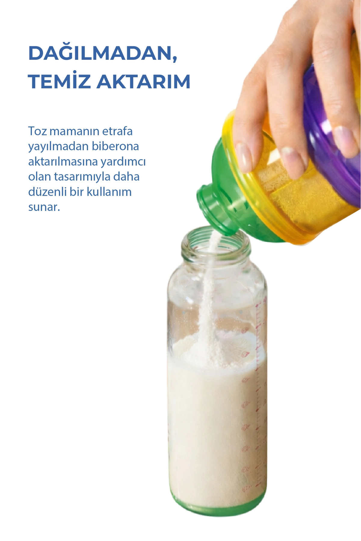 The powdered food inside can be easily transferred to the bottle