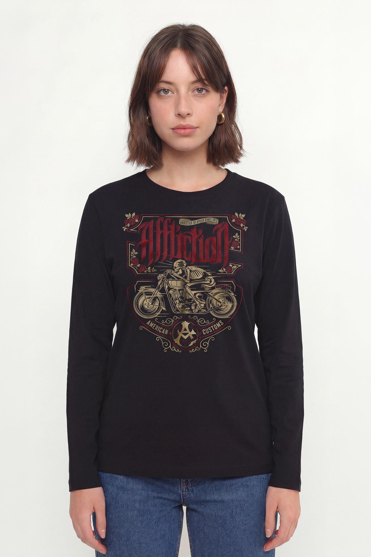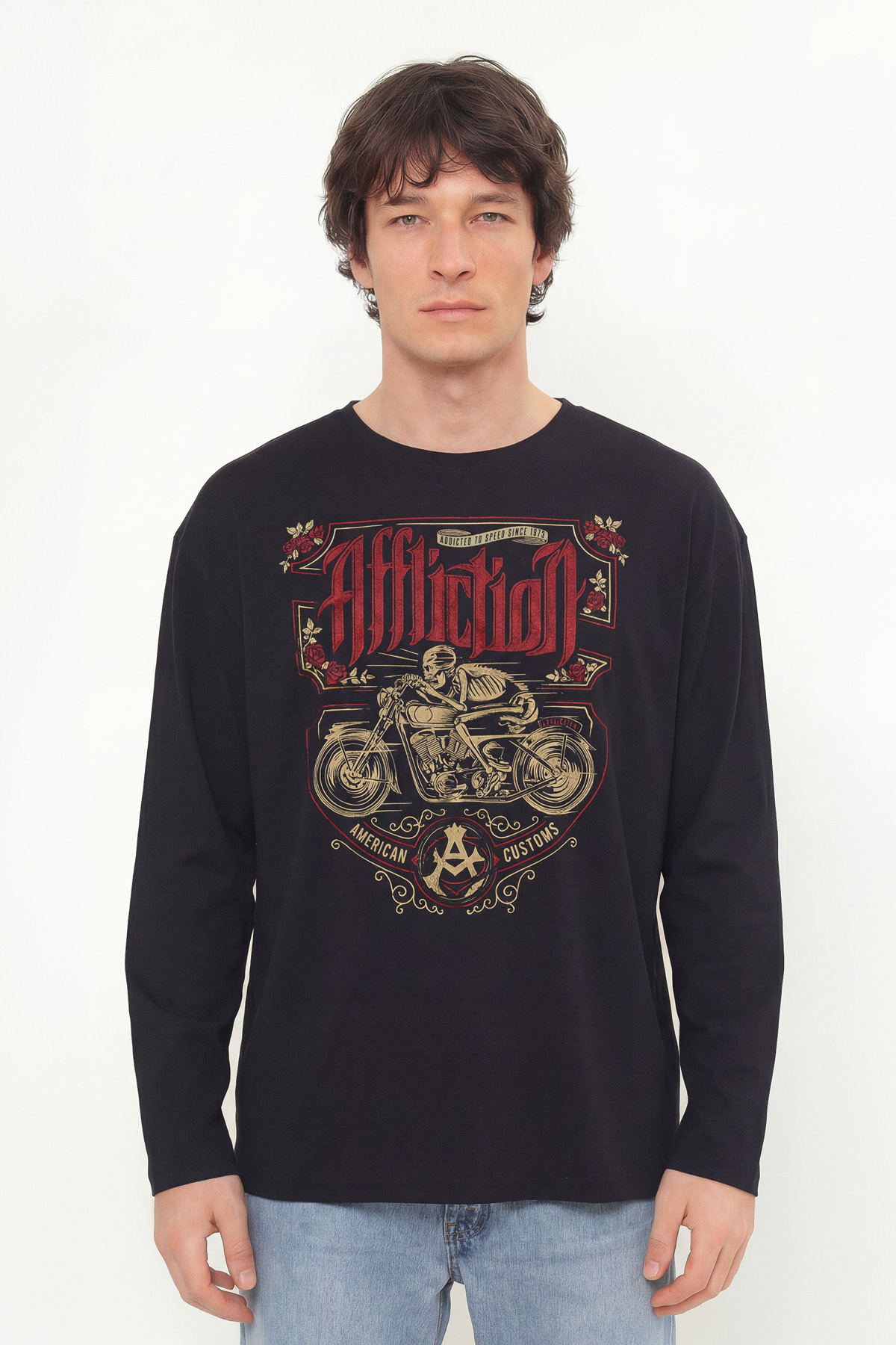 Kendim Seçtim Death Rider Affliction Death Rider Motorcycle Black Long Sleeve T-Shirt | ByTR