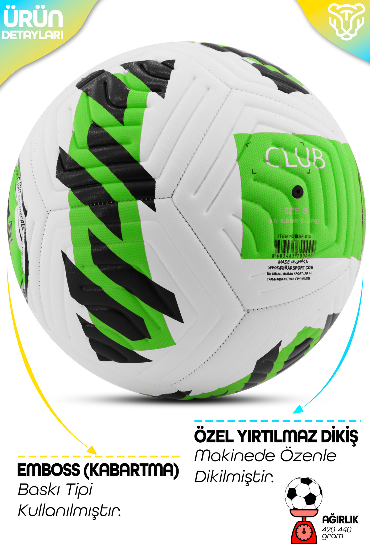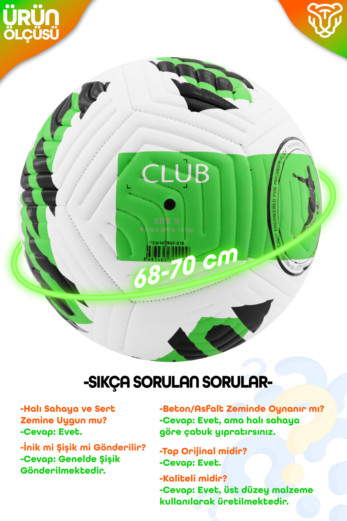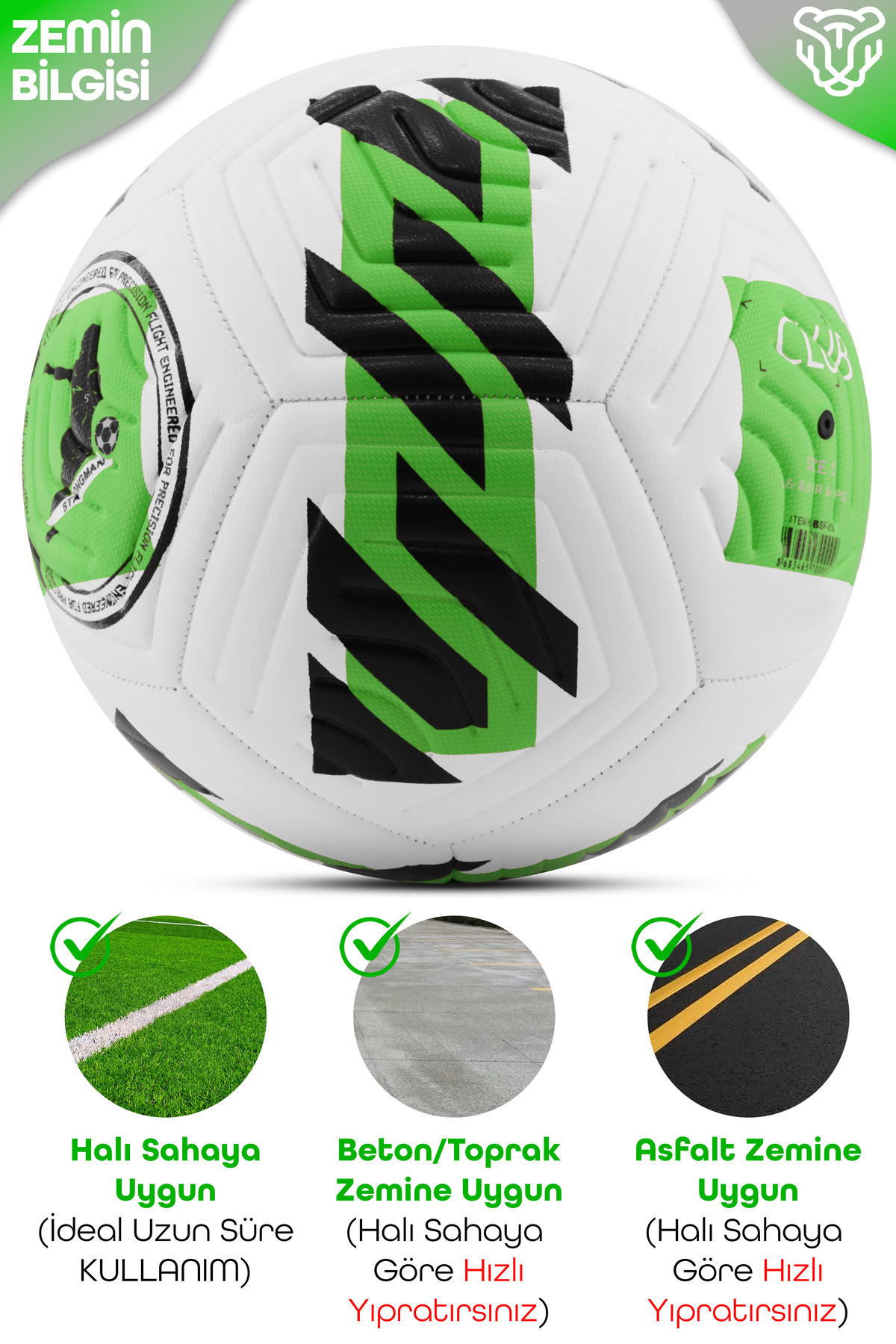 Telvesse Original Soccer Ball Pump Gift Hard Floor Carpet Field Soccer Ball Hybrid Green No:5 | ByTR