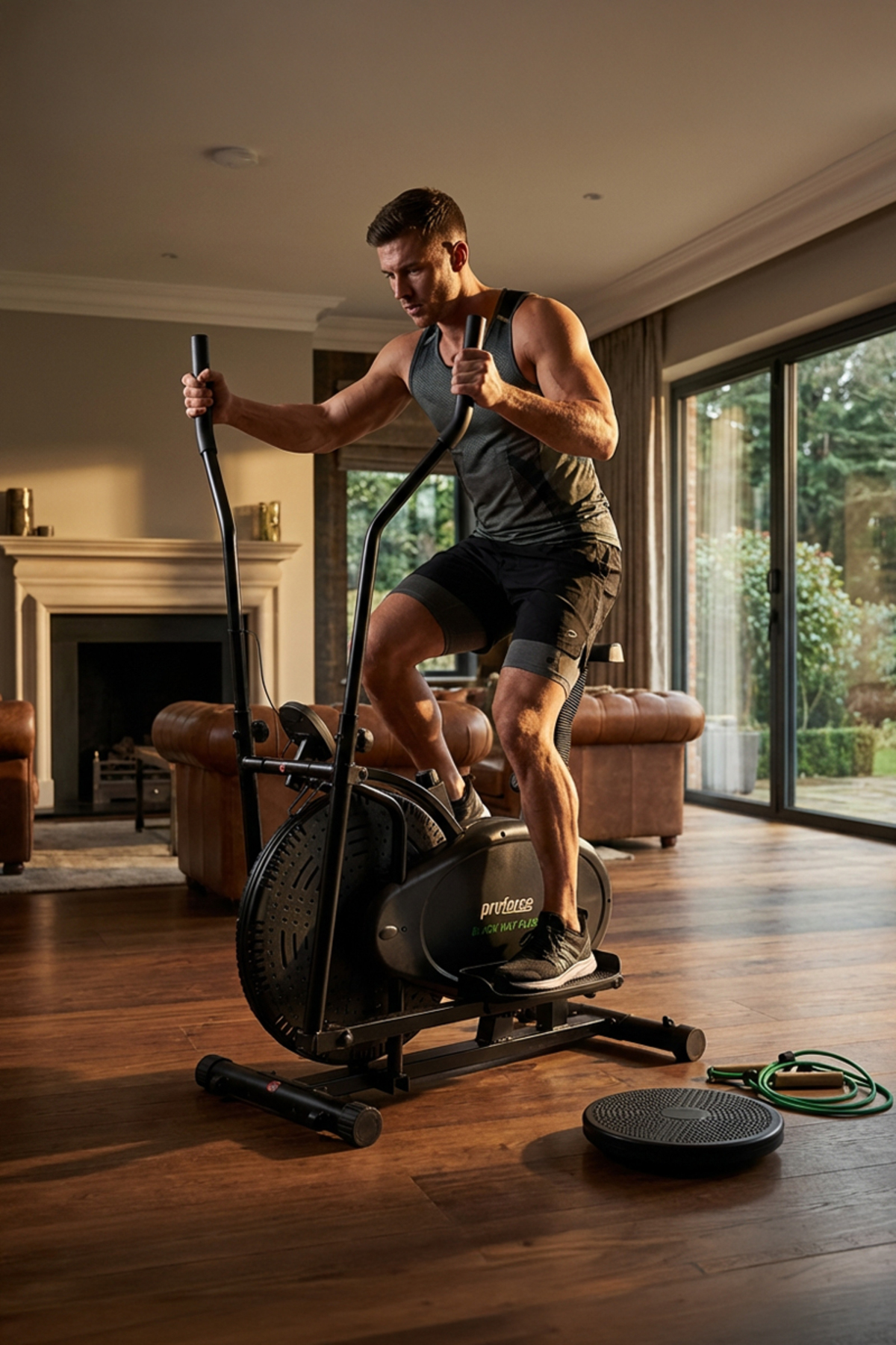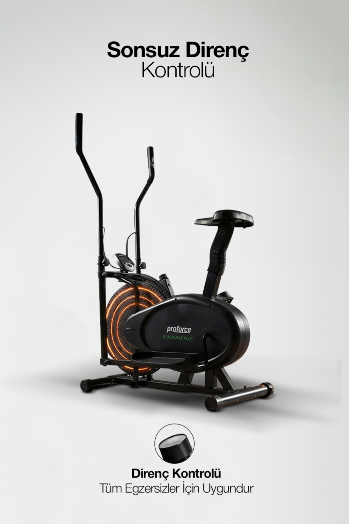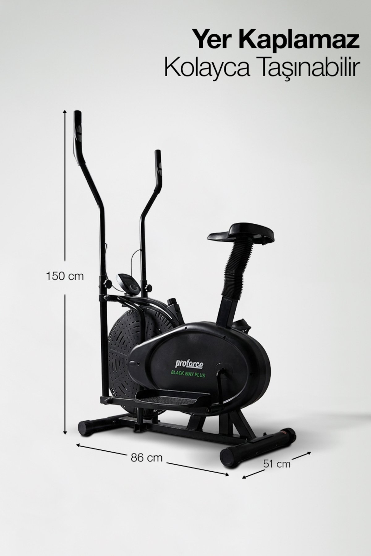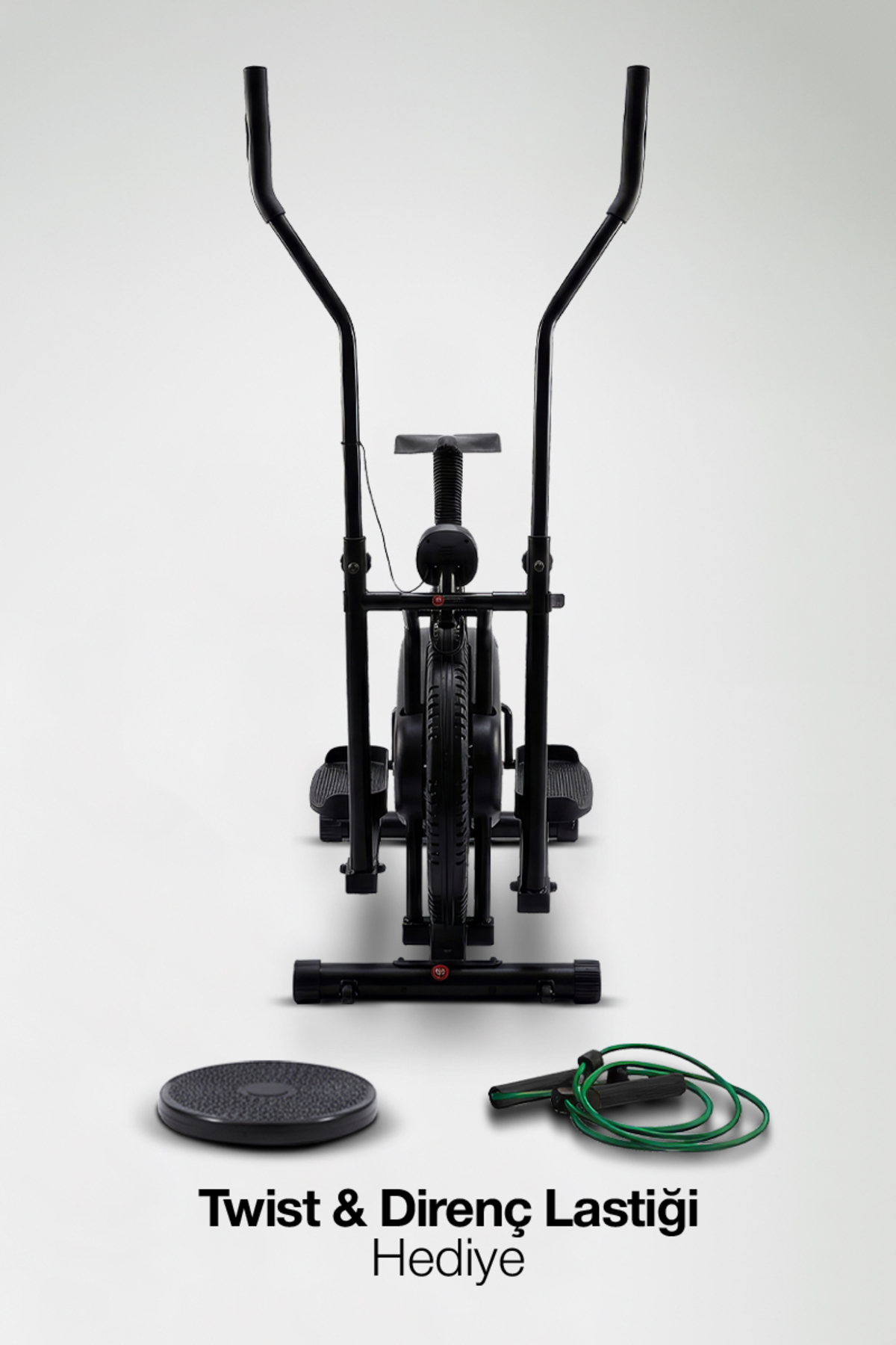 ELLIPTIC BICYCLE + LATEX TOWING TIRES + TWISTER •INDICATOR INFORMATION : SPEED,TIME,DISTANCE AND CALORIES •INDICATOR TYPE : LCD DISPLAY • INSTALLED DIMENSIONS OF THE DEVICE: 51X86X150 CM •PEDAL SYSTEM : STEP ADJUSTABLE PEDAL RESISTANCE •OTHER FEATURES : ADJUSTABLE SEAT HEIGHT, SITTING OR STANDING THANKS TO ITS WIDE PALLET-SHAPED PEDALS.