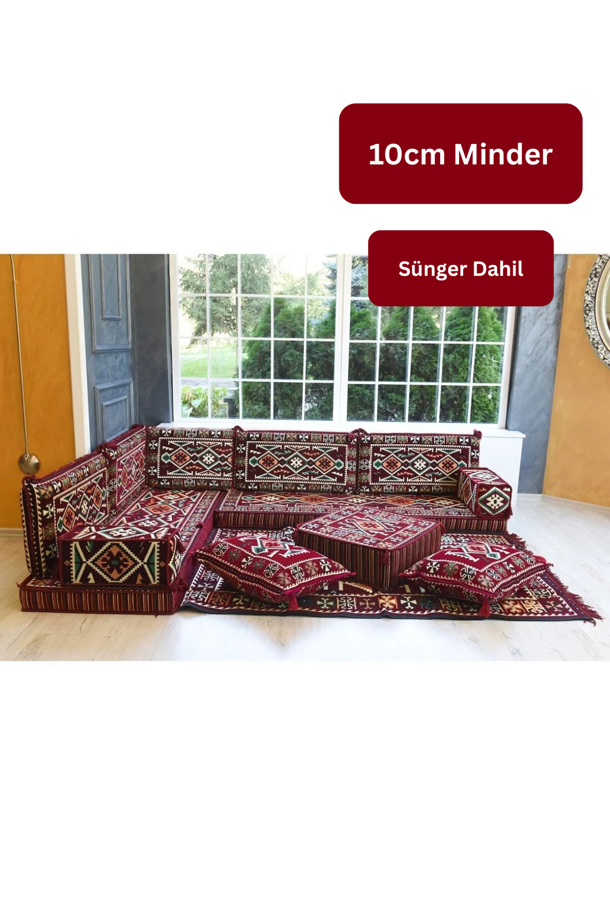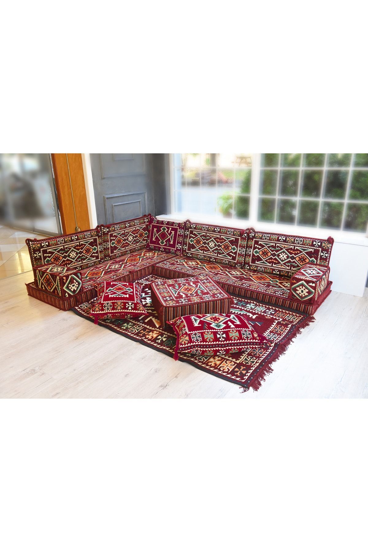 It consists of a total of 13 pieces, including 2 LONG SITTING CUSHIONS (70 x 190 x 10 cm), 4 BACK cushions (42 x 92 x 10 cm), 1 INTERMEDIATE BACK CUSHION (42 x 60 x 10 cm) , 2 ARMREST CUSHIONS (22 x 22 x 50 cm), 1 OTTOMAN SPONGE POUFFE COFFEE TABLE( 60 x 60 x 20 cm), 2 FILLED FLOOR cushions (45 x 65 cm) and 1 RUG ( 120 cm x 180 cm ). In order to prevent the sponge from collapsing and sticking on the long sitting cushion and armrest cushion, Class 22-23 density sponge was used. 1st Quality 12 cm thick block gray sponge was used for long-term use in the backrest pillow. It is also referred to as Density. Density indicates the quality of the sponge. It refers to the amount of material in one m3 in kg. THE PRODUCT IS THE SAME MODEL WITH BACK AND FRONT AND CAN BE USED AS DOUBLE-SIDED. THANKS TO ITS QUALITY WEAVING, IT DOES NOT DYE THE YARNS. THE PRODUCT IS ZIPPERED AND MAX. IT CAN BE WASHED IN THE WASHING MACHINE AT 30 DEGREES OR BY HAND. OUR CLIPS ARE HYGIENIC, DO NOT CONTAIN BACTERIA AND DO NOT PILE. Adds color to your room, hotels, cottage, vineyards, balconies, garden