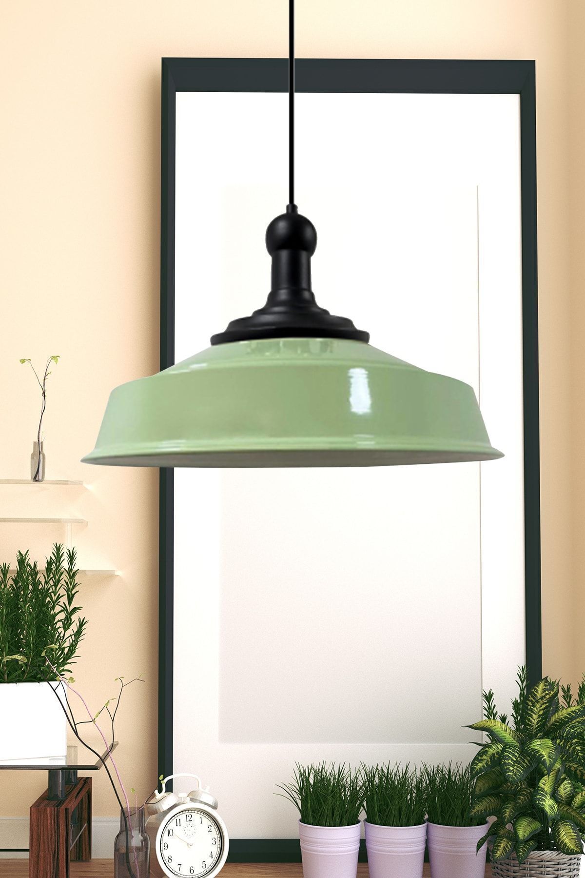Bamyum Mint Green Noble Black Long Knob Hood Retro Pendant Lamp Restaurant Living Room Lighting | ByTR