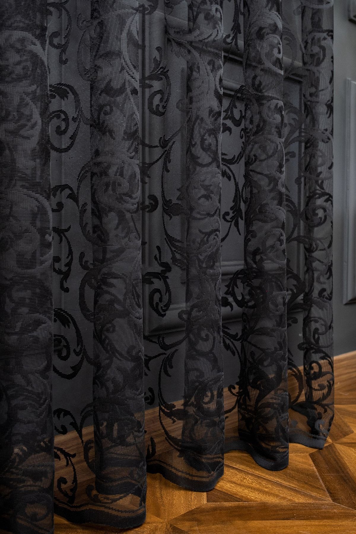 farbateks Classic Shawl Pattern Black Color Pattern Design 2 Layers Pleated Tulle Curtain | ByTR