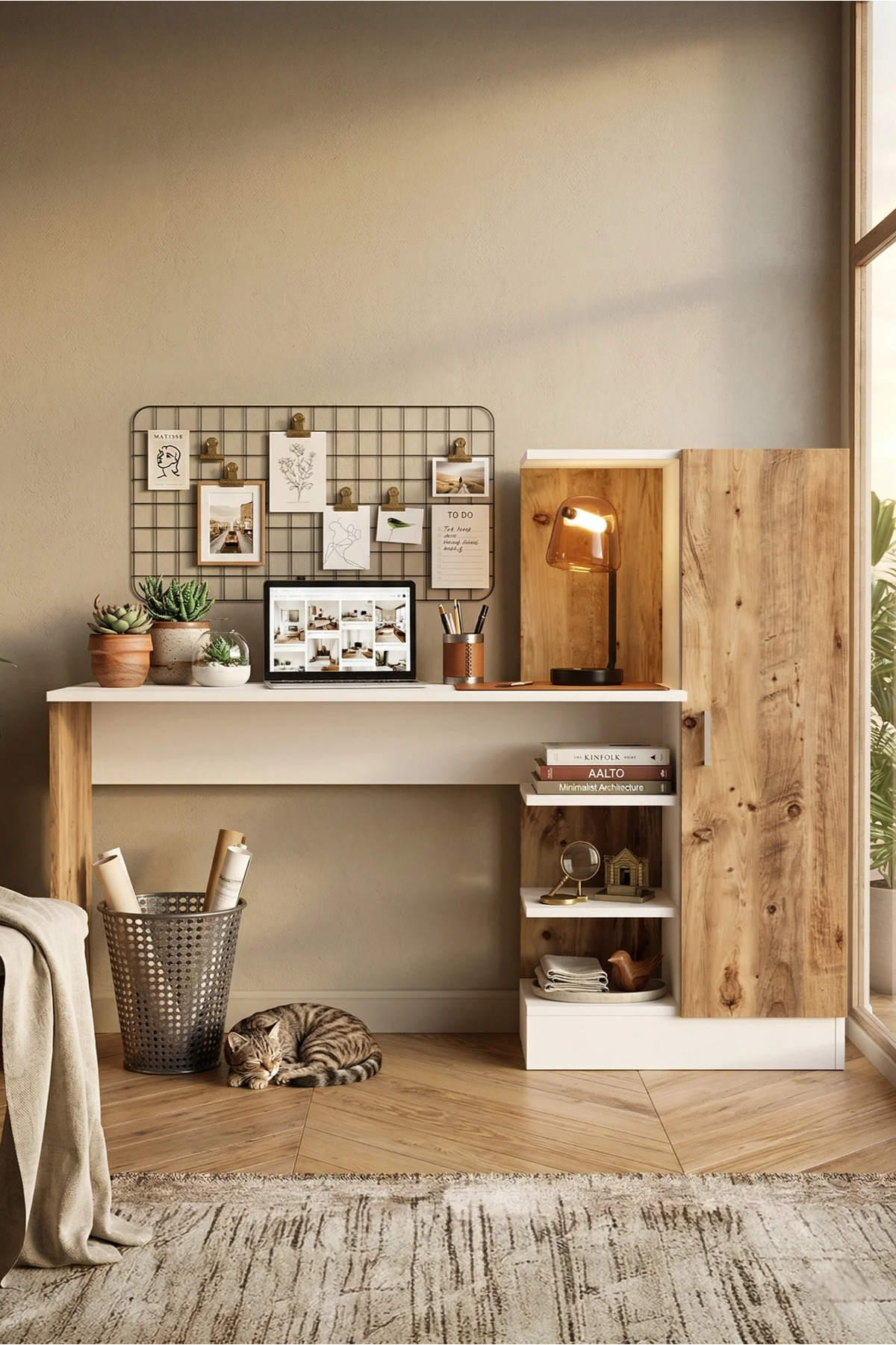Yurudesign Laura Work Table with Bookcase Atlantic Pine White CT2-AW Color : Atlantic Pine-White