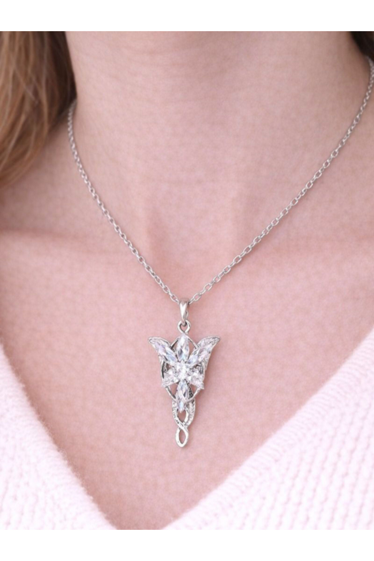 Product Name : Silver Evenstar-Arwen Necklace Item Size : 5 x 3 cm Weight: 21 Gr Metal: Silver Plated Chain length: 50 cm Story : Valentine's gift necklace, Wife's special necklace, Mother's gift necklace, Birthday necklace, Best selling necklace, Women's necklace models, Birthday gift woman necklace, Anniversary gift necklace, Valentine's day gift, Women's day necklace gift, Special day necklaces, Most stylish gift necklace, Personalized necklace woman, Elegant necklace gift, Valentine's gift, Special day gift, Love and commitment, Anniversary gift, Birthday surprise, Mother's day special gift, Meaningful gift for the New Year, Women's day gift, Elegant and stylish necklaces, Spiritual gifts, Best gift ideas, Classic and modern design, Precious and stylish gift selection, Gifts for all ages, Gift Suggestions for women, Silver Plated Evening Evening Star () - Arwen Necklace This charming necklace is the design of the Evening Star, one of the iconic one of the universe.