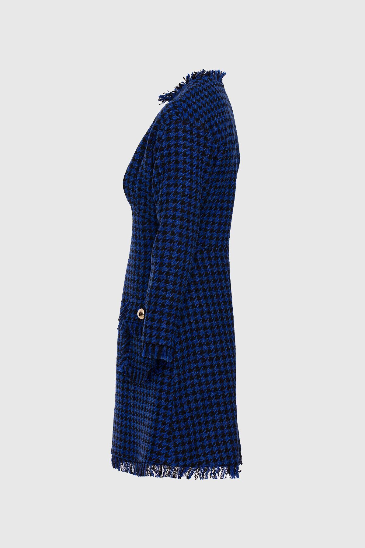 Navy blue tweed dress, which offers a timeless elegance with its classic houndstooth pattern, can be easily preferred in all seasons