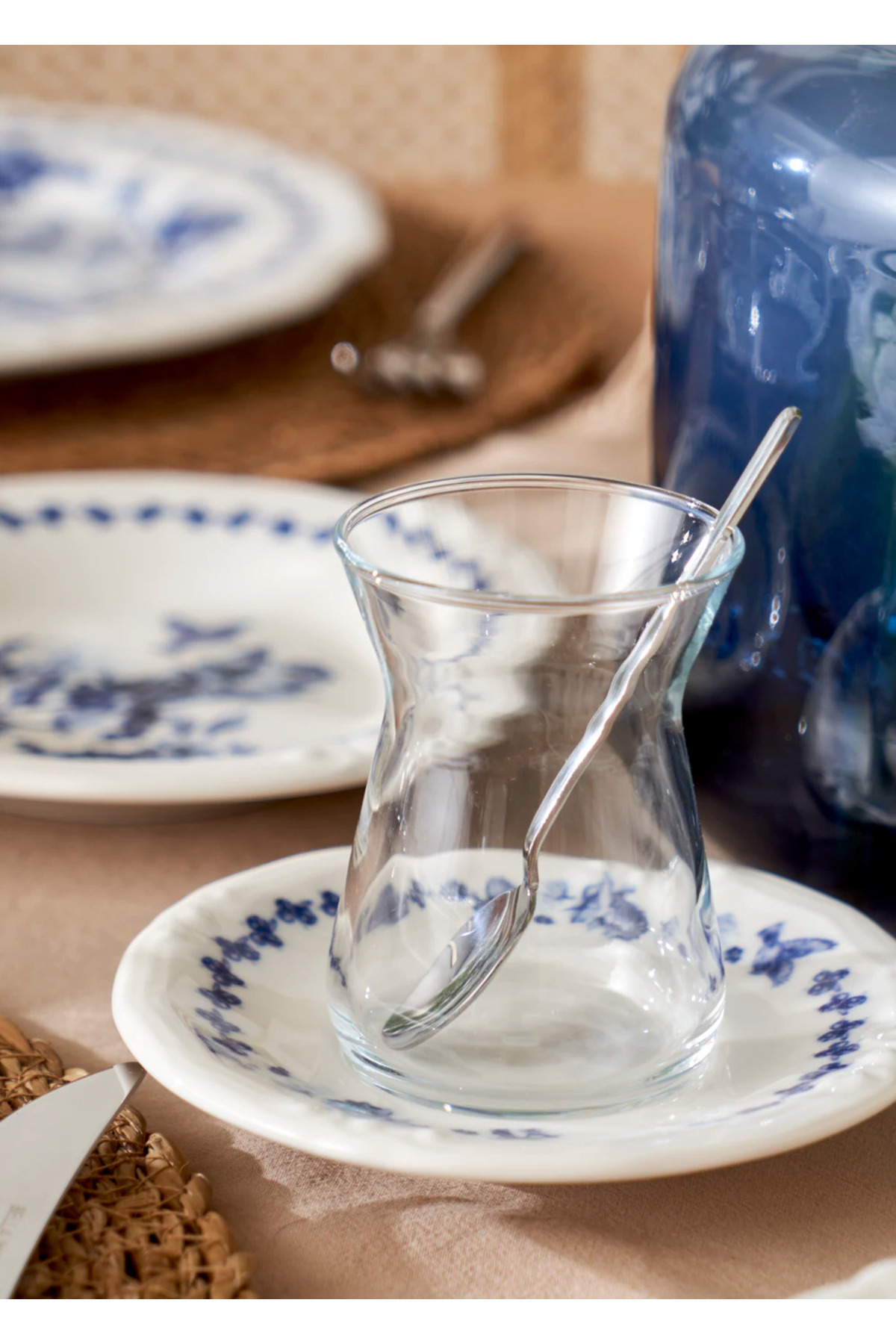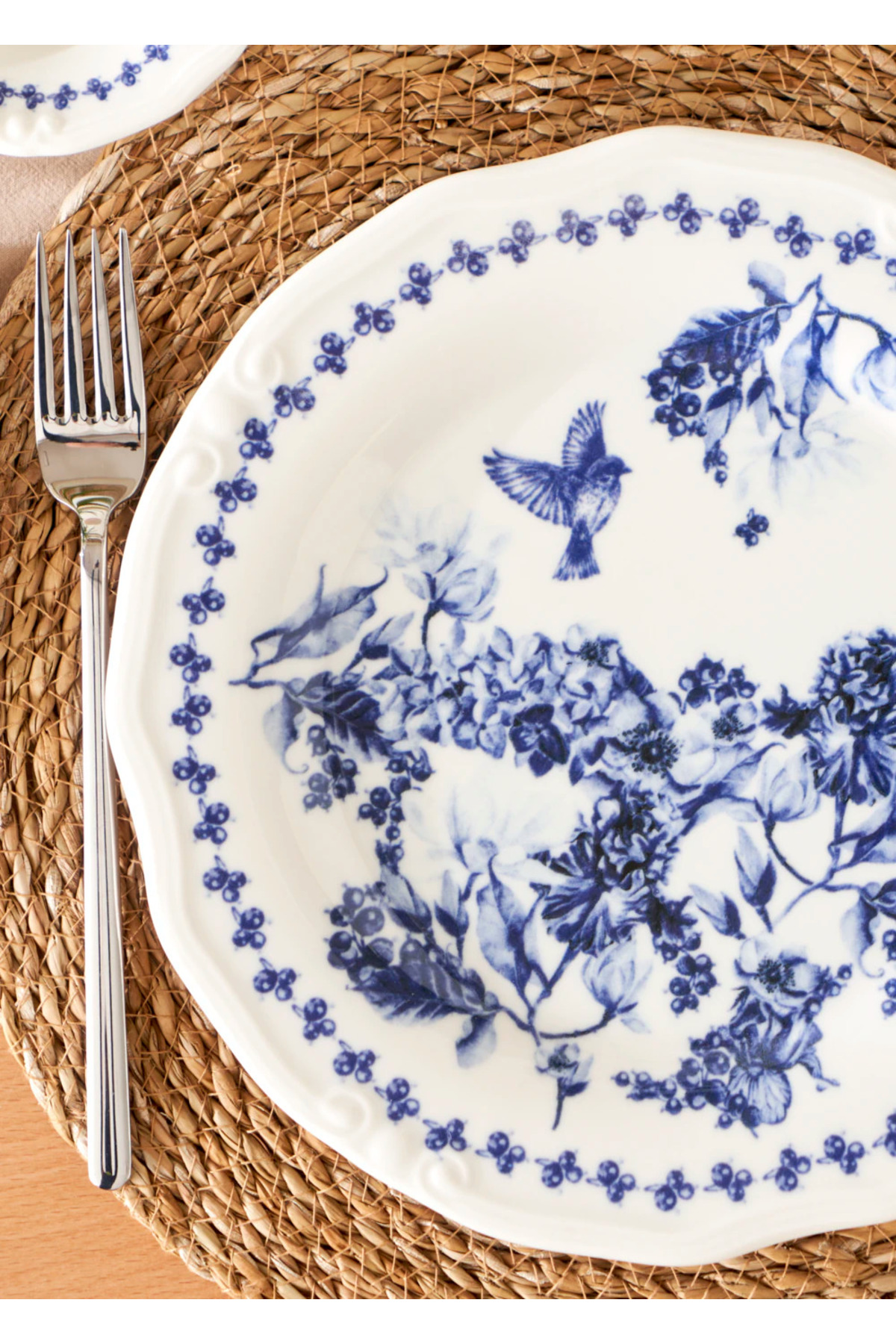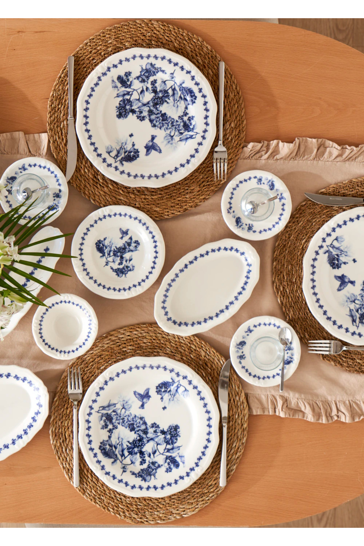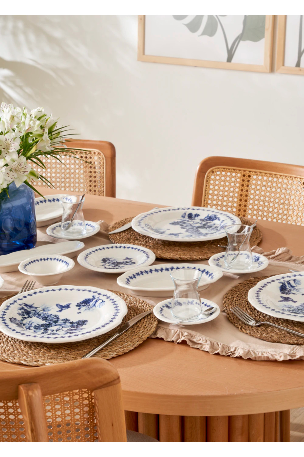 Vanessa 26-Piece Porcelain Breakfast Set adds an elegant and fresh touch to the tables with its modern floral pattern in blue tones.