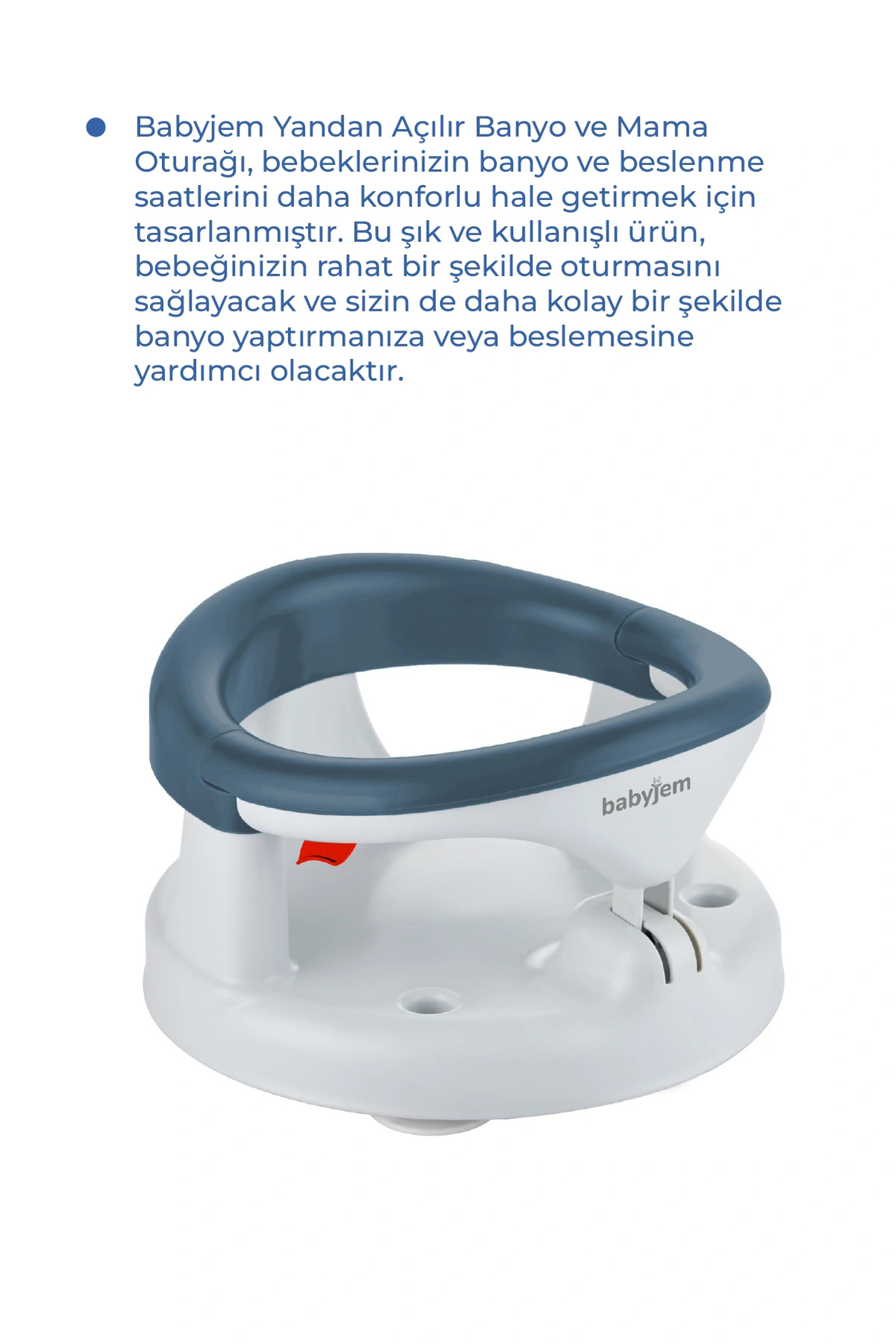 Babyjem Side Opening Bath & Feeding Seat provides extra support to babies during the bath and makes them feel safe.