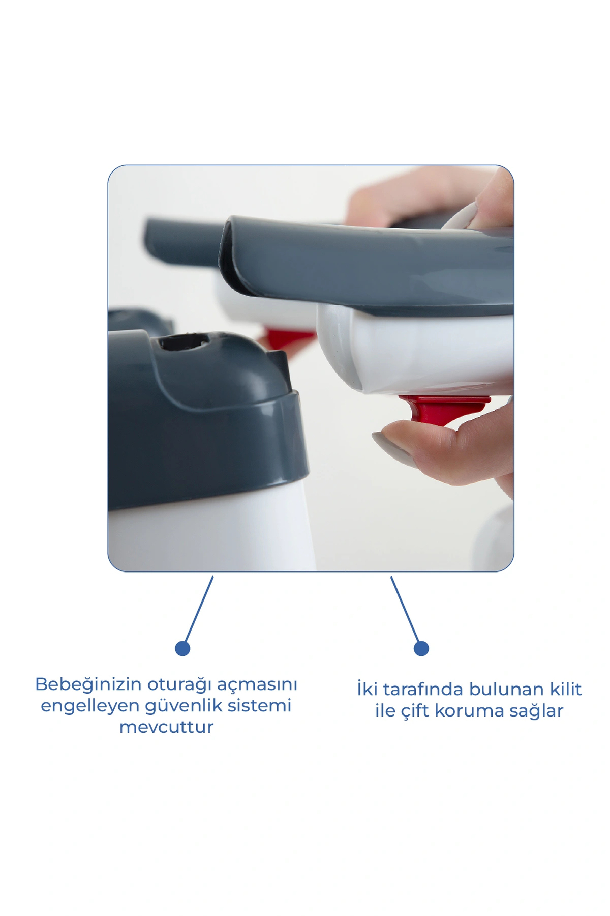 There is a safety system that prevents babies from opening the seat.