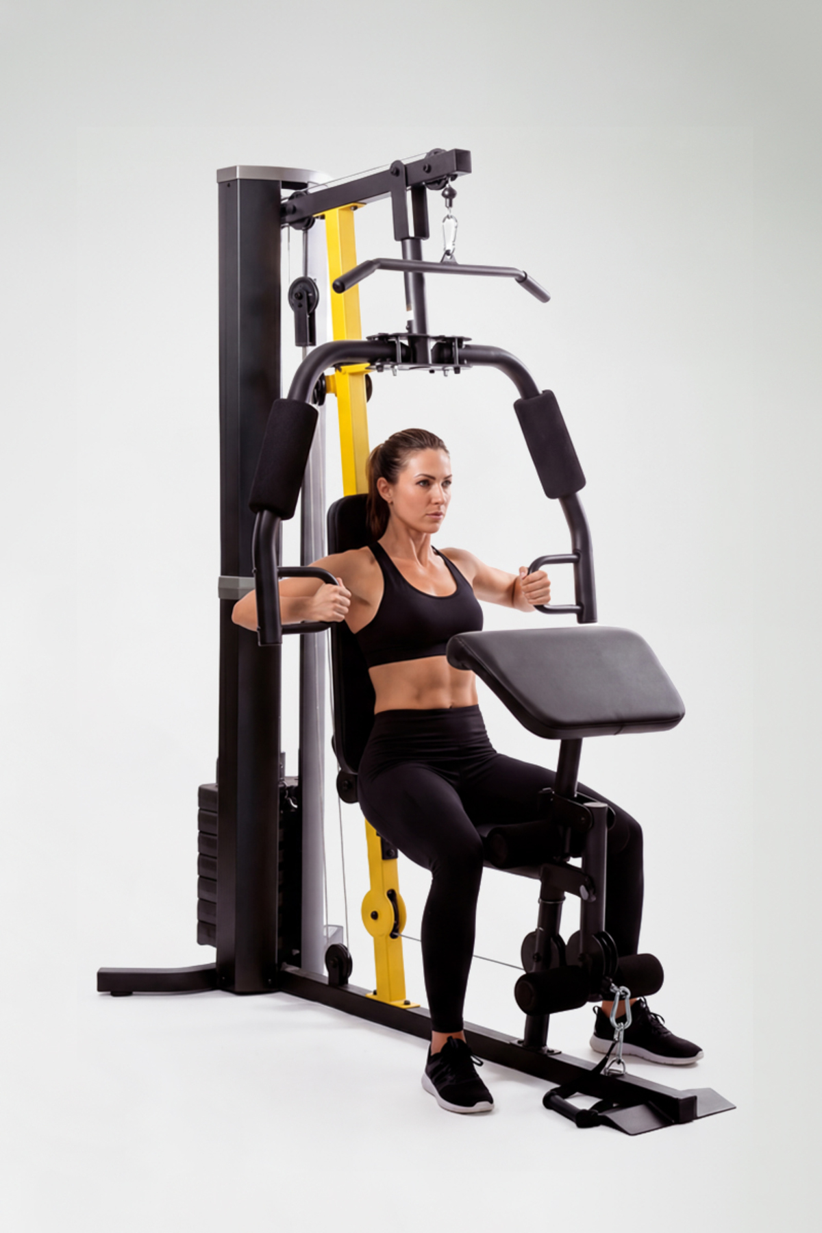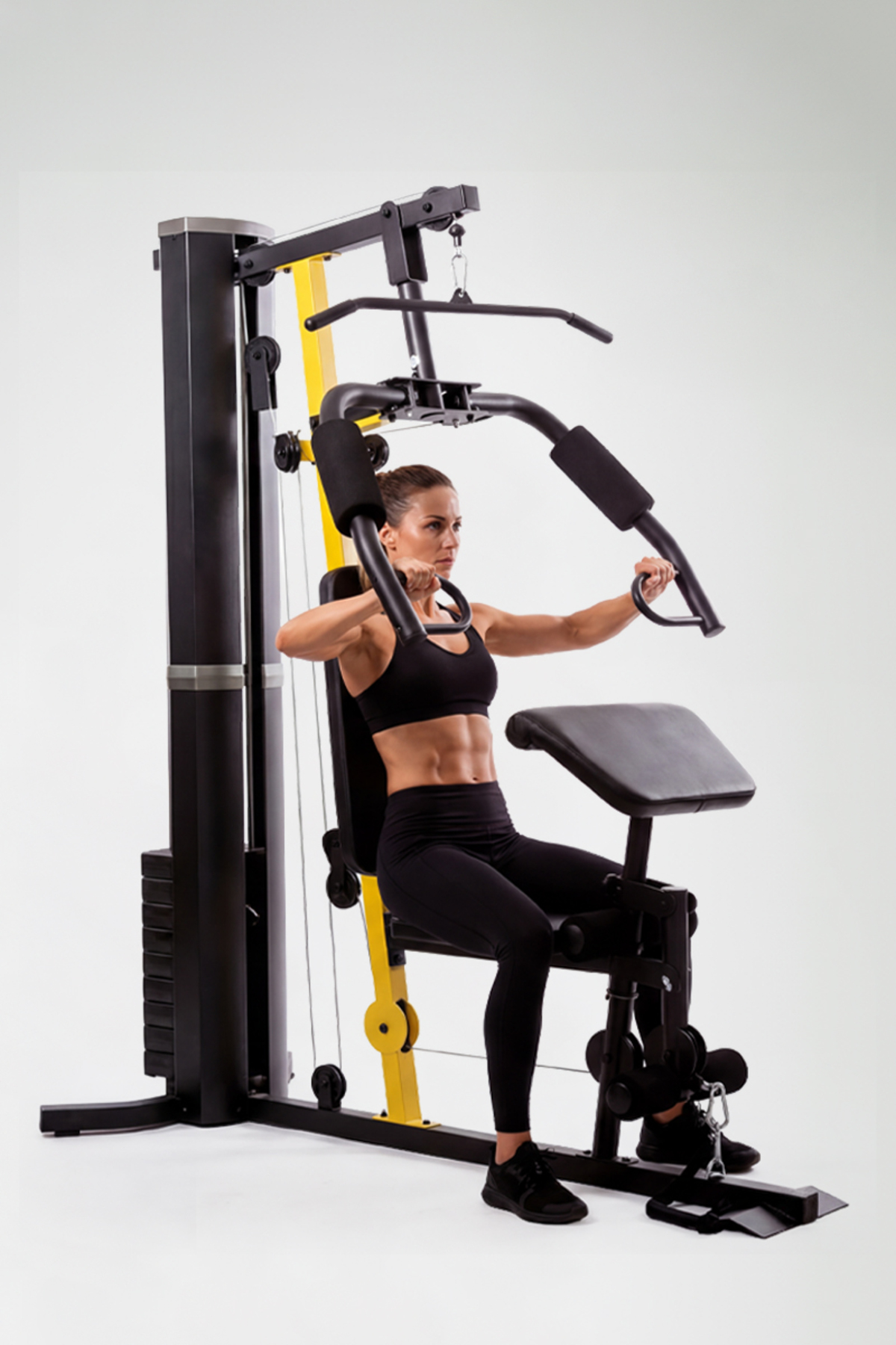 Proforce weight station works your back, chest, abdomen and shoulder muscles with its rope pulling feature from above, while the movable arm station offers an intense exercise to your chest muscles and back muscles.