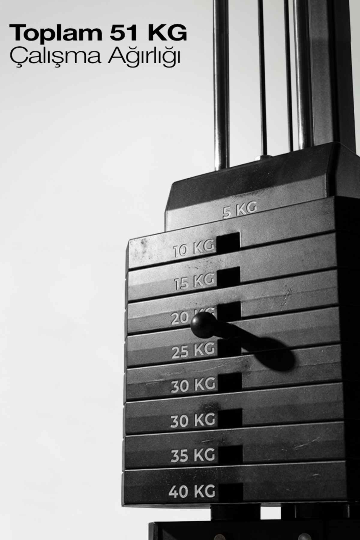 The lowest weight can be increased at 5 kg intervals, with 5 kg, and the highest weight to be reached is 51 kg.