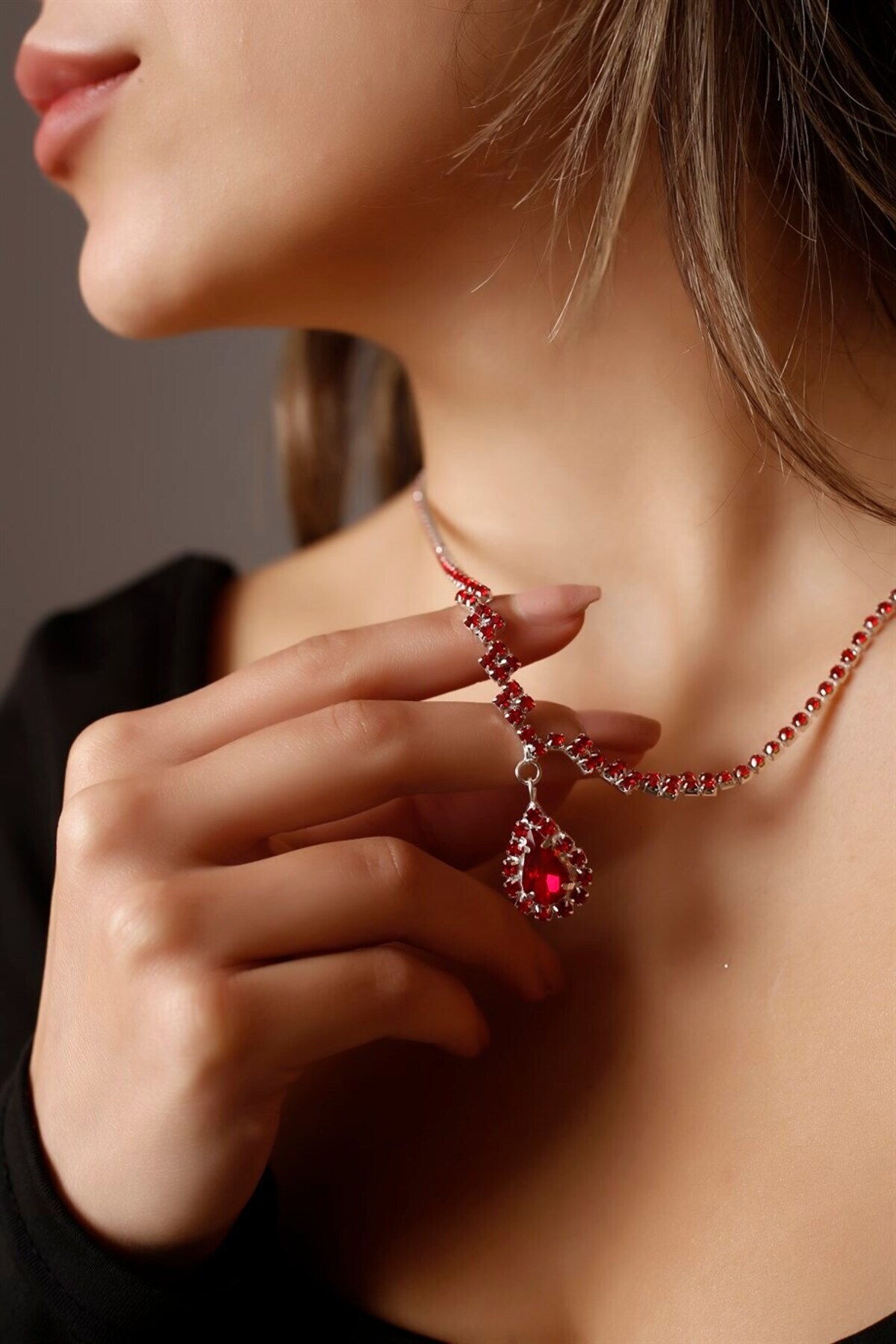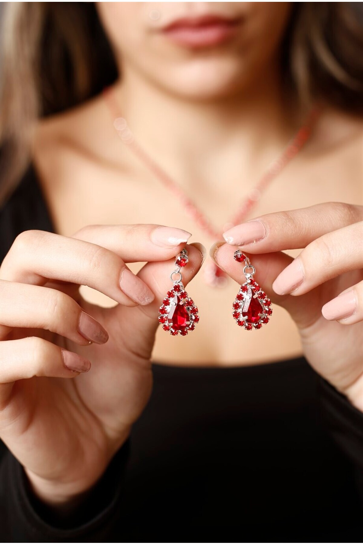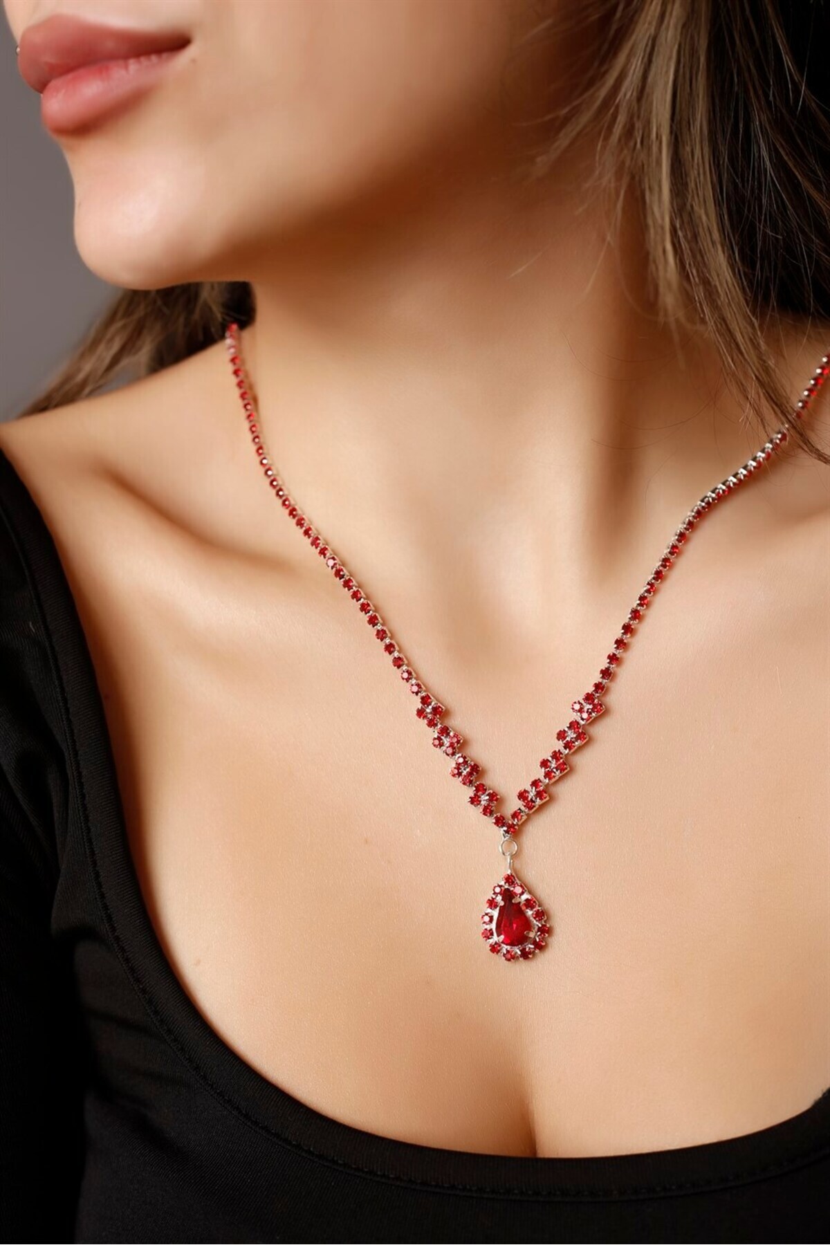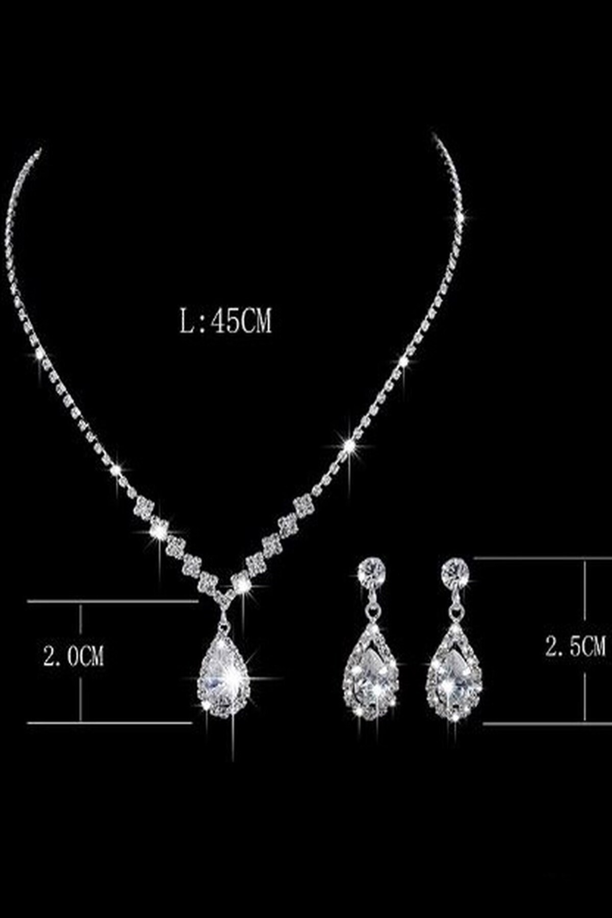 Both necklace and earring set stand out with their elegant design and match any outfit