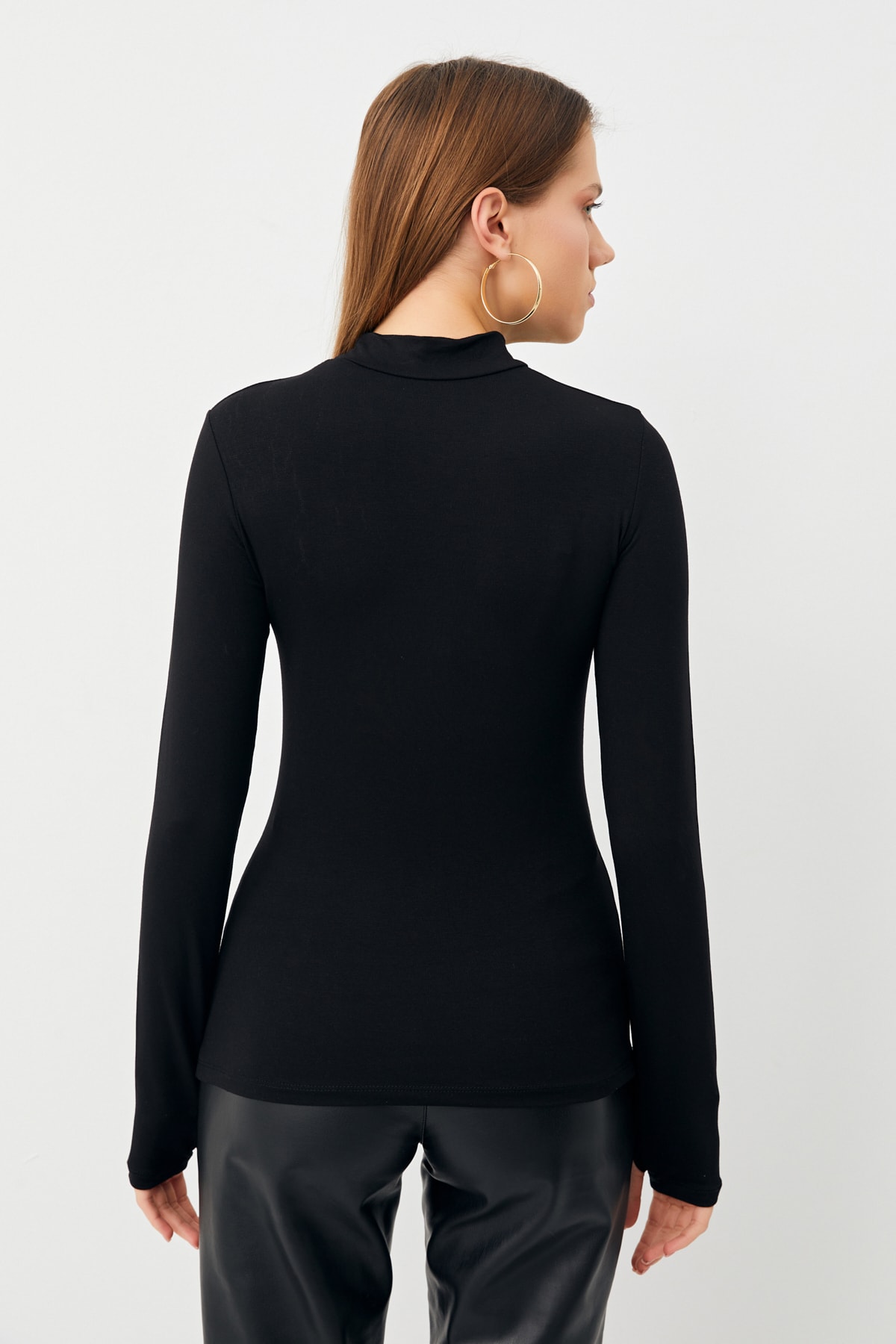 It offers a modern and stylish look with its semi-turtleneck design