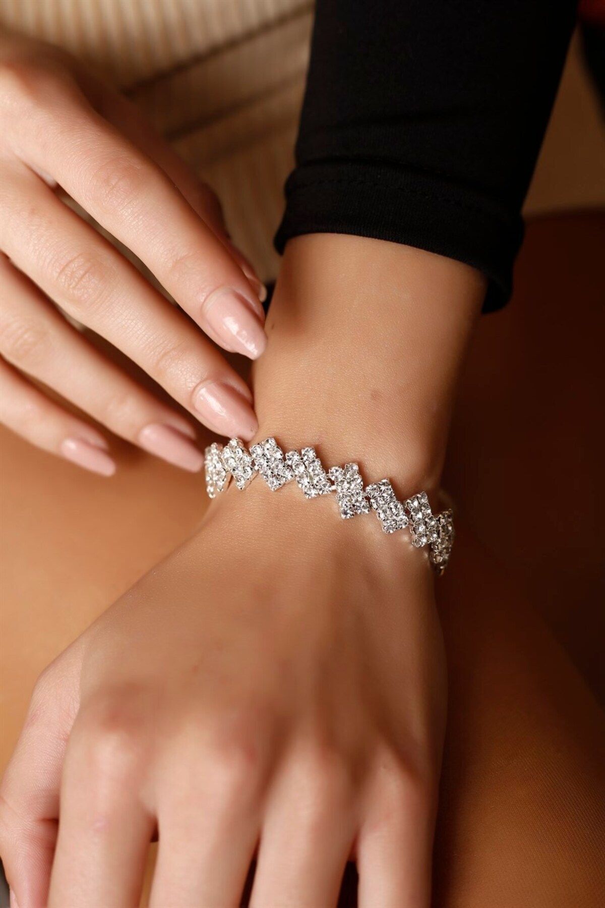While adding a sophisticated touch with its crystal stone material, it offers a timeless elegance with its silver color.